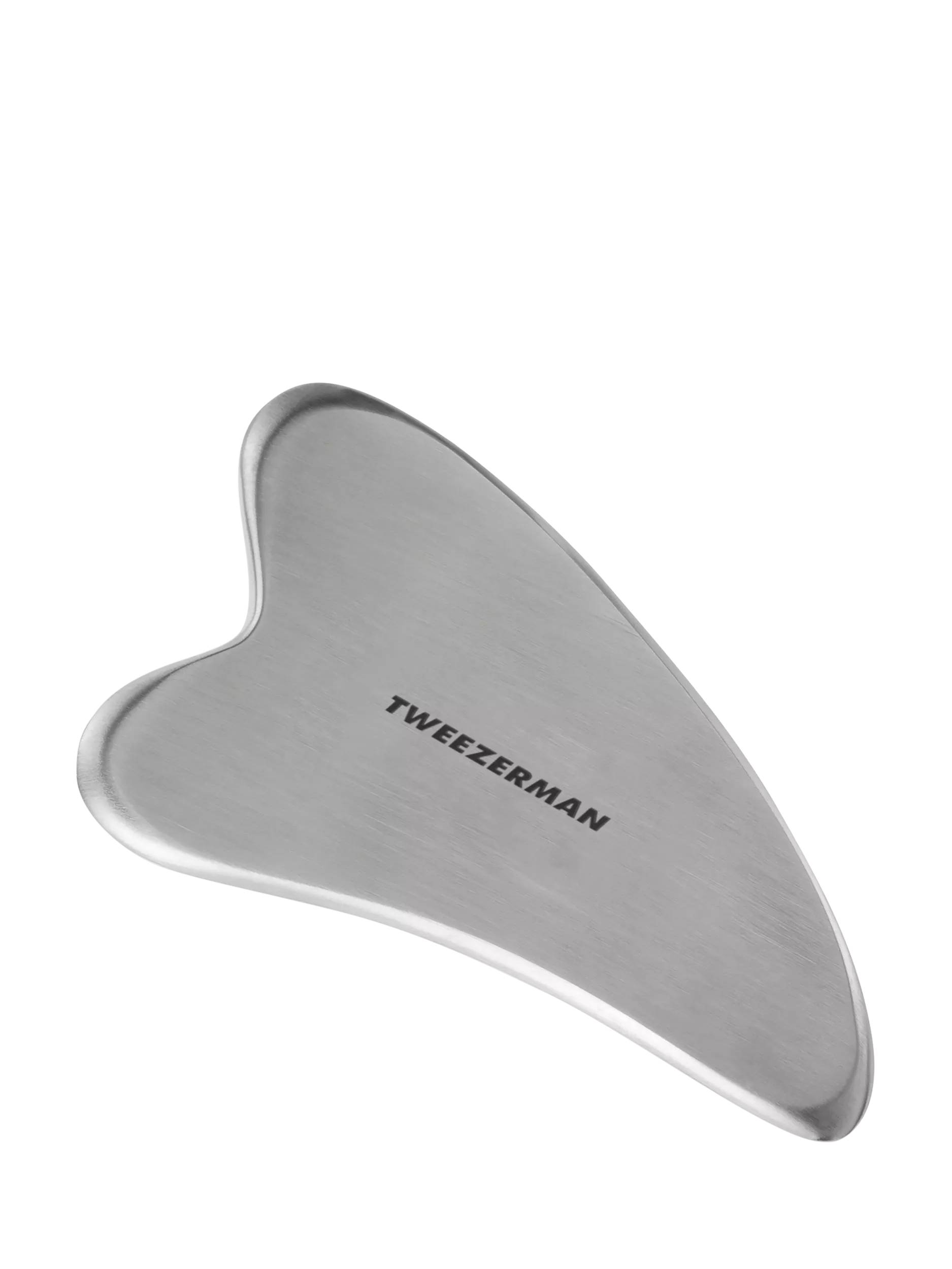 Tweezerman's stainless steel gua sha contours, lifts and depuffs the facial area for the ultimate relaxation and soothing skin care routine.