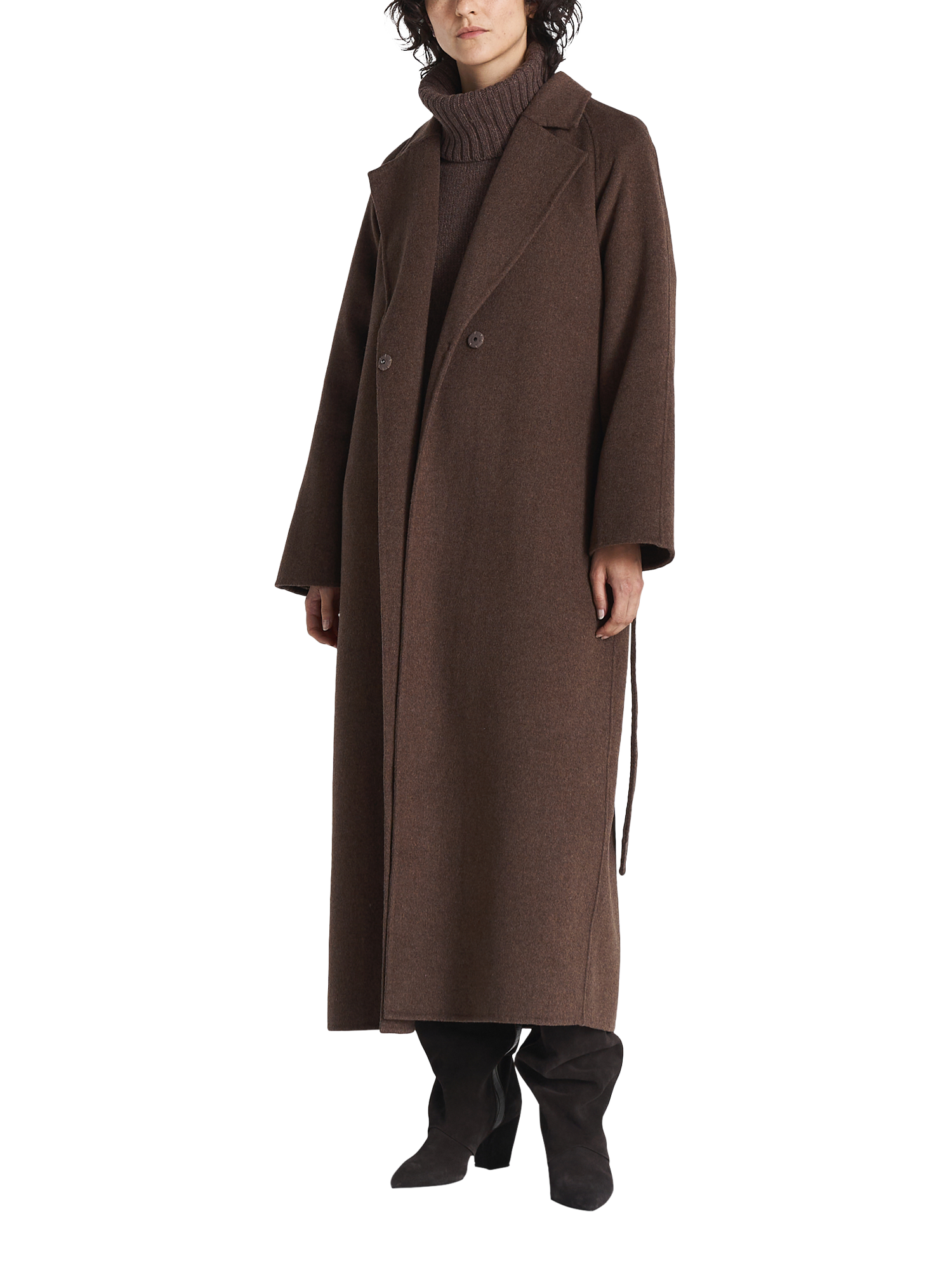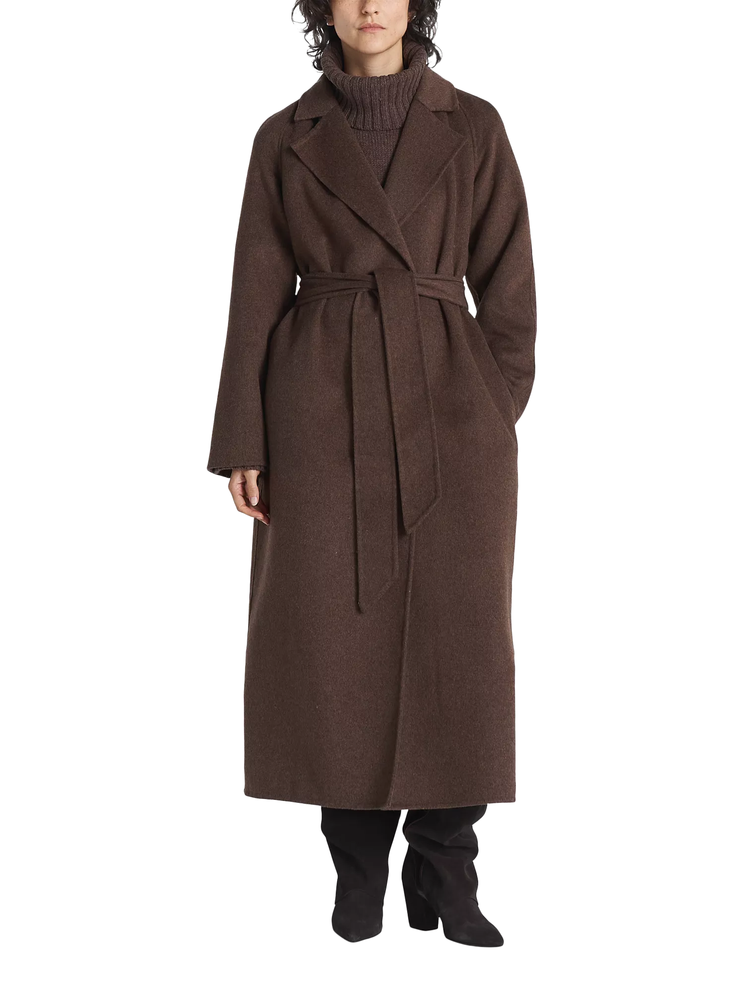 Introducing the Lorelei Coat, the epitome of sophistication. Crafted from a luxurious double-faced wool blend, it features a belted waist, side pockets and half-lined.