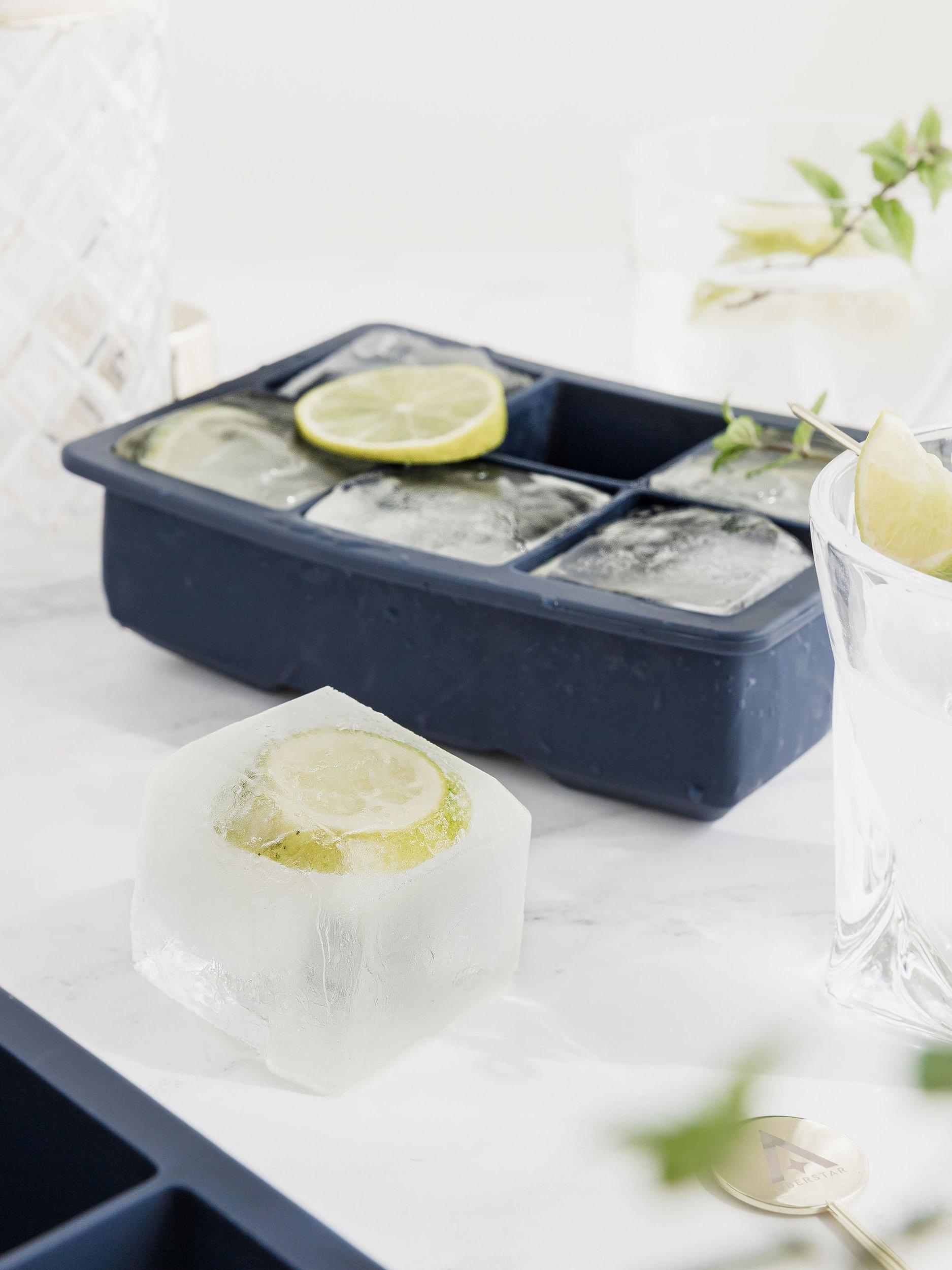 Each of the six ice cubes is 5cm cubed, a larger size that lasts longer and therefore dilutes your drink less. Plus, they look great in your cocktails. Try adding some fresh fruit to the tray before freezing. The tray is dishwasher-safe for easy and hygienic cleaning.
