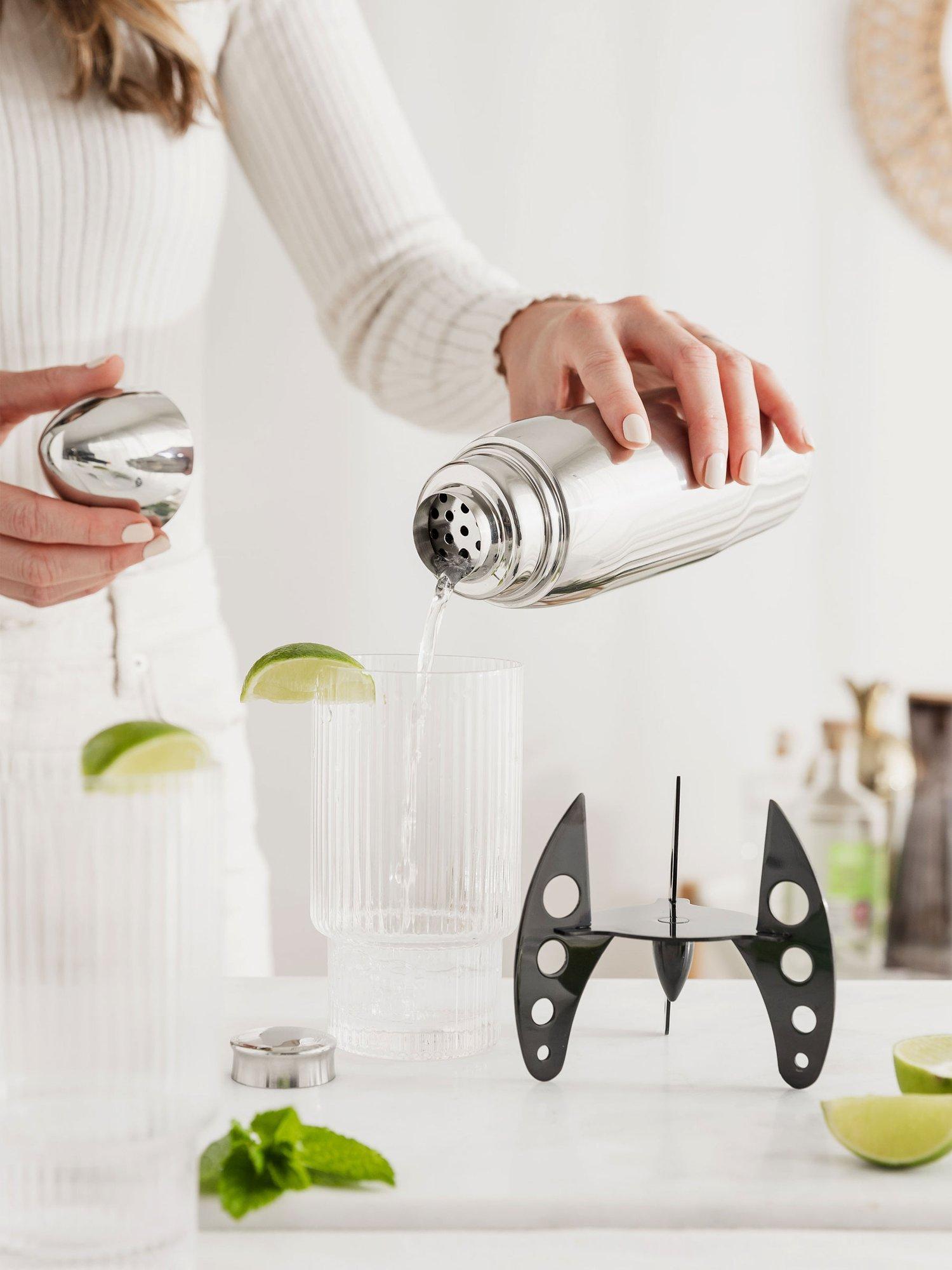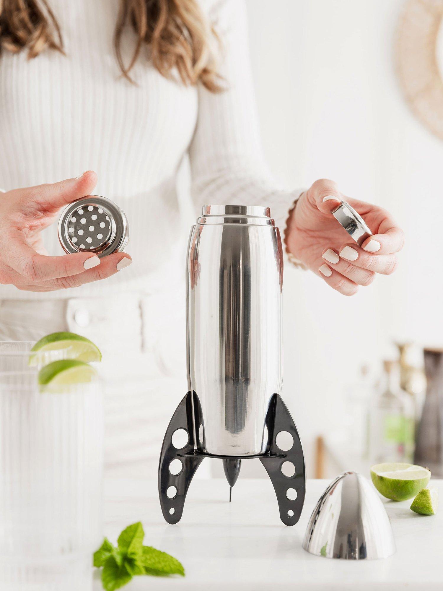 The rocket's fins double as a sturdy stand, while the detachable body makes shaking effortless. A built-in strainer guarantees a smooth pour every time, and the nose cone removes easily for a seamless serving experience.