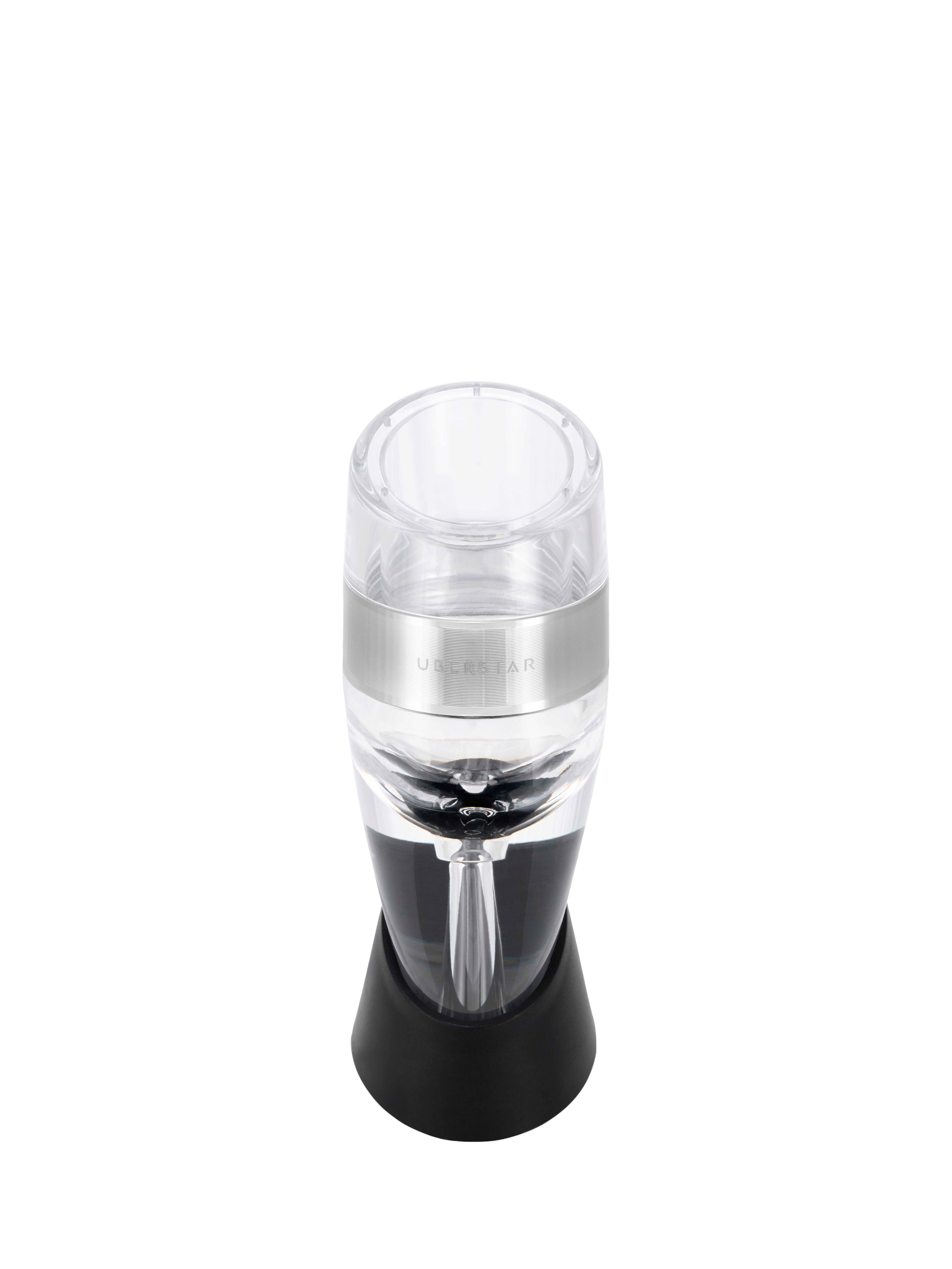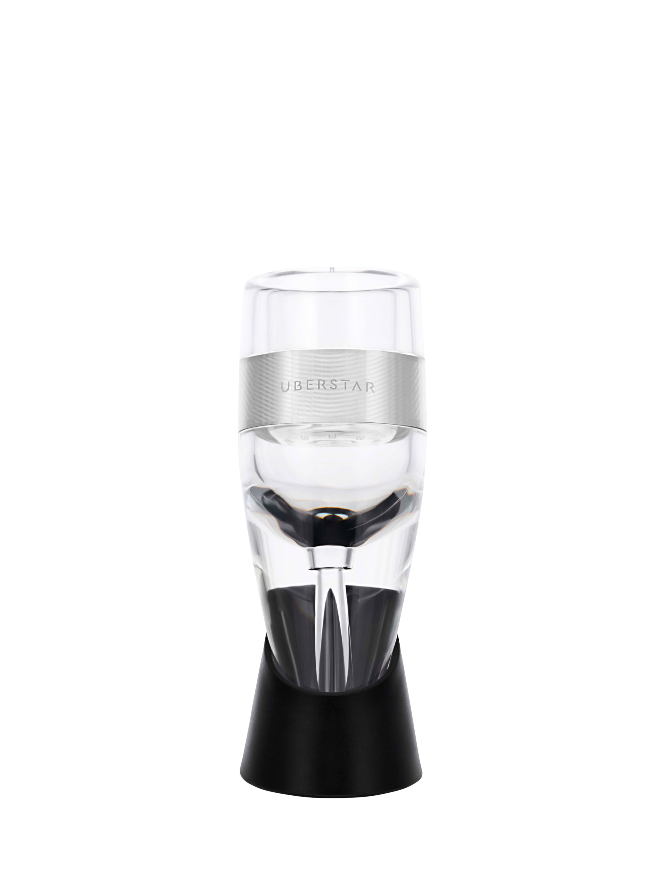 Instant aeration, no batteries required. Enjoy delicious red wine in a breeze. Easy to use, this aerator enhances the flavours and aromas of wine by increasing its exposure to oxygen. It comes with a tabletop stand. Aerates wine in seconds, although a decanter can take up to three hours.