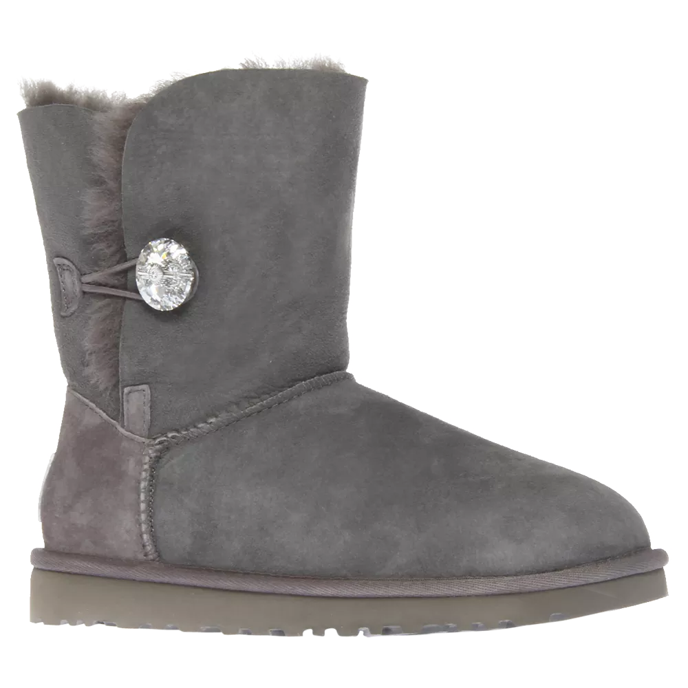 The classic Bailey Button boot from UGG has been updated with a large Swarovski crystal button. It's a fun and glamorous addition to the famously soft and cosy Twinface sheepskin for which UGG is renowned. The furry lining and moulded EVA outsole make them ideal for lounging about the house or strolling around town.