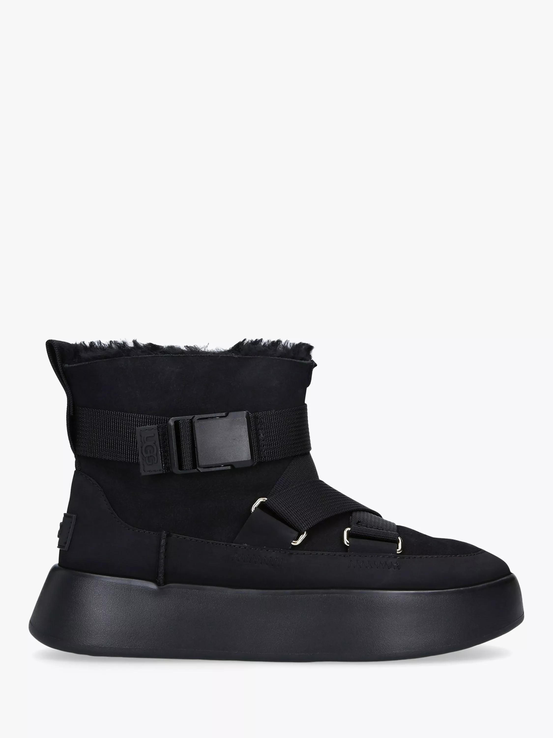 Combining trainers and boots to create a style that's youthful and versatile, the Classic Boom buckle strap boot from UGG is created with a leather upper with branding at the heel and buckled strap. Resting on a comfort boosting sole, it's finished with a soft sheepskin lining for ultimate cosiness.
