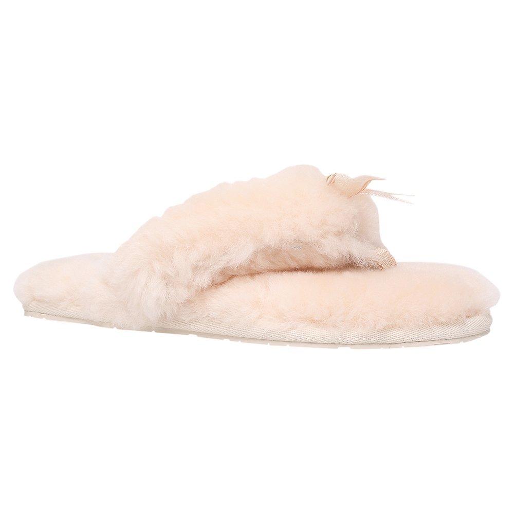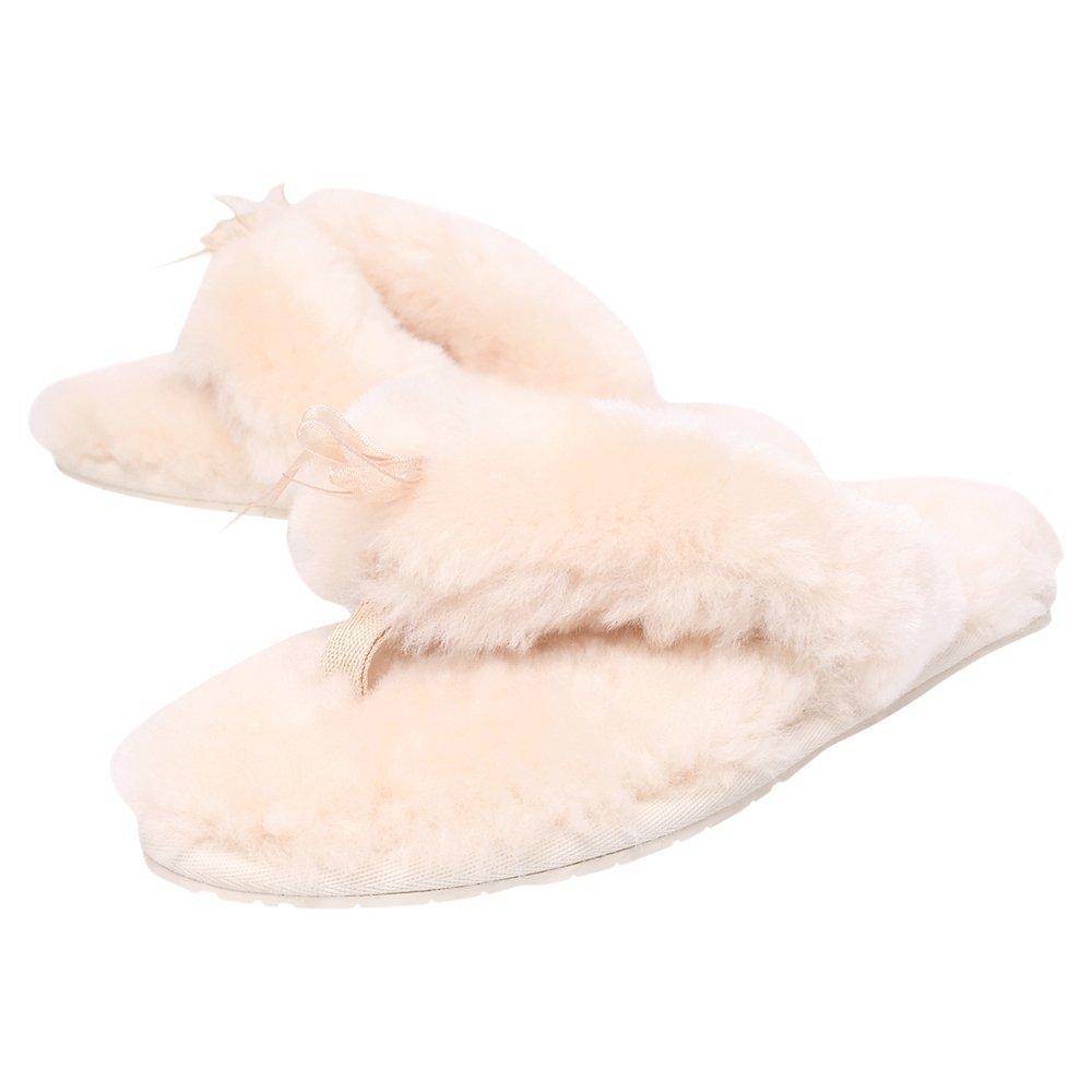 This fluffy slipper from UGG exudes comfort with luxurious sheepskin and a soft textile toe-post. The flexible molded rubber sole lends lightweight comfort to a combination slipper/flip-flop sandal fit for around the house or out and about.