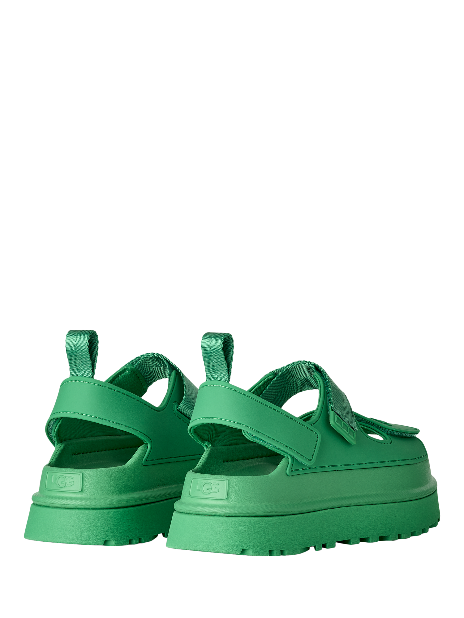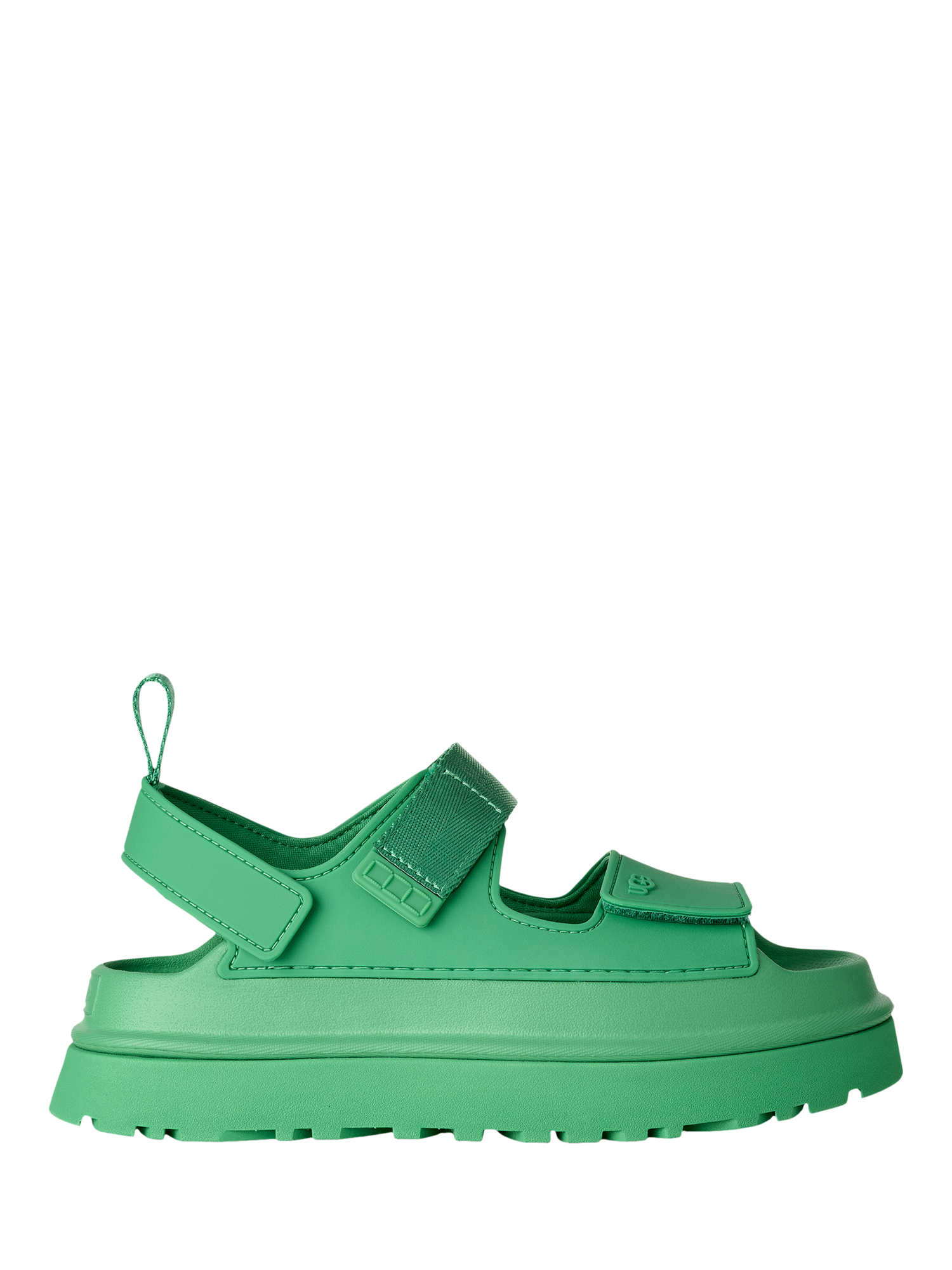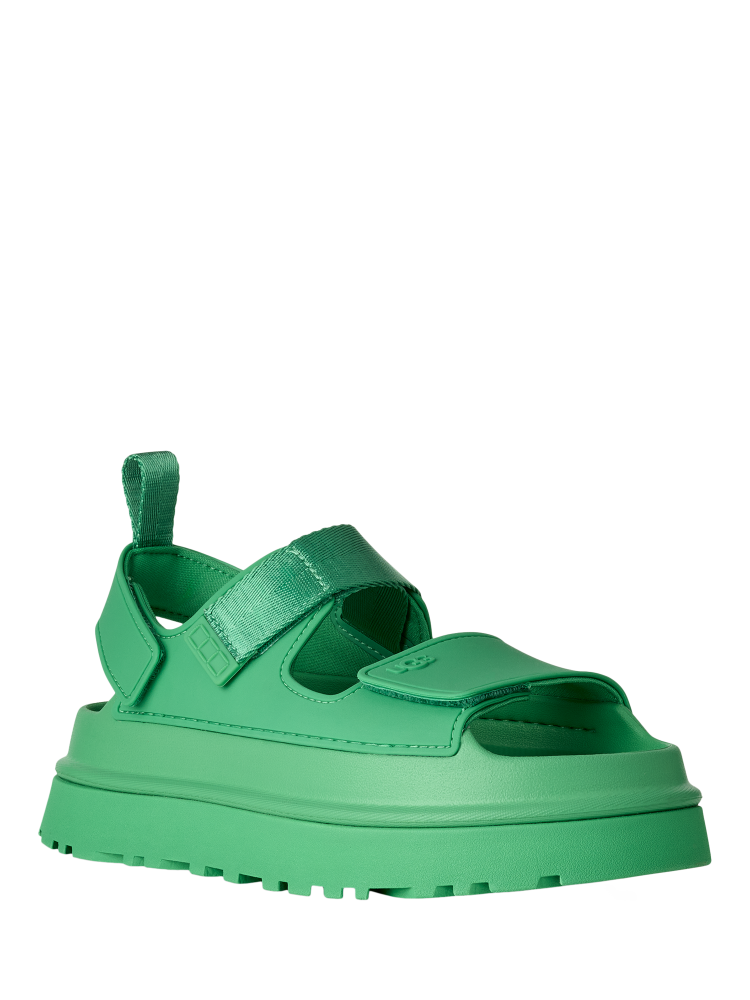 Bask in the GoldenGlow, UGG's It-Girl Sandal. Slip right in and go with this super lightweight summer star. GoldenGlow is a fully adjustable sandal and is made from springy and supportive sugarcane EVA that's ready to wear through rain and shine. Stacked on a platform with a lug sole and complete with a grippy footbed, this pair looks as dynamic as it'll make you feel.