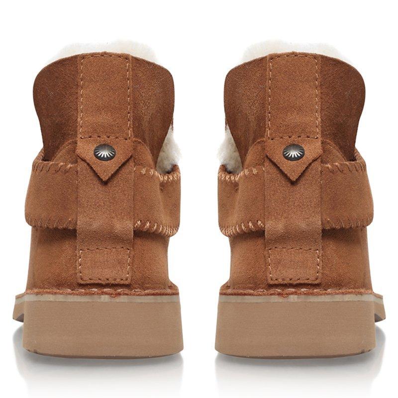 With a snug lining, the boots will keep your feet warm anytime. They feature a classic round toe, a wide strap detailing that wraps around the ankle and features decorative stitching. The boots offers a slip-on fit for east and hassle-free wear.