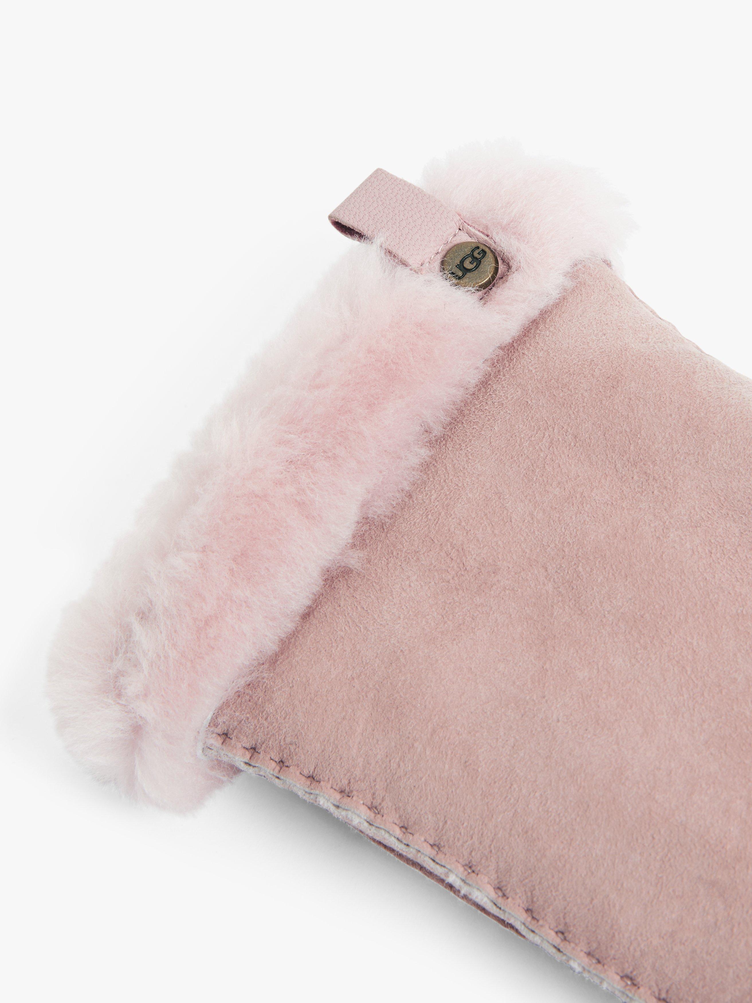 When temperatures drop, keep your hand warm with the Shorty leather trim gloves from UGG. Made from soft and cosy sheepskin, these gloves are designed with visible stitching accents and branded UGG logo rivets. The perfect cold-weather companion, pair with puffer coats and faux fur hats and scarves.