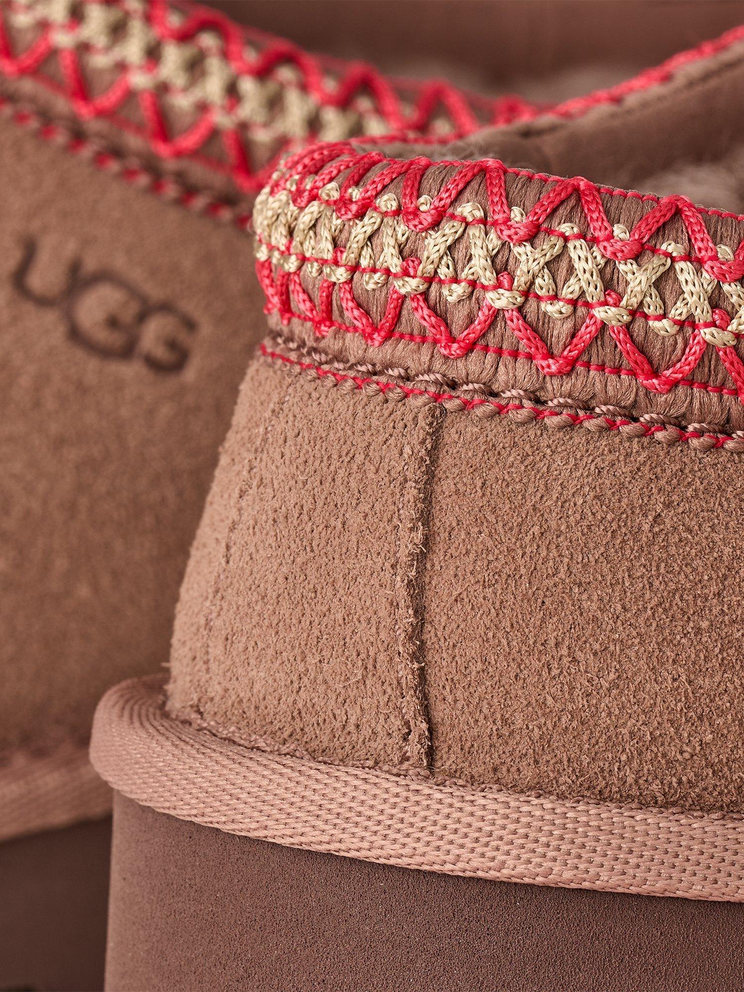 - * Suede upper* UGGbraid made with 70% recycled polyester, 30% rayon* 17mm sheepskin vamp lining* 17mm sheepskin insole* Sugarcane EVA footbed* Textile binding made from 100% recycled polyester fibers* The UGG® Logo, heat-embossed, Woven label with The UGG® Logo on insole* RN 88276* This product contains real fur from sheep or lamb. Fur may be sourced from Australia, Ireland, the United Kingdom, or the United States. It has been artificially dyed and treated.