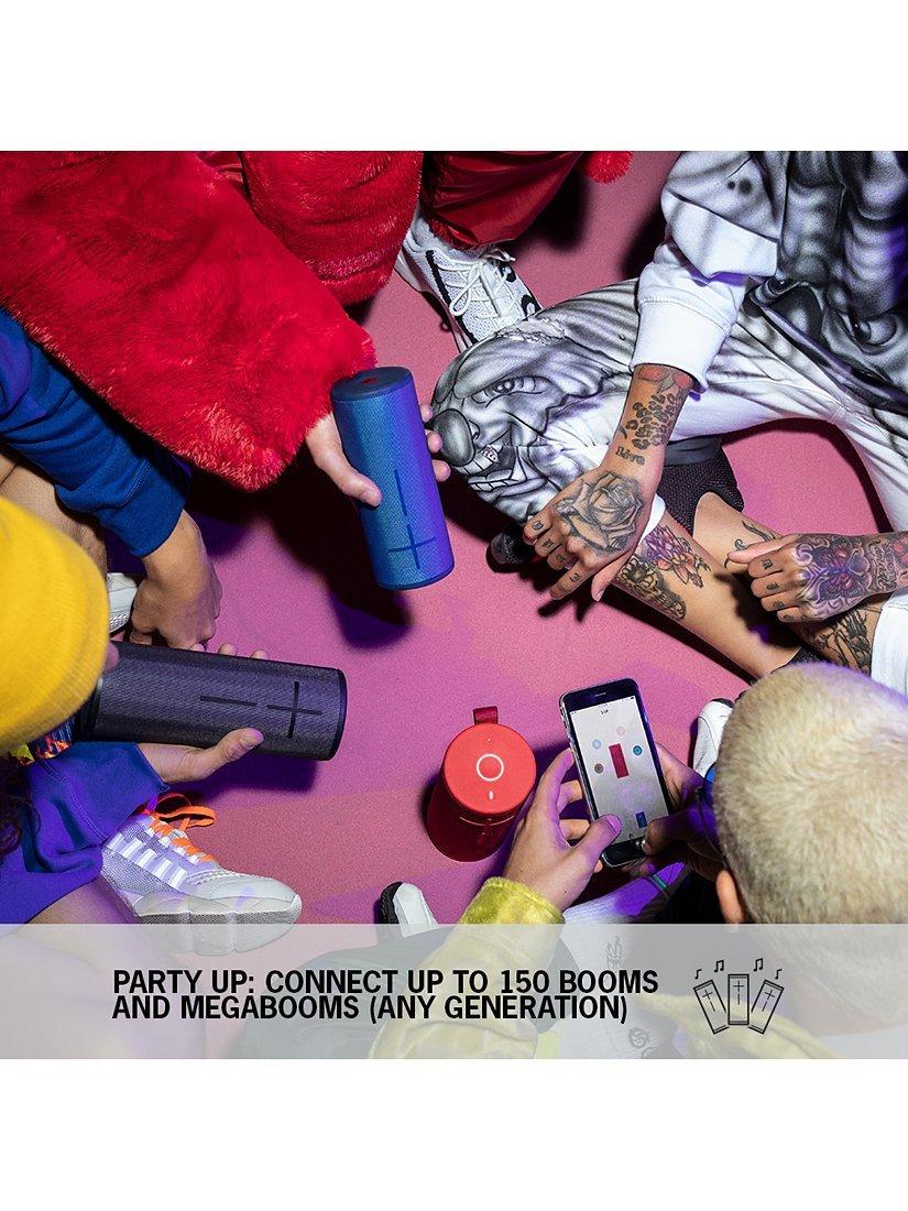 - Party-up enables you to wirelessly connect up to 150 BOOM and MEGABOOM speakers for an even bigger sound. It's compatible with all BOOM and MEGABOOM models