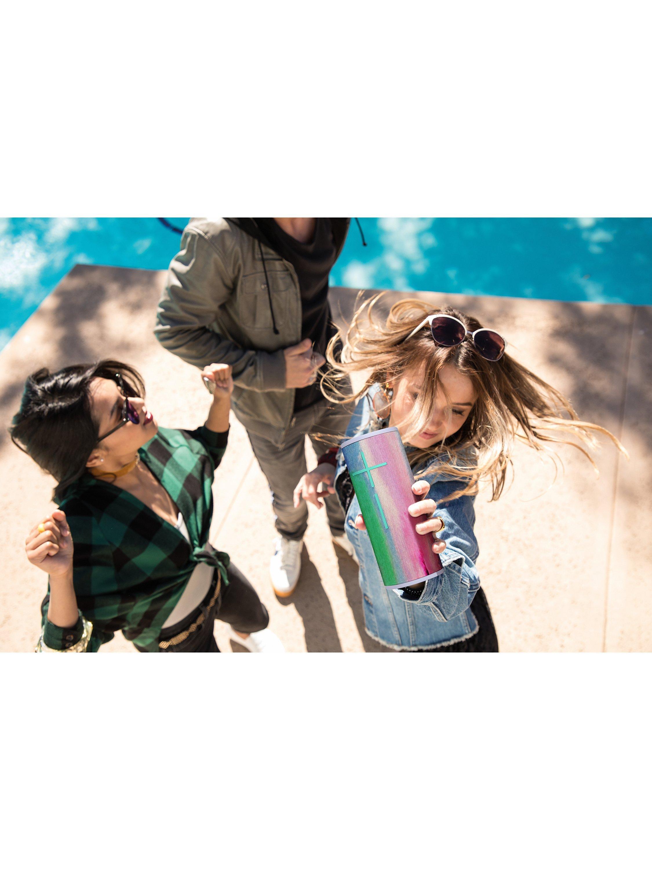 Refined and redesigned, the Ultimate Ears BOOM 3 is a super-portable wireless speaker built for adventure. It rocks 360° sound and is waterproof, dust-proof and drop-proof. The BOOM 3 features the 'magic' button for hands-on control and a wider Bluetooth range than previous models.
