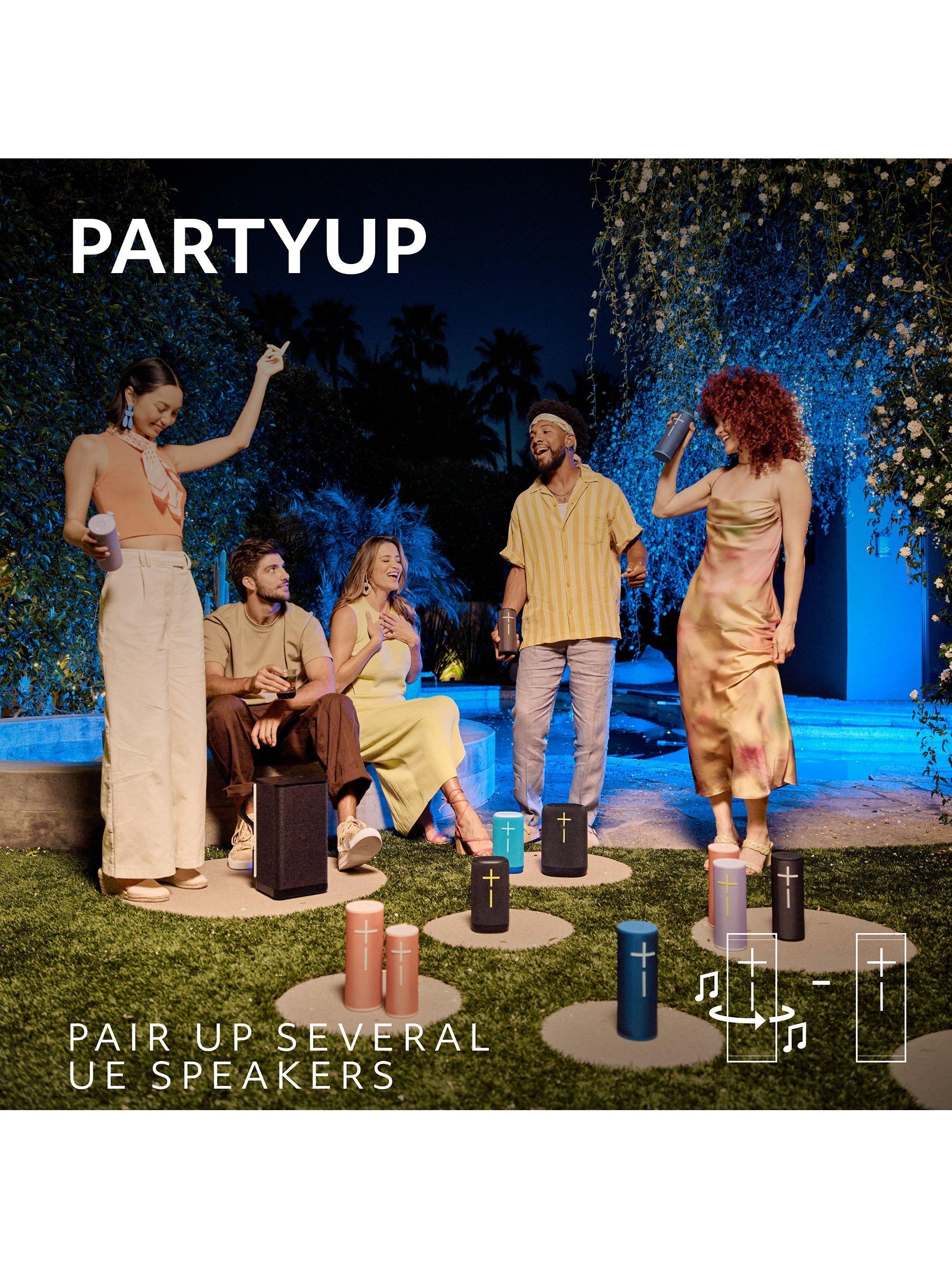 Use PartyUp on the UE BOOM App to pair 1, 2 , 3... and over 150 speakers and create the ultimate sound experience. You can combine multiple BOOM 4, MEGABOOM 4, EVERBOOM, EPICBOOM and HYPERBOOM speakers or even pair them with previous generation BOOM speakers. It’s compatible with all BOOM, MEGABOOM, EVERBOOM, EPICBOOM and HYPERBOOM speakers.