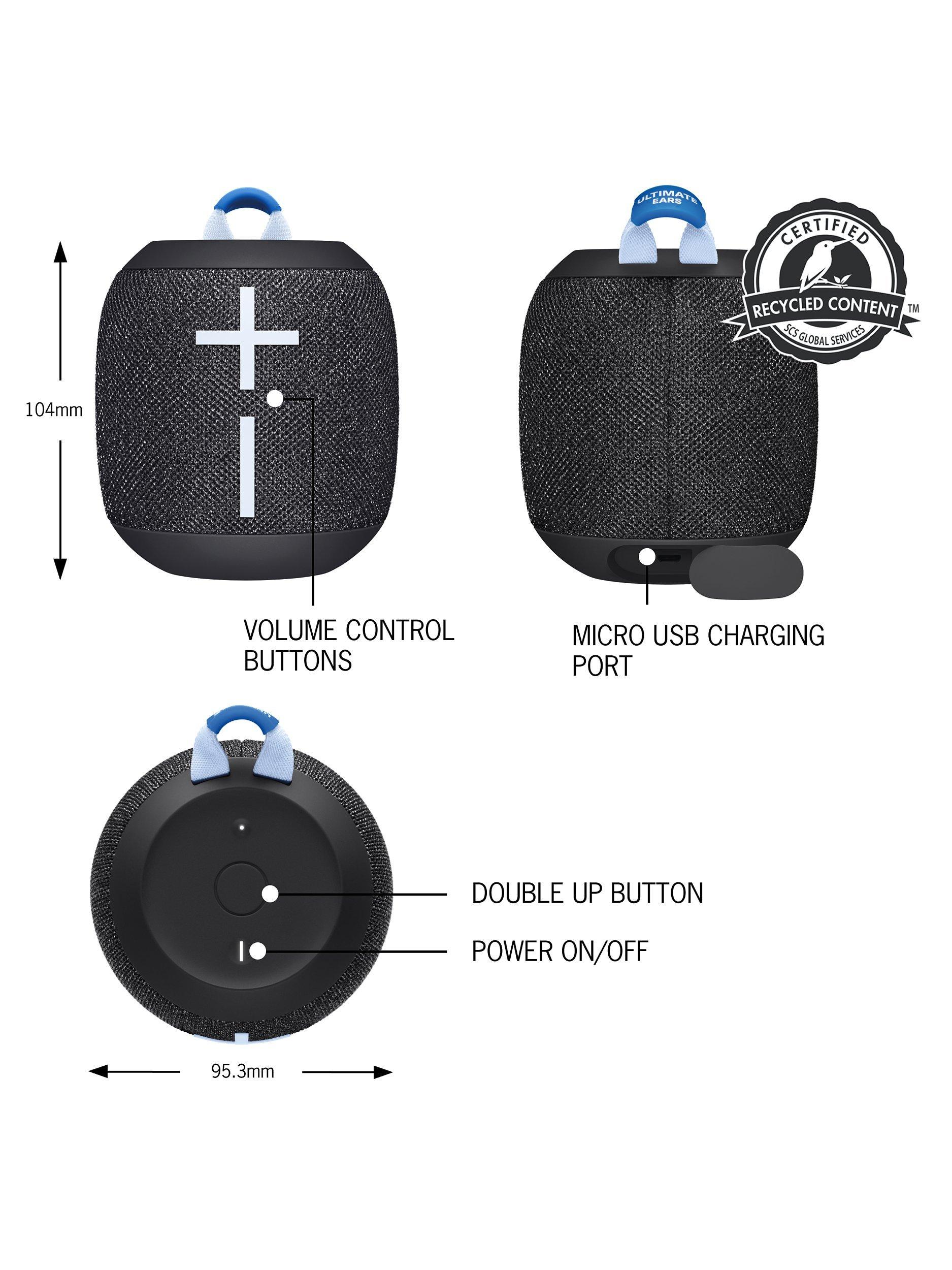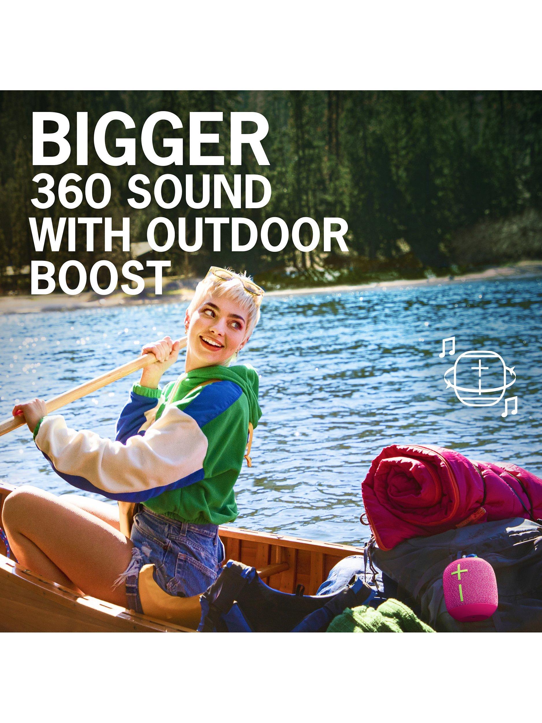 Ultra-portable and waterproof, crank up the tunes wherever with Ultimate Ears’ Wonderboom 3. And stand back. It’s crisp, bassy, and ready to roll with up to 14 hours of surprisingly big 360° booming sound. IP67 rating means it’s waterproof and dust-proof ...it even floats. So take it to the beach, the pool, into the shower for a singalong …wherever you like. It’s built for the active outdoor life, and to deliver a sound to make you wonder. Boom.