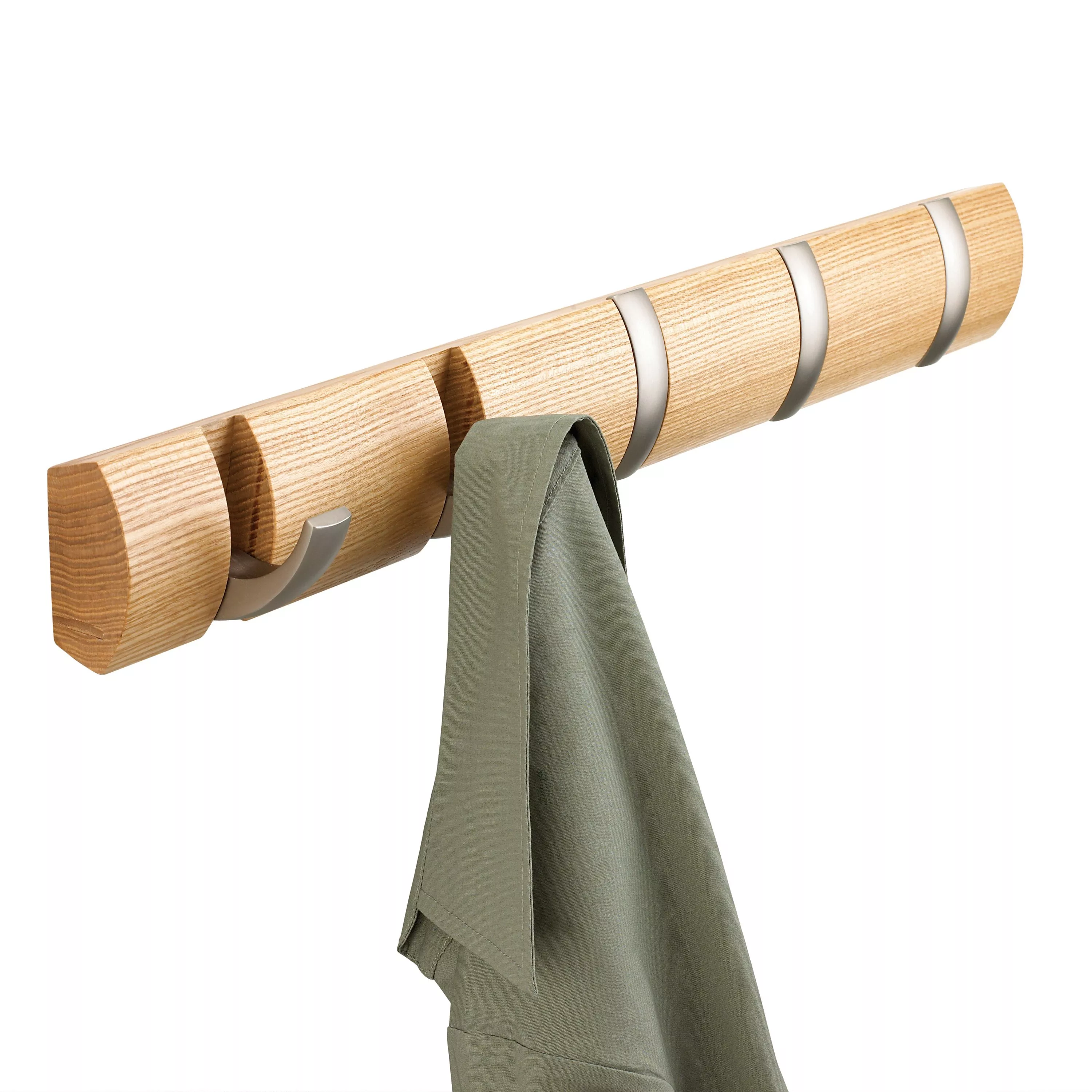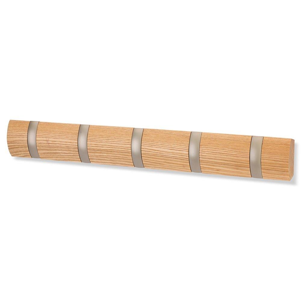 These 5 compact hooks are a great idea. Simply flip them down when in use and when you've finished just flip it up and it's neatly tucked away. The wooden base is 51cm in length. Fittings are included.