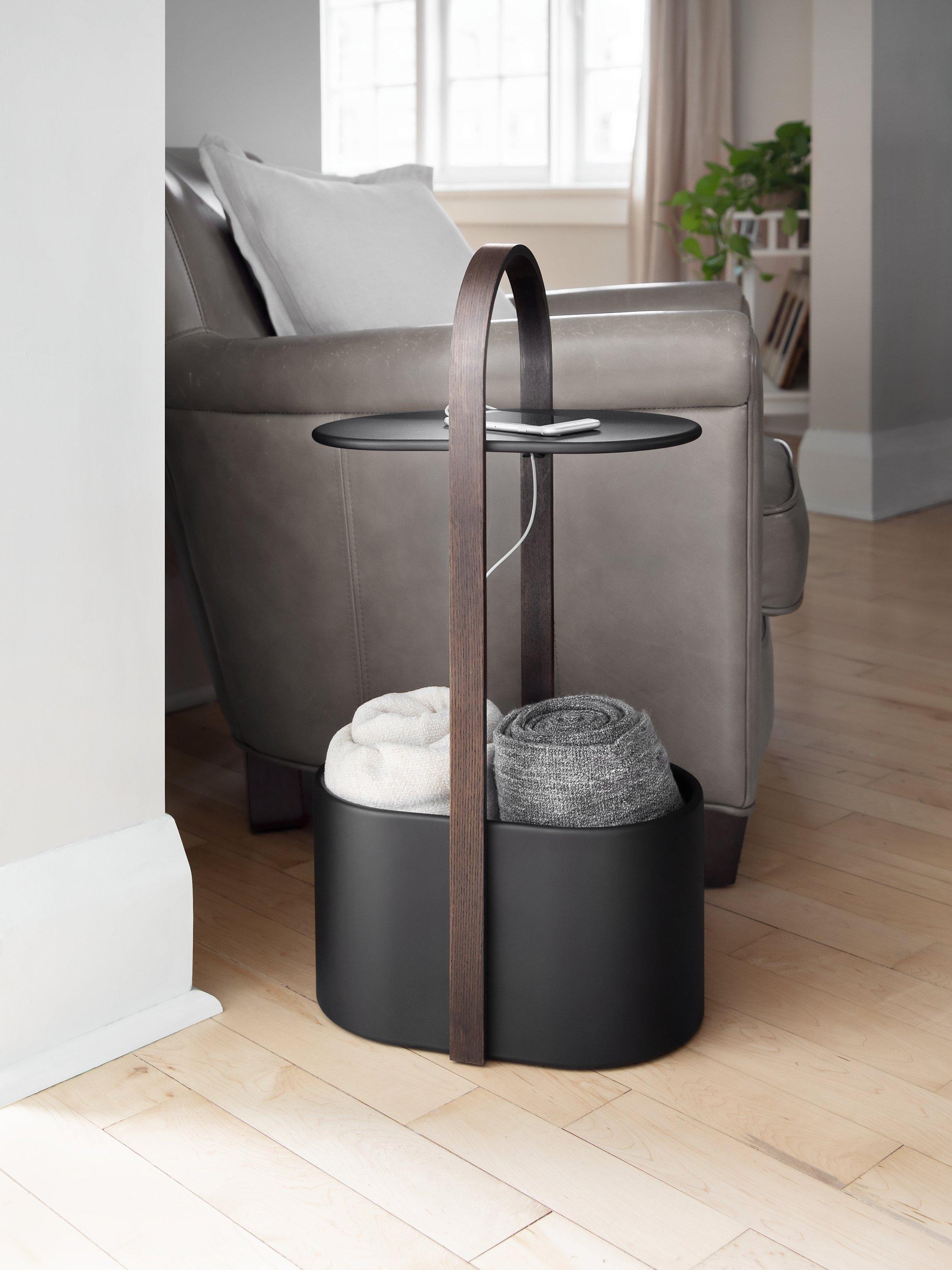 Bellwood’s base also functions as a built-in storage container, perfect for holding magazines, books, plants, blankets and more. It also has an integrated arc handle making it easy to move around to different spaces or rooms.