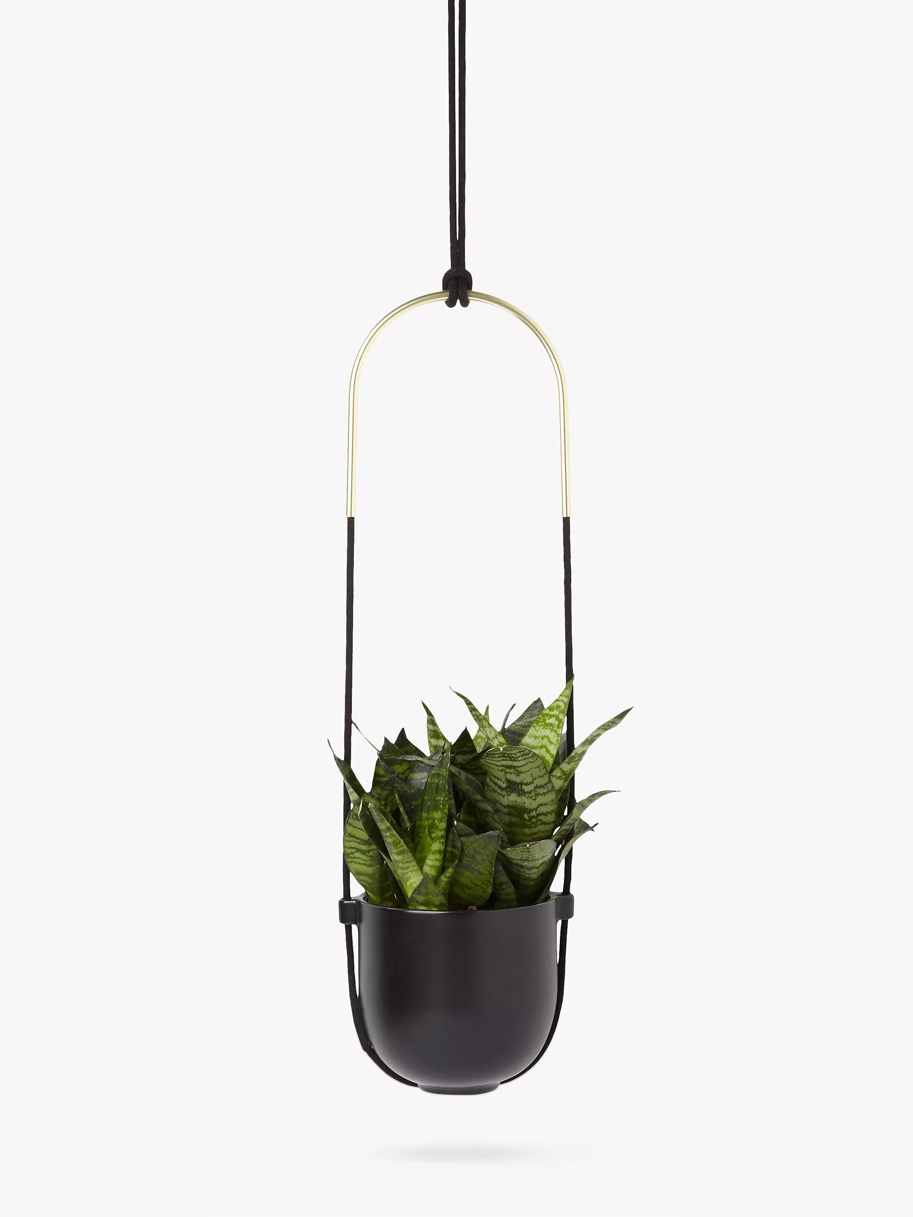Hanging plants add a sense of height to a space. The Bolo ceramic pot from Umbra is suspended by a matching rope design with curved metal in a brass finish creating a contemporary look. Easy to mount on the wall or ceiling, it's ideal for ferns, succulents and other greenery to bring the outdoors in. The matching hanging hook and fittings are included.