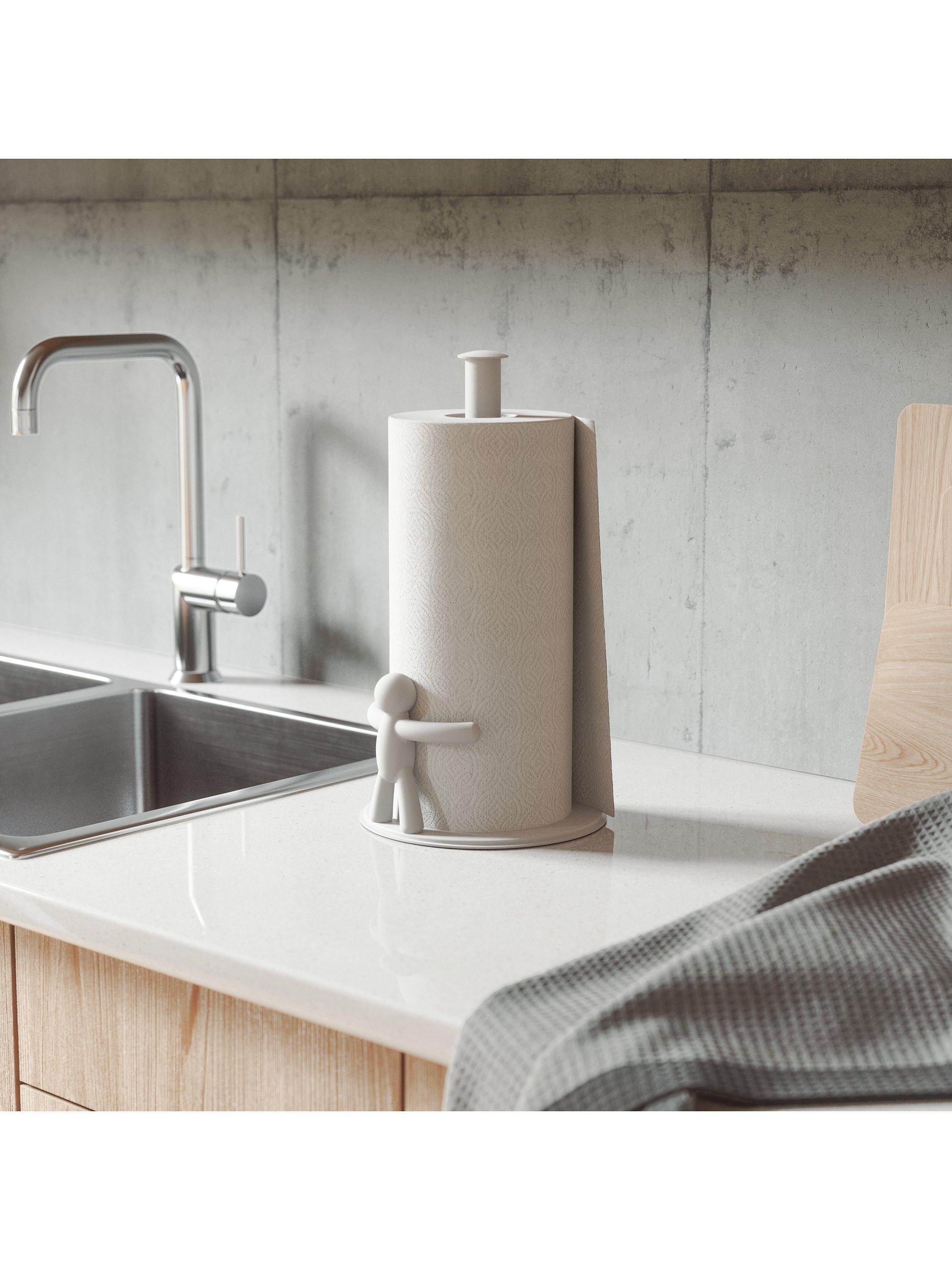 Along with its unique appearance, Buddy is also highly practical; the moulded figure provides friction and leverage for one-handed tearing and protects the roll from unravelling. Taking up little space on your countertop, maintenance is hassle-free; cleaning only requires a quick wipe-down. Measures 7.5 x 7.25 x 13.25 inches (19 x 18 x 34 cm).