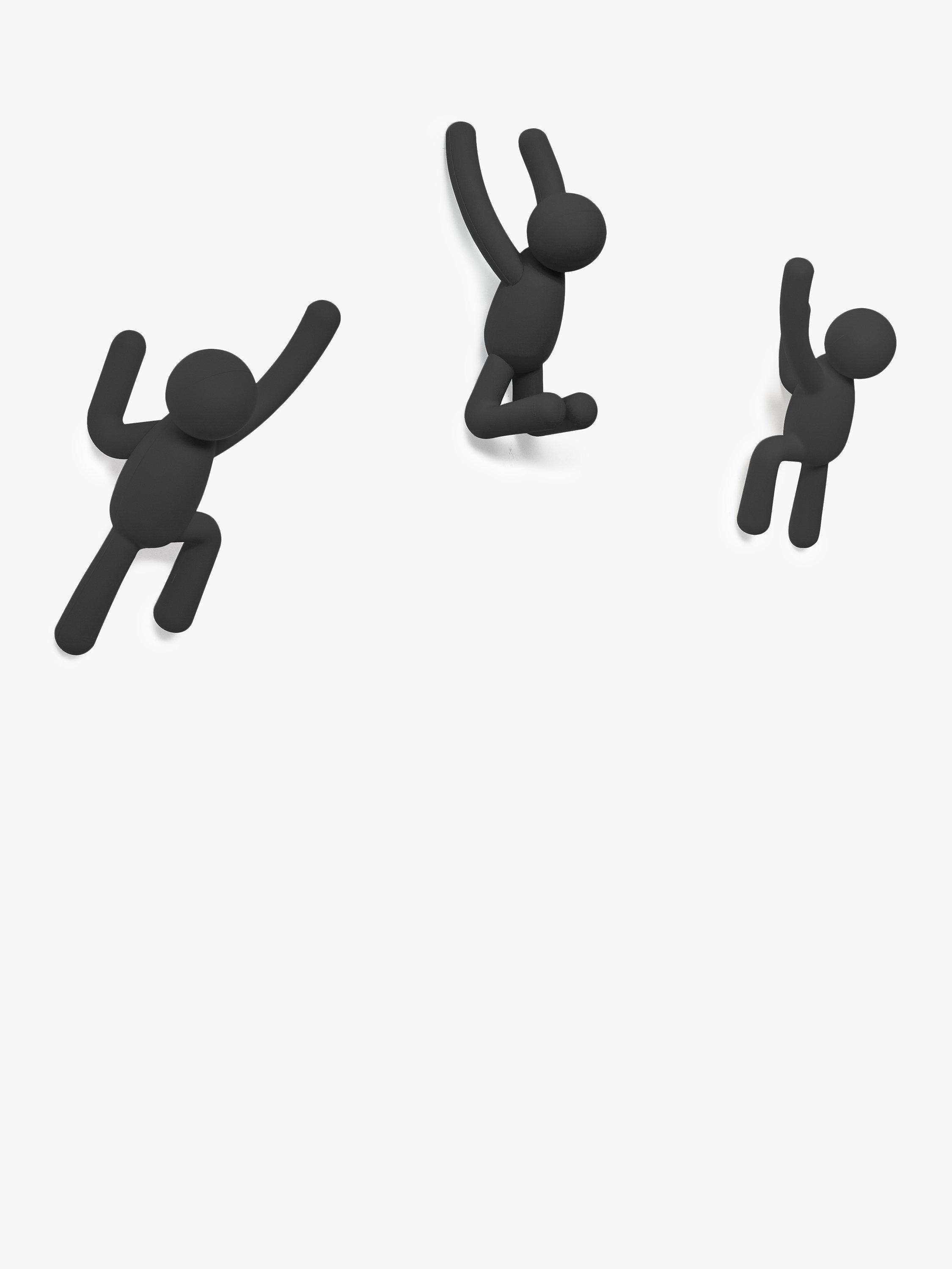 Set of 3 moulded plastic hanging hooks that are designed to look just like little people climbing up your wall. Great for children's rooms or to give a quirky look to a hall or home office.