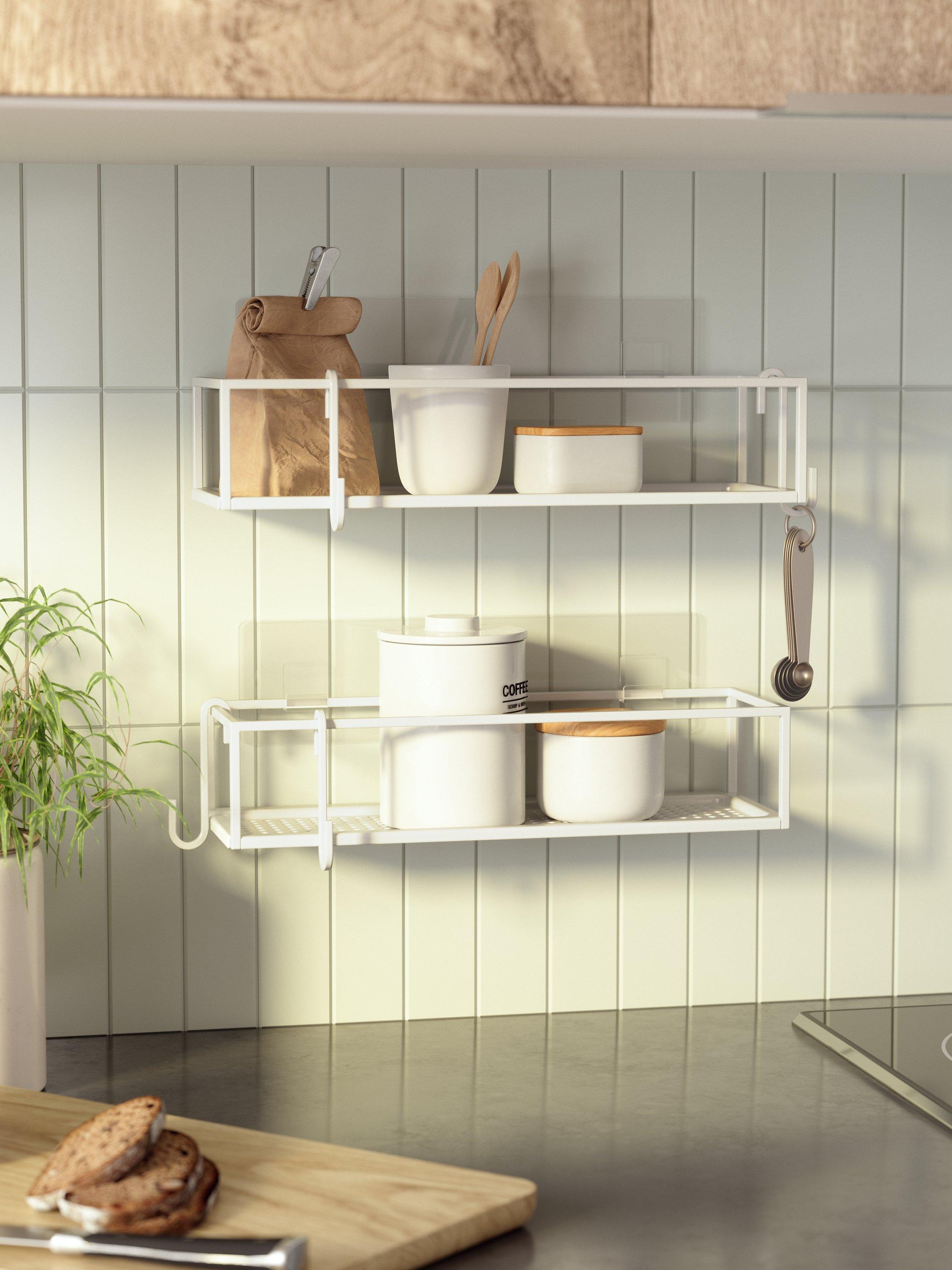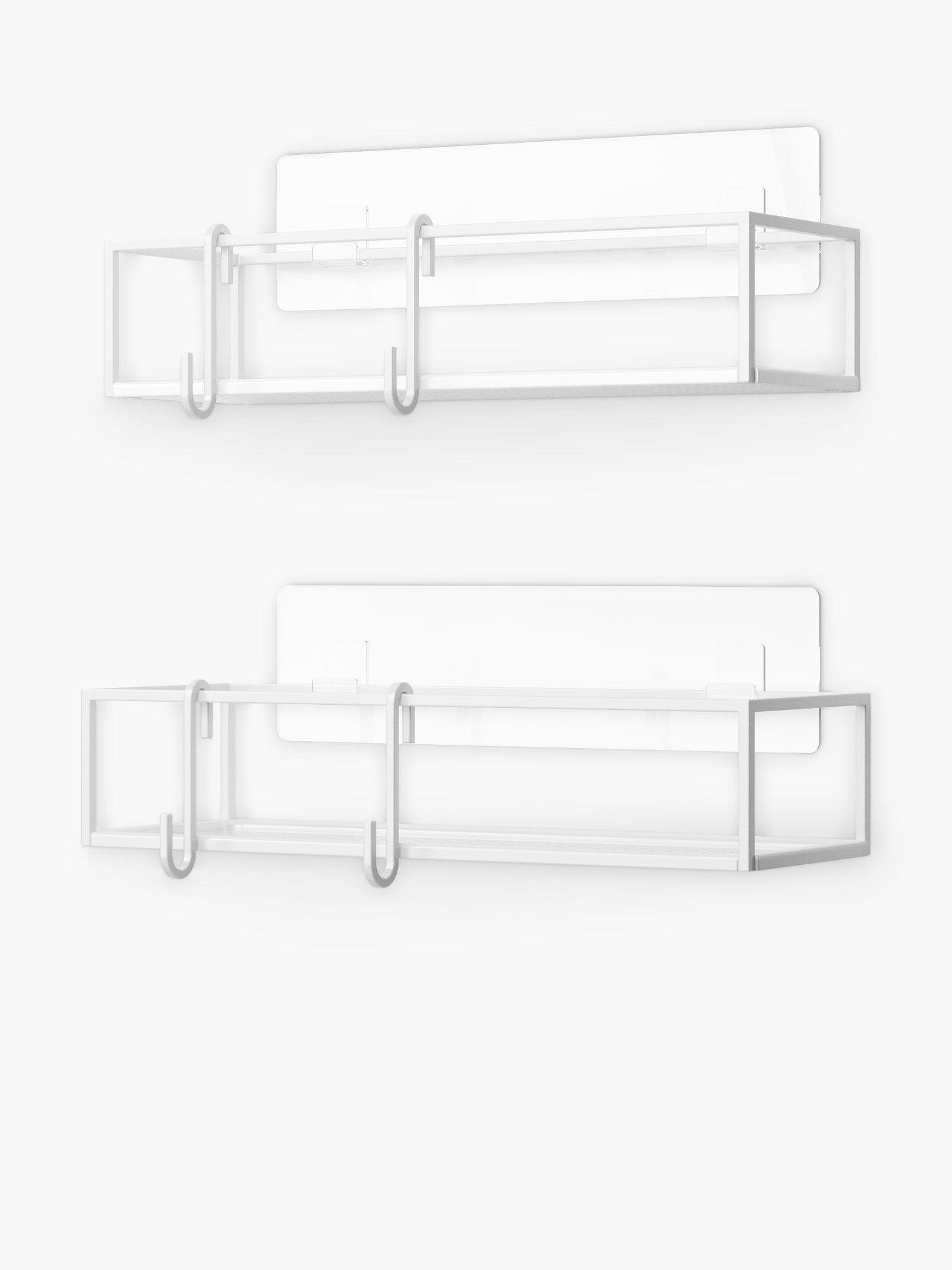 Add elevated storage to your bath or shower space with Cubiko Shower Bins. These non-damaging shower nested storage caddies have a modern, bent wire design, making them easy to integrate with a variety of decor styles. Easy to install, Cubiko includes non-damaging, waterproof adhesive strips that can be applied on various surfaces such as tiles, dry wall, concrete, etc. (does not work on porous surfaces). Each bin has a max load of 10lbs (4.5 kg) and is made of rust-free metal. Includes two metal hooks to hold loofahs, small towels, and more.