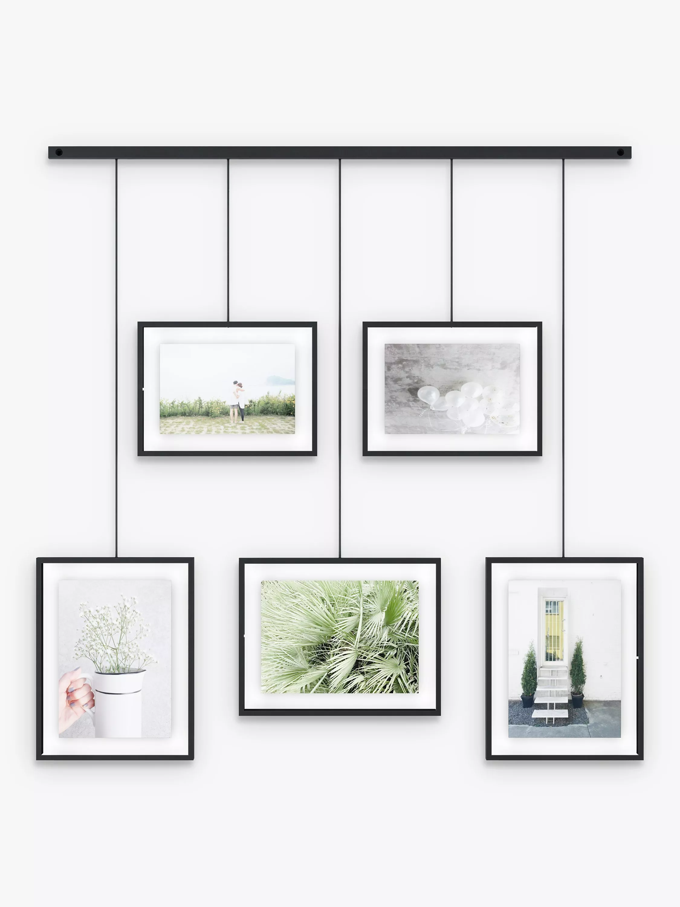 Each picture frame can be moved around the included metal beam, while the hanging rods can be interchanged to customise the frame for your wall space.