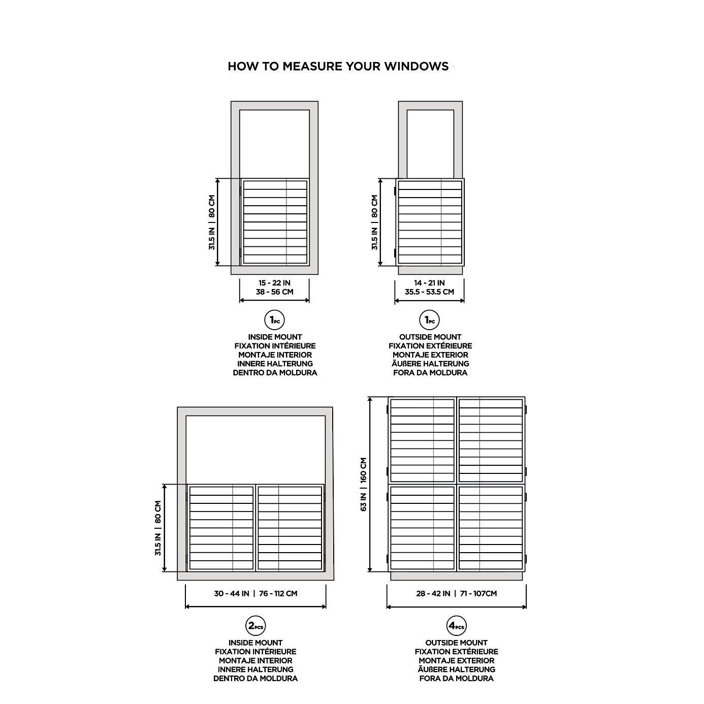 Inside and outside mount: The shutter can be mounted on the inside or outside of your window frame, on the left or right-hand side. For uneven windows, easy-to-apply shims can be added to create balance.