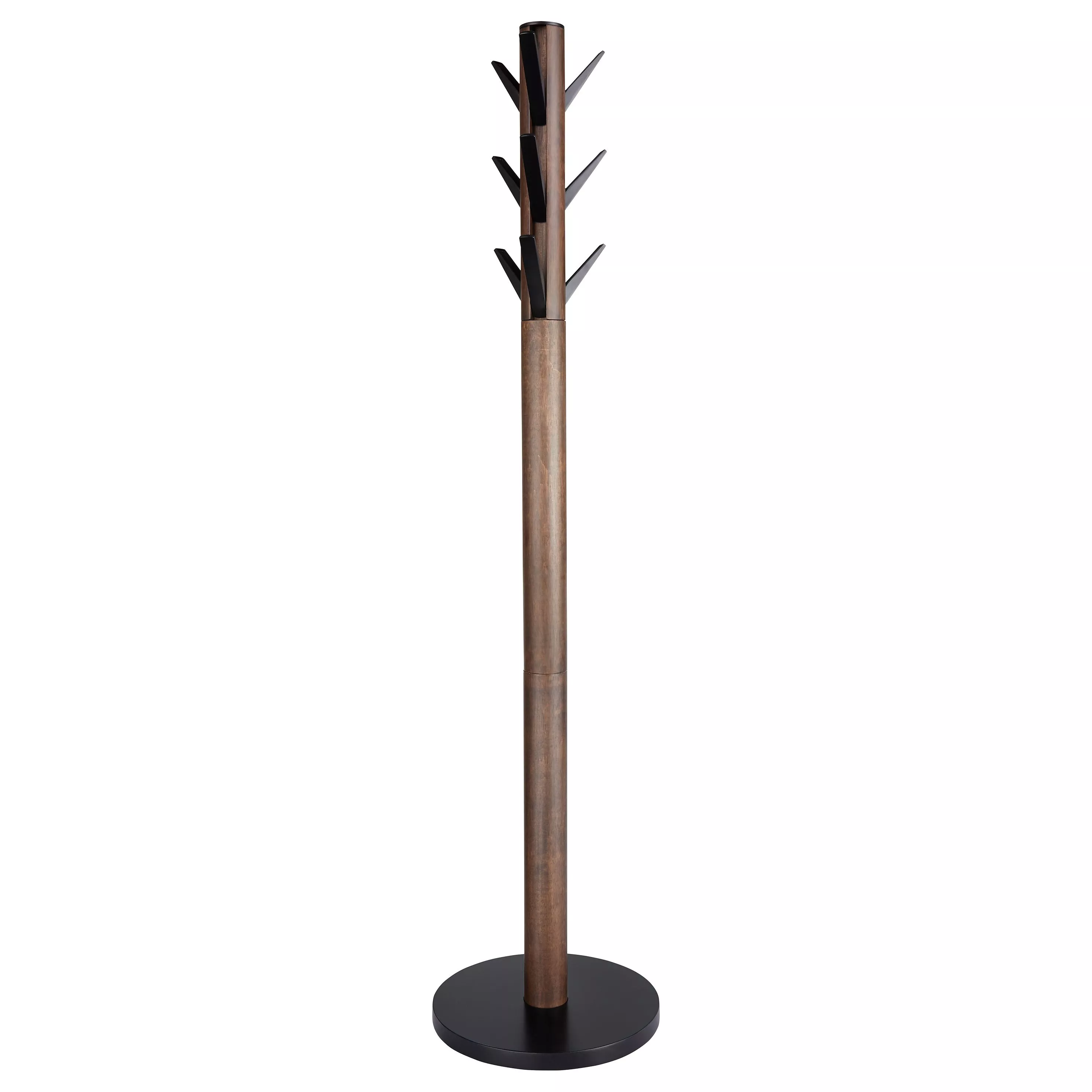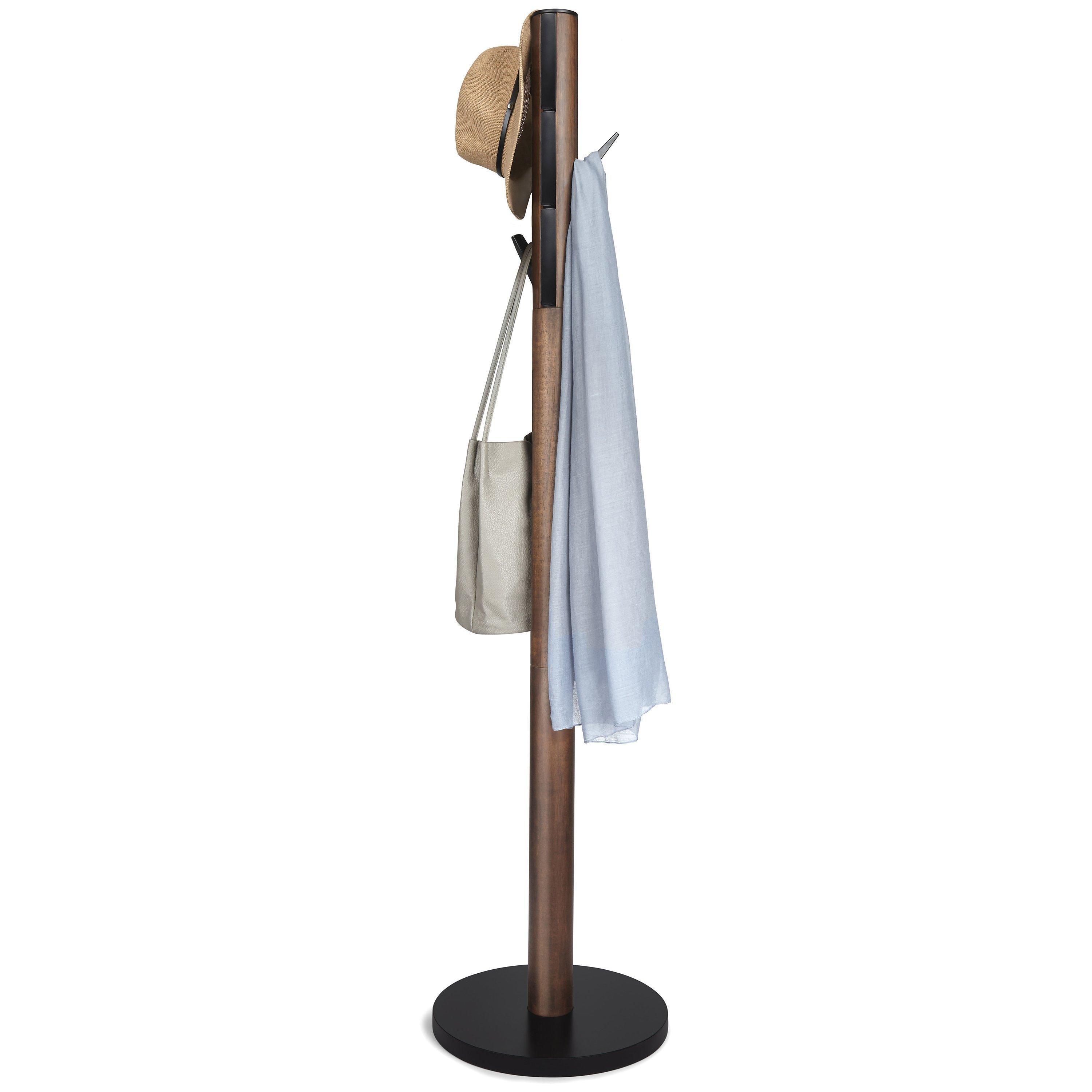 Bring a taste of the natural world inside, with this standing wooden coat rack that looks part cactus and part pine branch, with 9 thorn-like hooks that flip down for use.