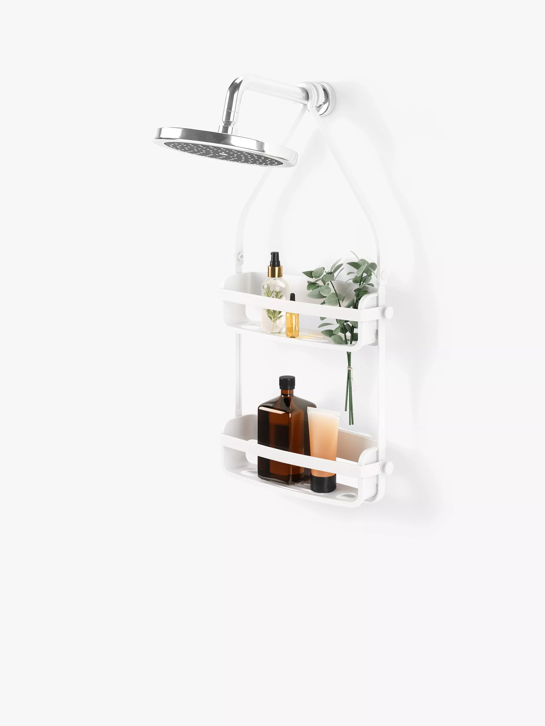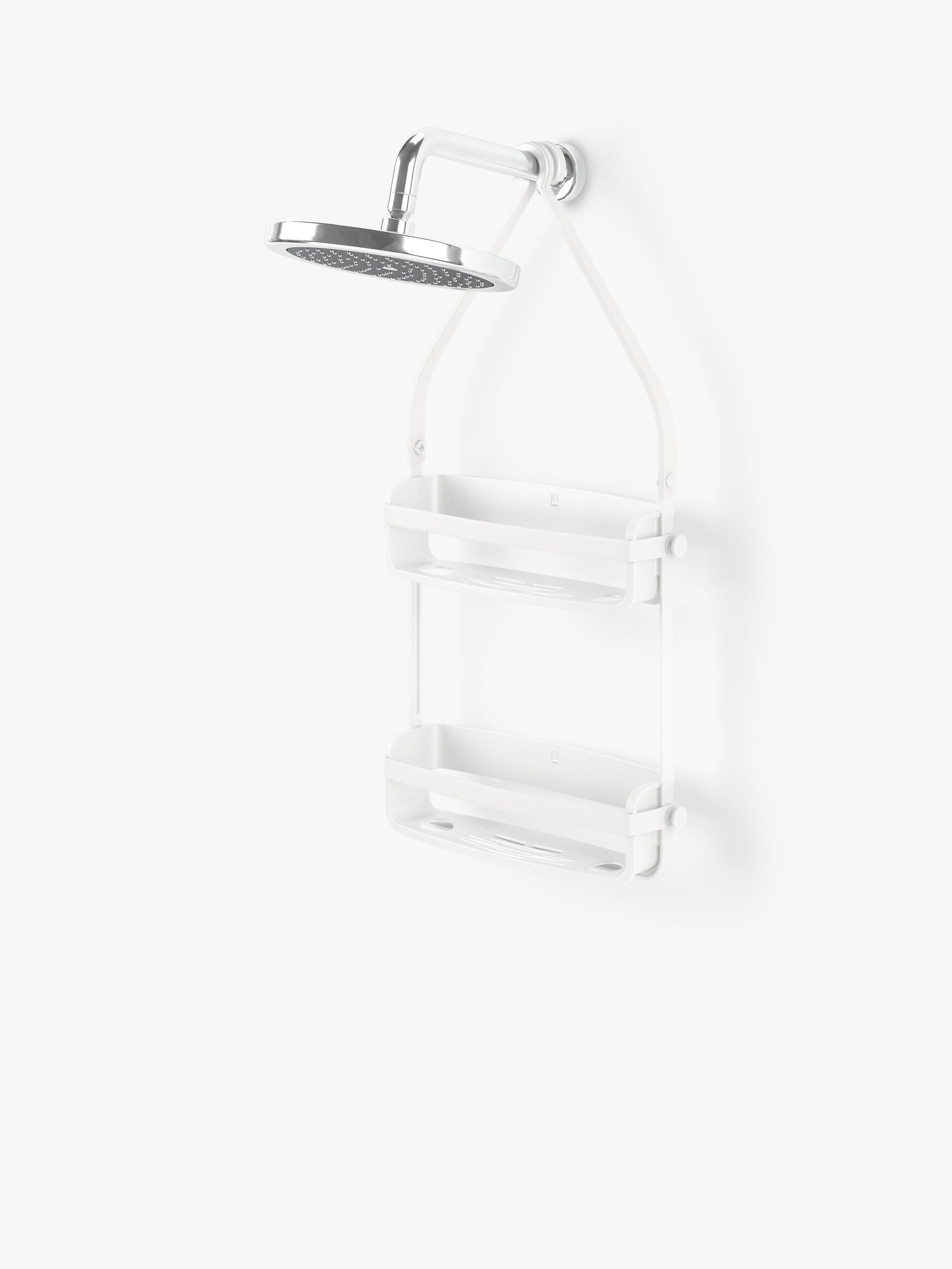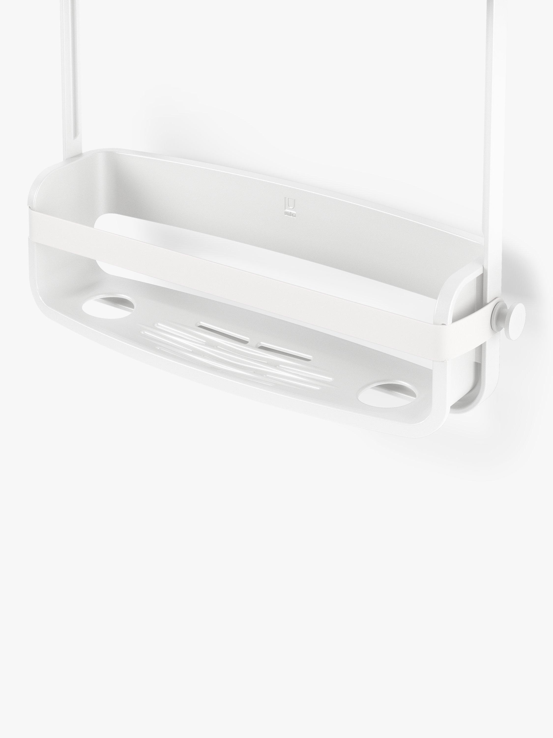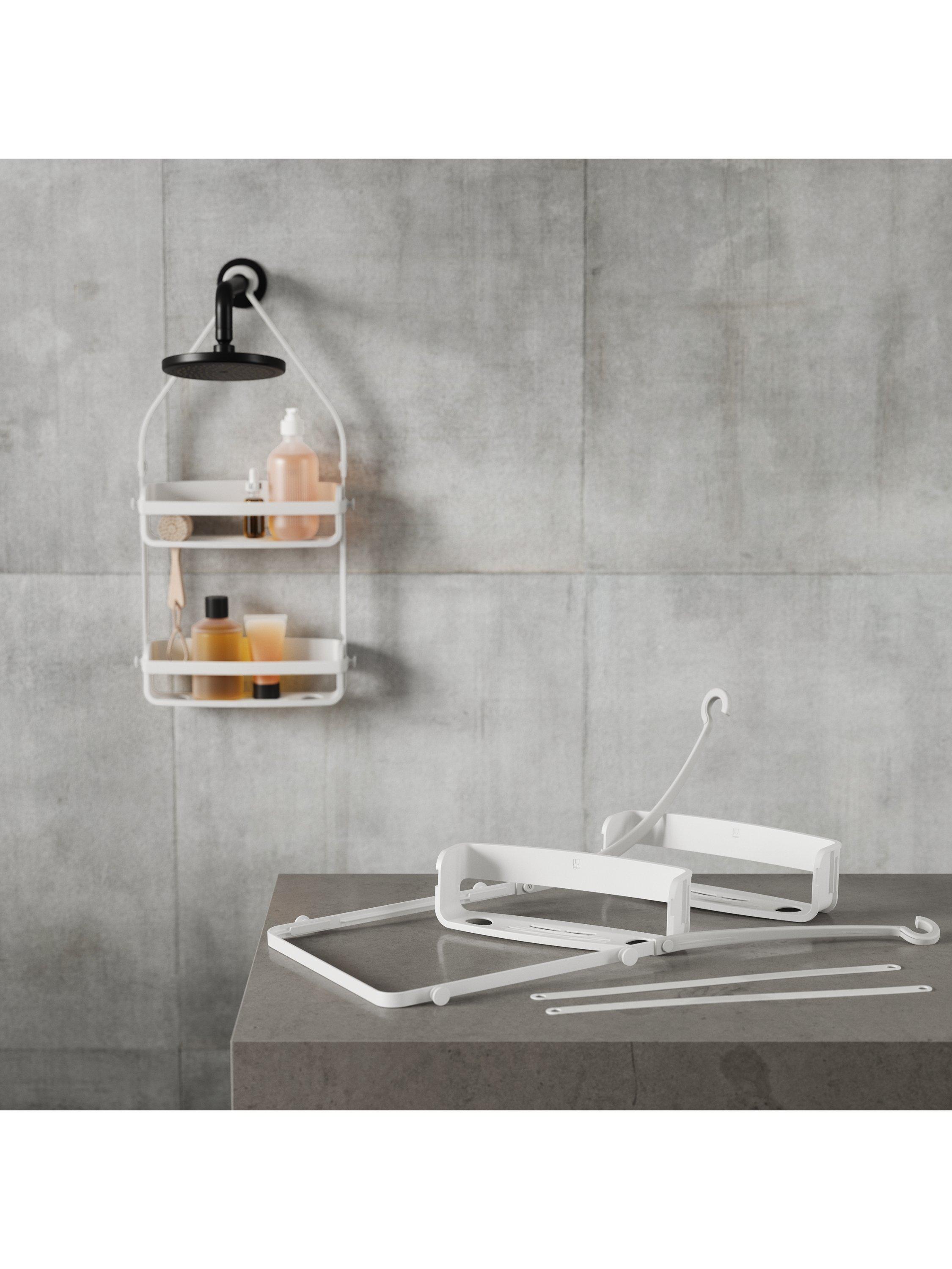 Store all your shower essentials in one place with Umbra’s highly functional Flex Shower Caddy. Flex was designed to take up minimal space in the shower while still accommodating larger bottle sizes. Made of a rigid plastic frame, Flex Shower Caddy features flexible silicone bands that give plenty of storage options. Flex also features two extra wide plastic shelves to accommodate all your shampoo, conditioner and body wash while the four hooks are perfect for loofahs and storing razors. Utilise the four “Bottle Collars” to hold your bottles bottom-up, making it possible to dispense every drop, while holding your bottle in place. No need to worry about moisture or product build up as Flex features an integrated draining system that prevents unwanted mould and mildew. Flex can be mounted either over the shower head or the on the shower curtain rod. Measures 12.13 x 3.5 x 25.5" (31 x 9 x 65 cm). Made from 90% recycled plastic.