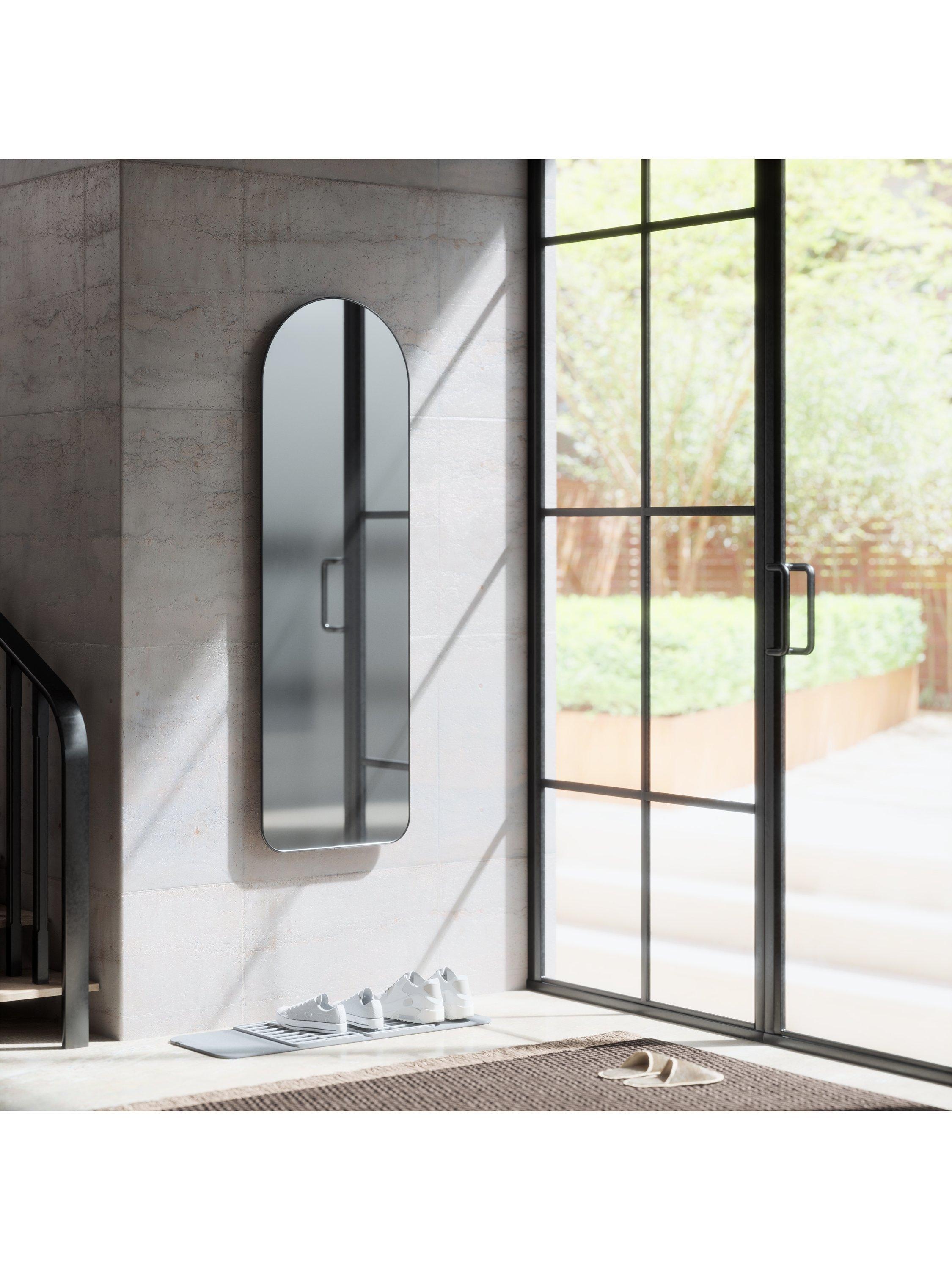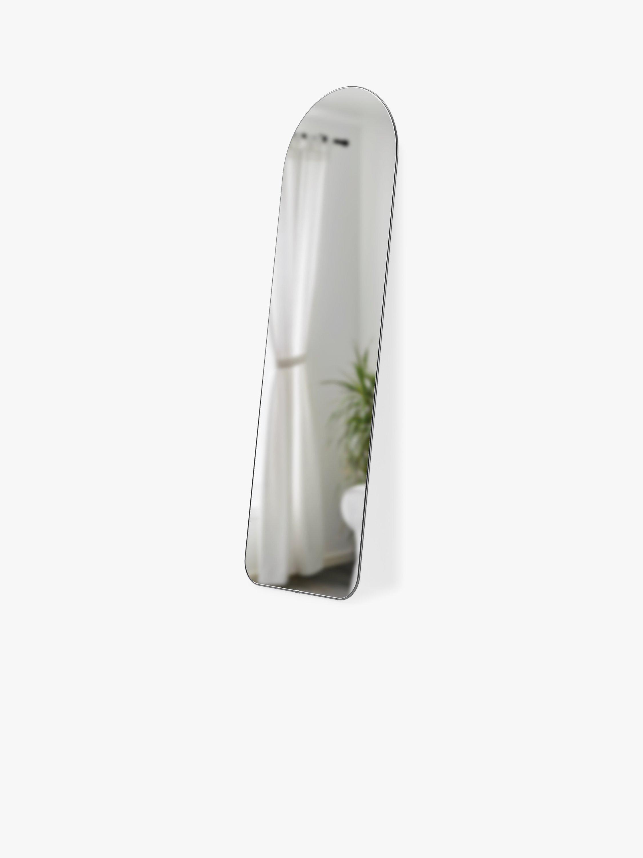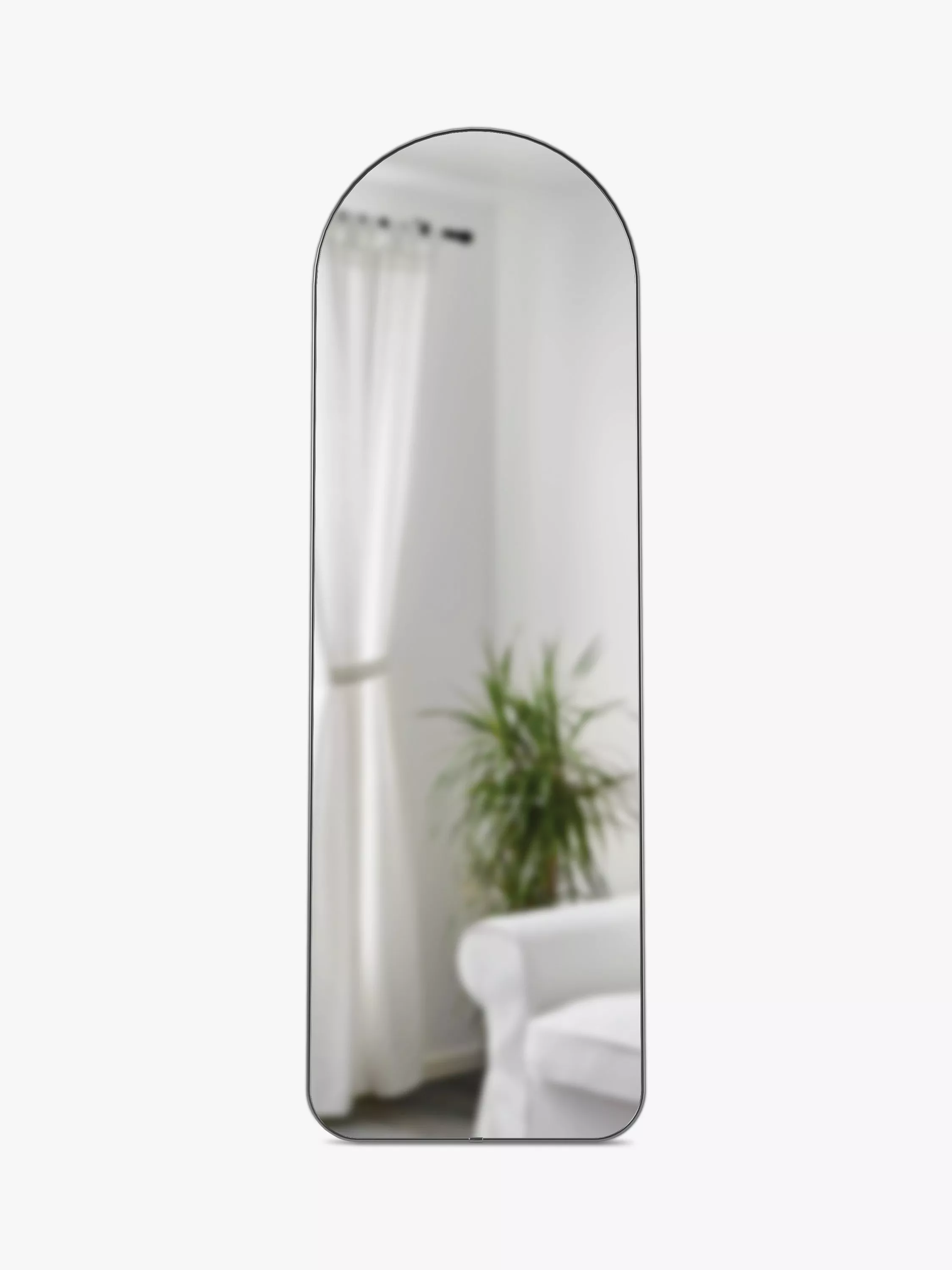 The Umbra Hubba arched mirror is a modern style with a smooth curve on the top and rounded corners, adding an impressive feature to any room or hallway, while also being a practical home accessory.