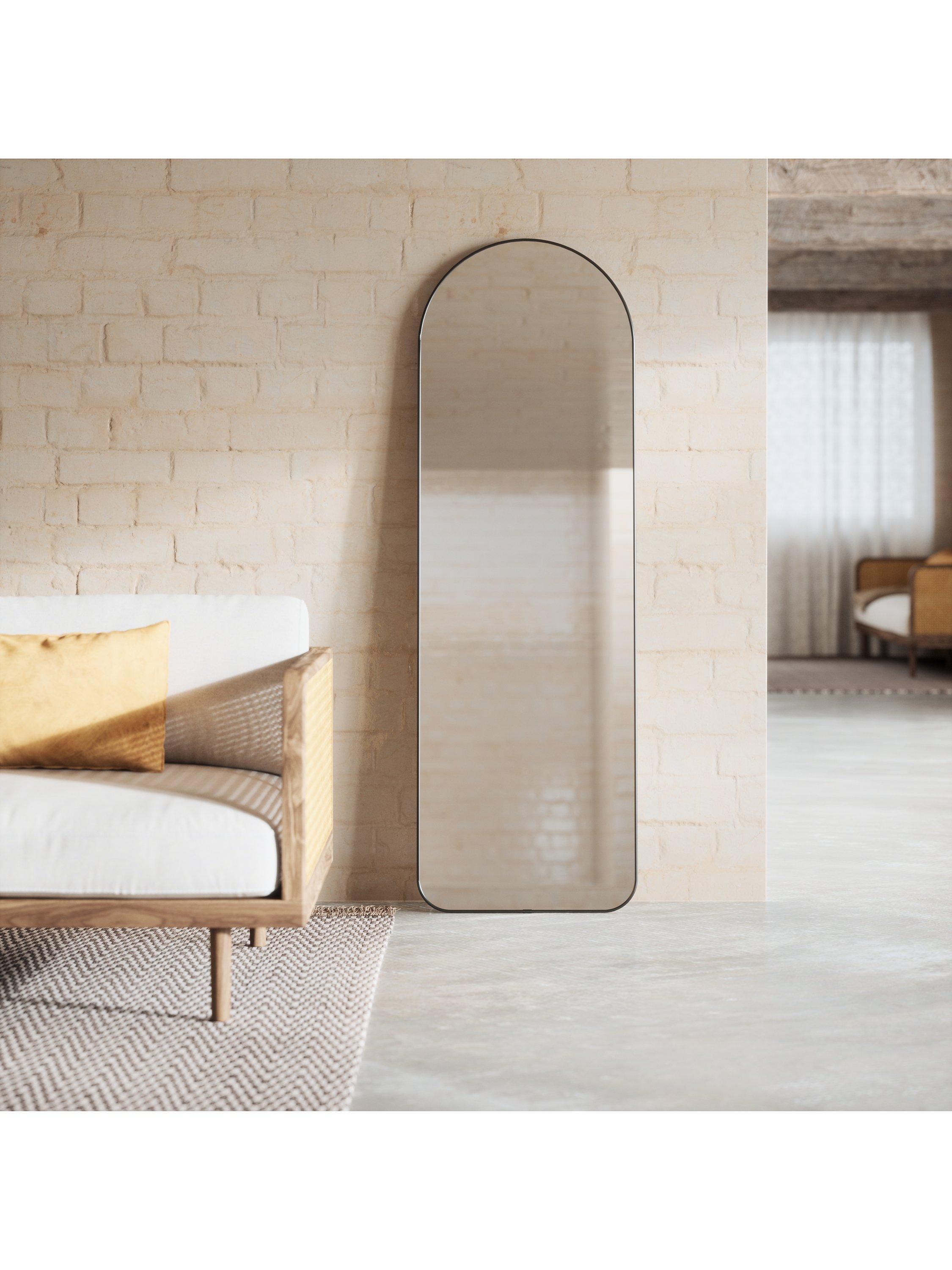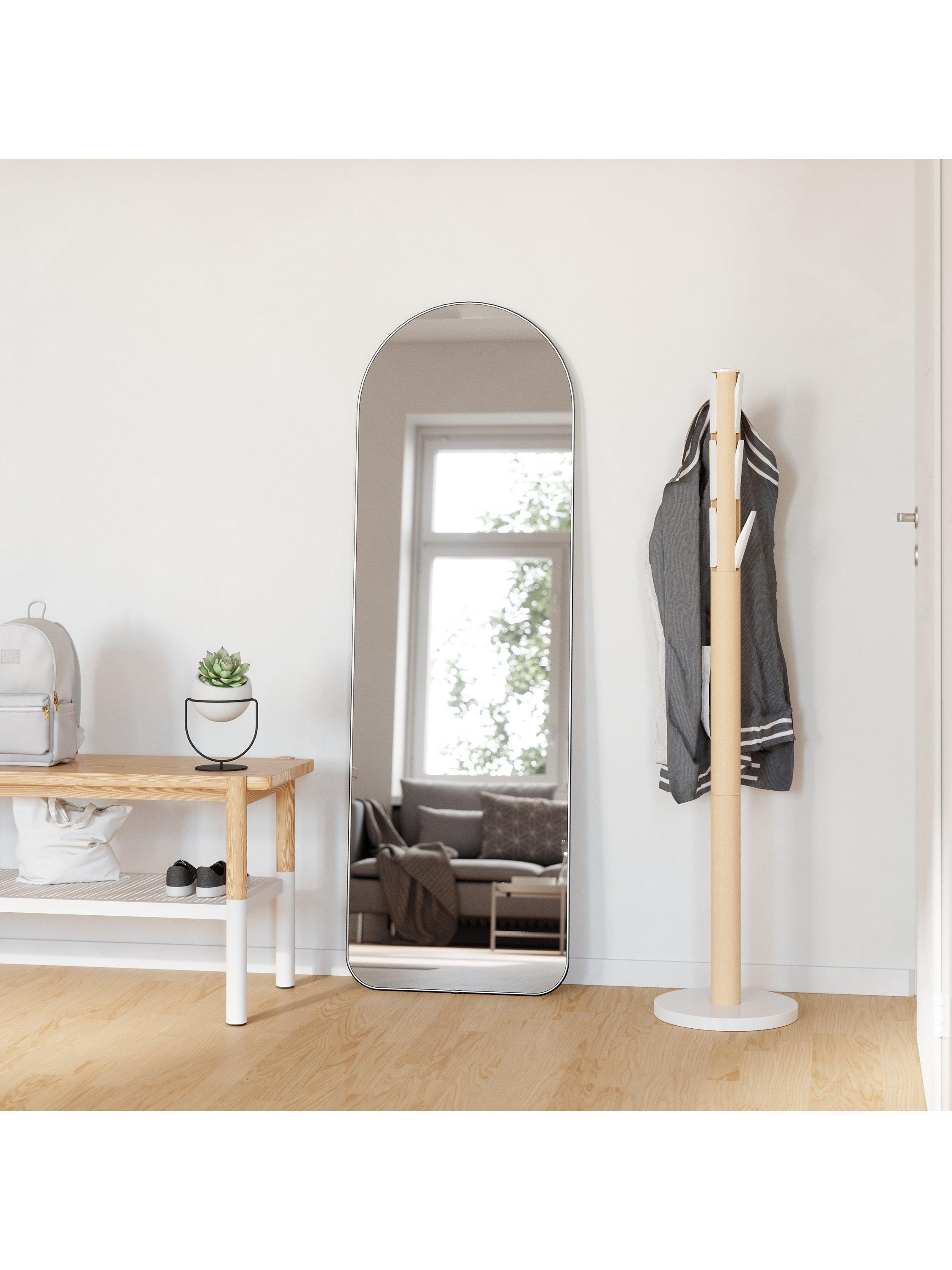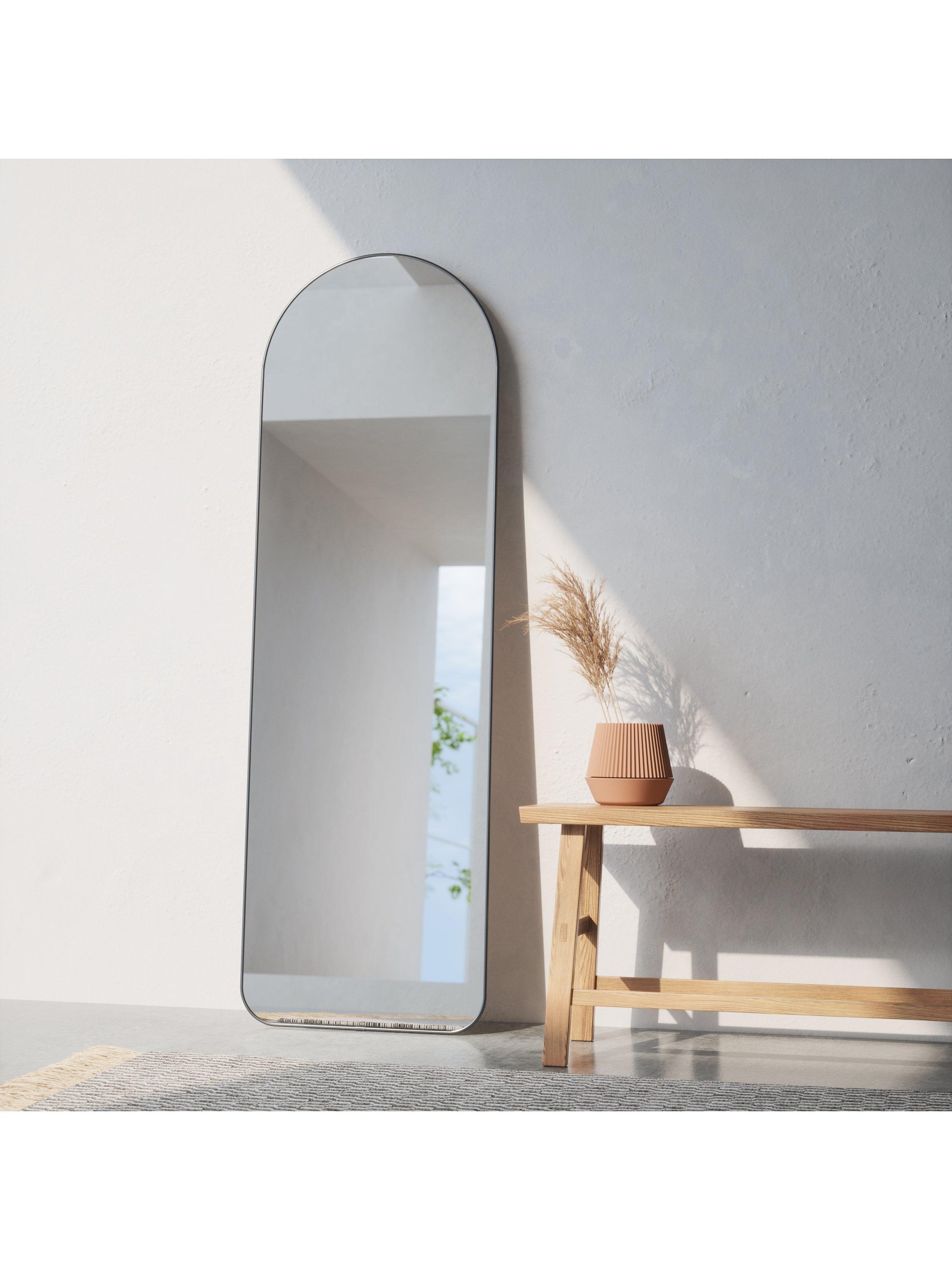 The Umbra Hubba arched mirror is a modern style with a smooth curve on the top and rounded corners, adding an impressive feature to any room or hallway, while also being a practical home accessory.