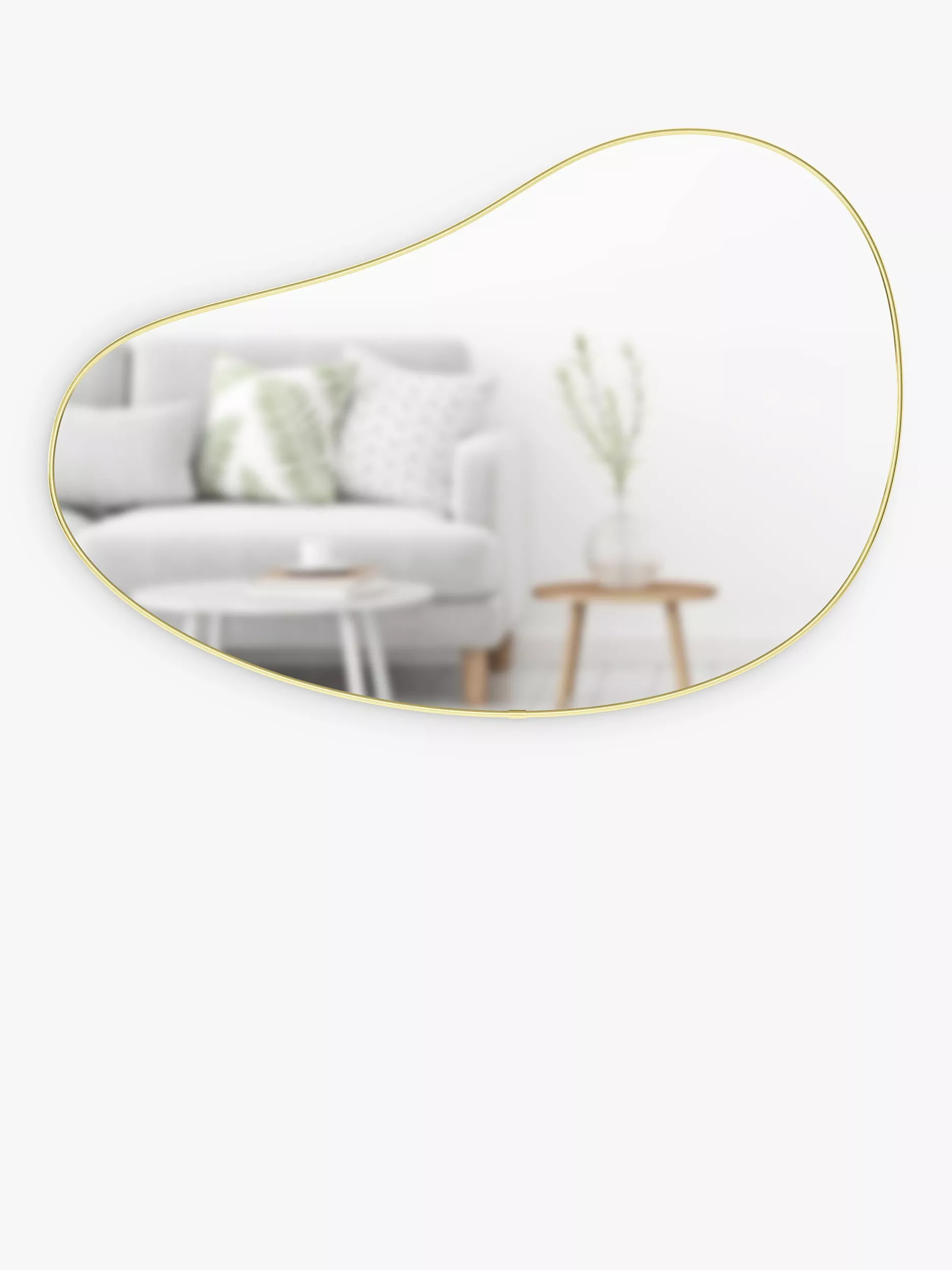 A modern style with an organic shape, this Umbra Hubba mirror has a stylishly understated rim in a metallic finish. This designer mirror suits any room or hallway and a range of interior décor.