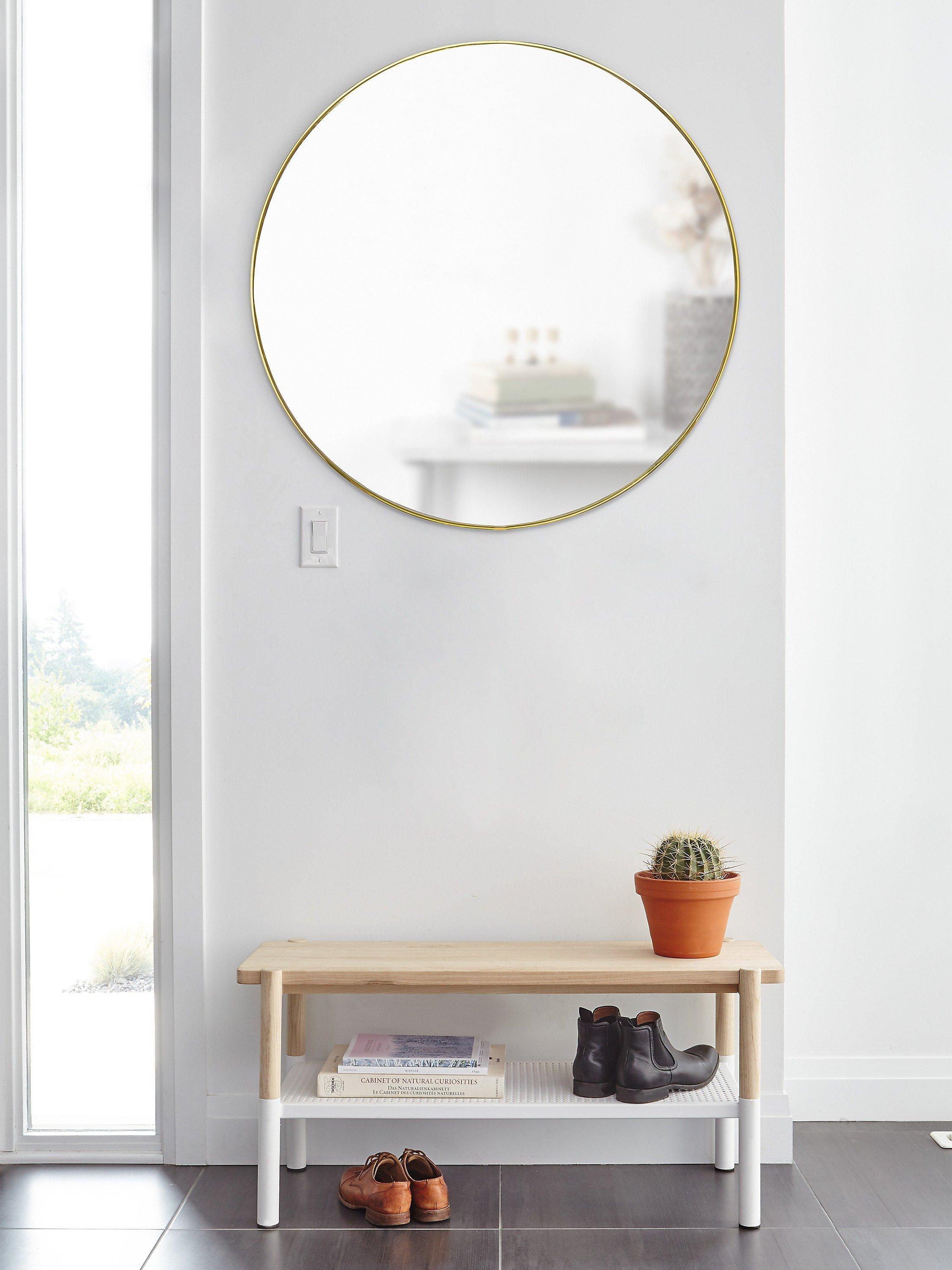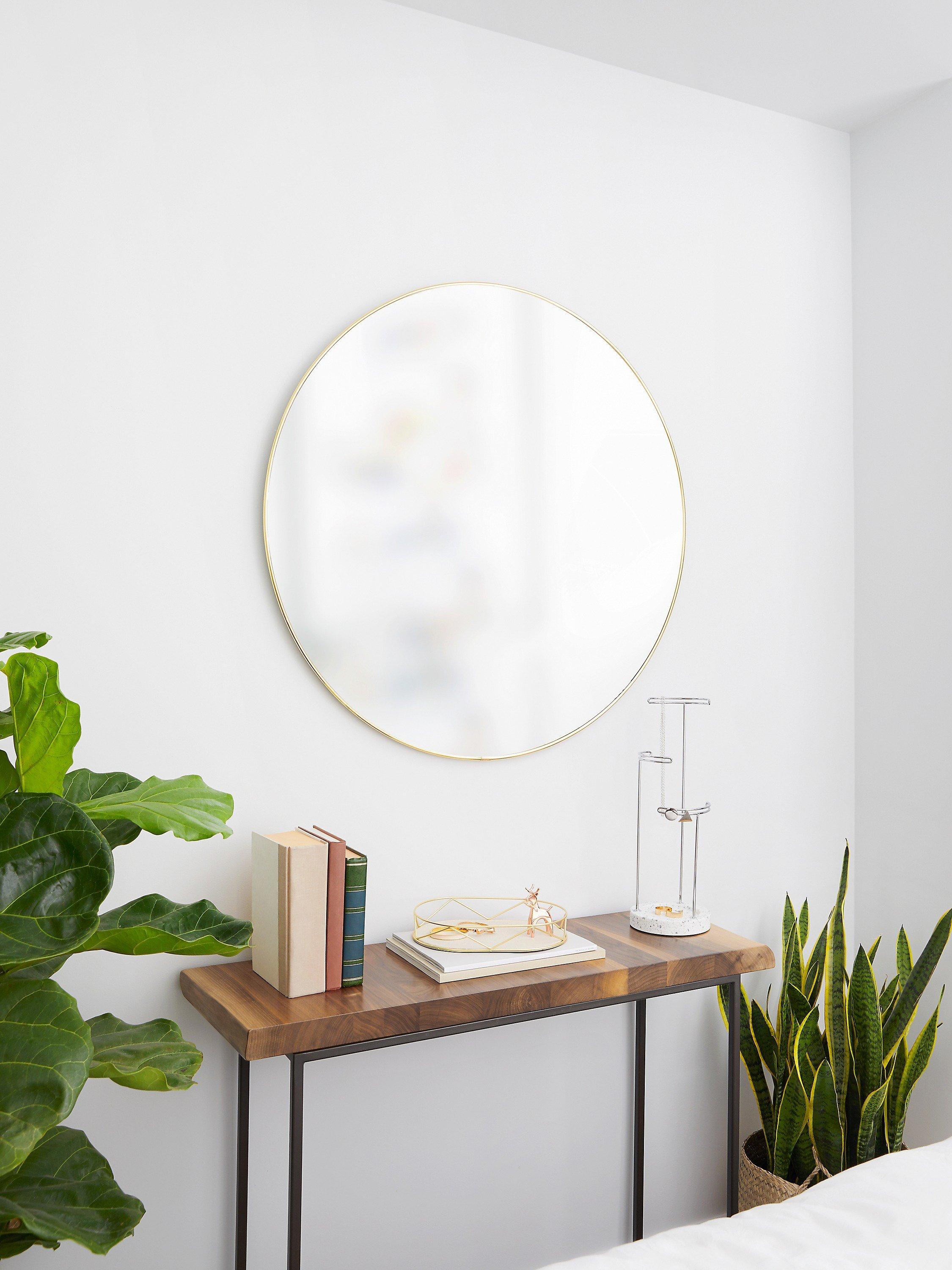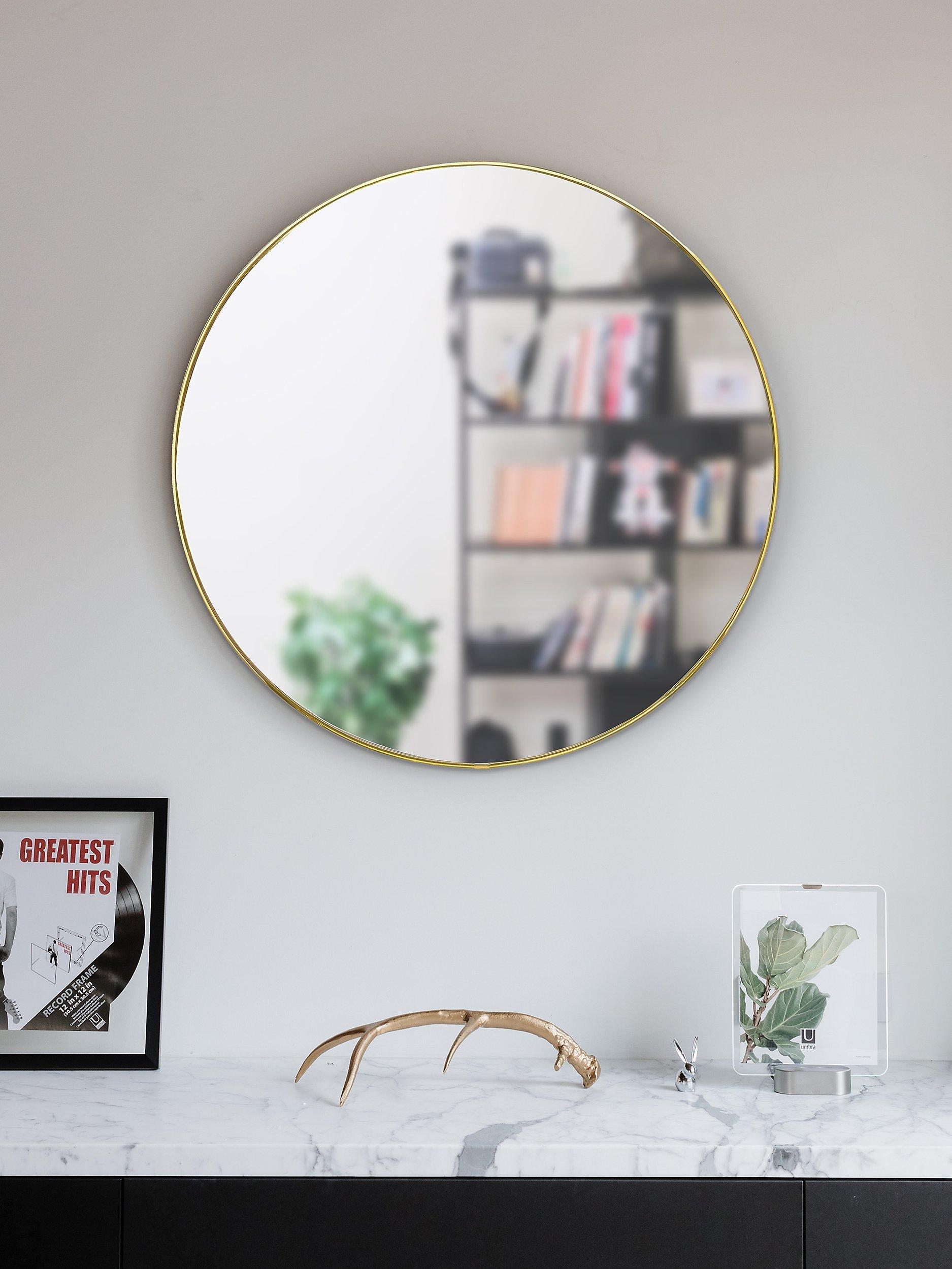 A large round design with a minimalist metal frame, this wall mirror creates a contemporary feel for your room or hallway. It's ready to hang on your wall using the fittings on the back.
