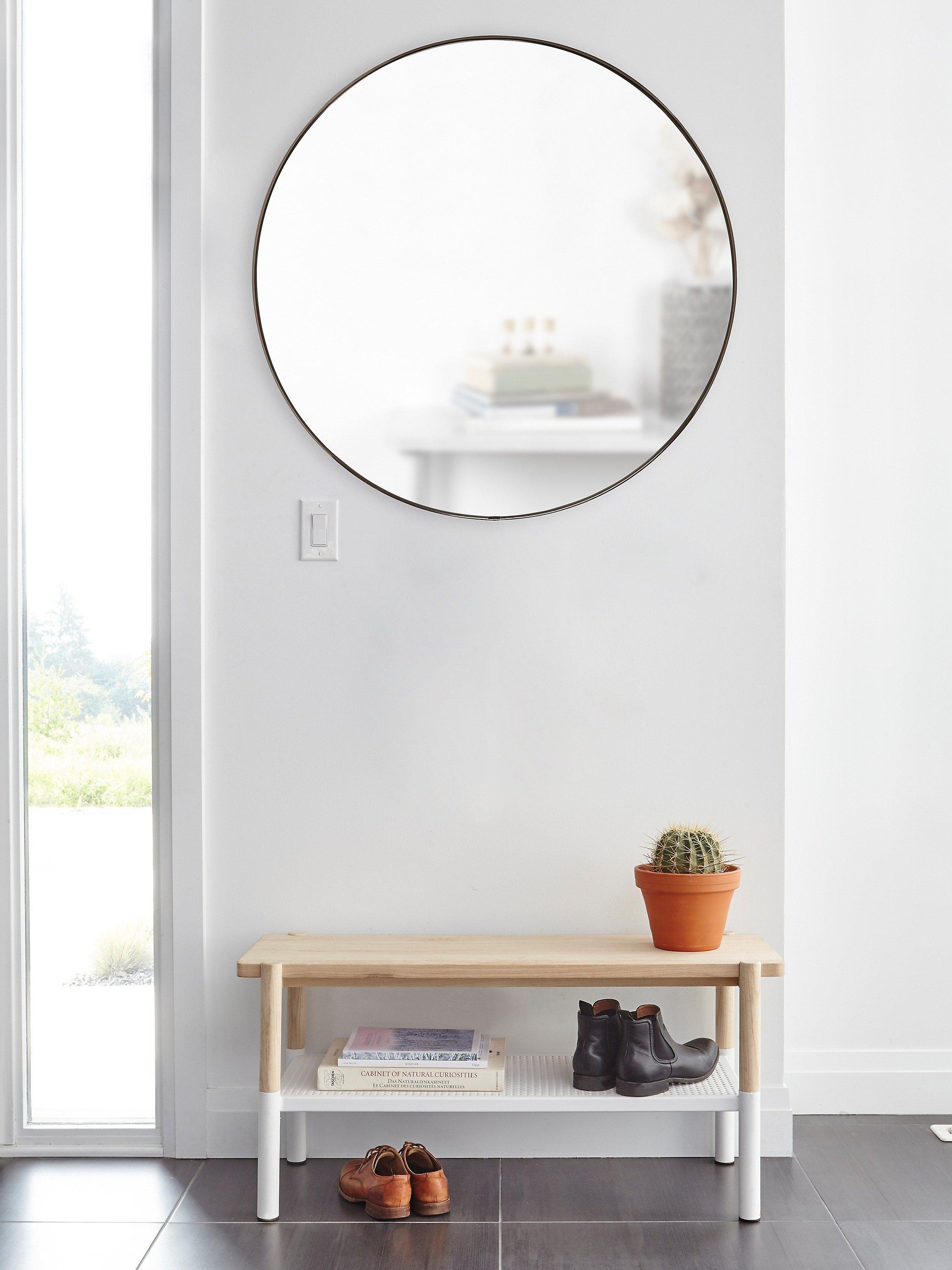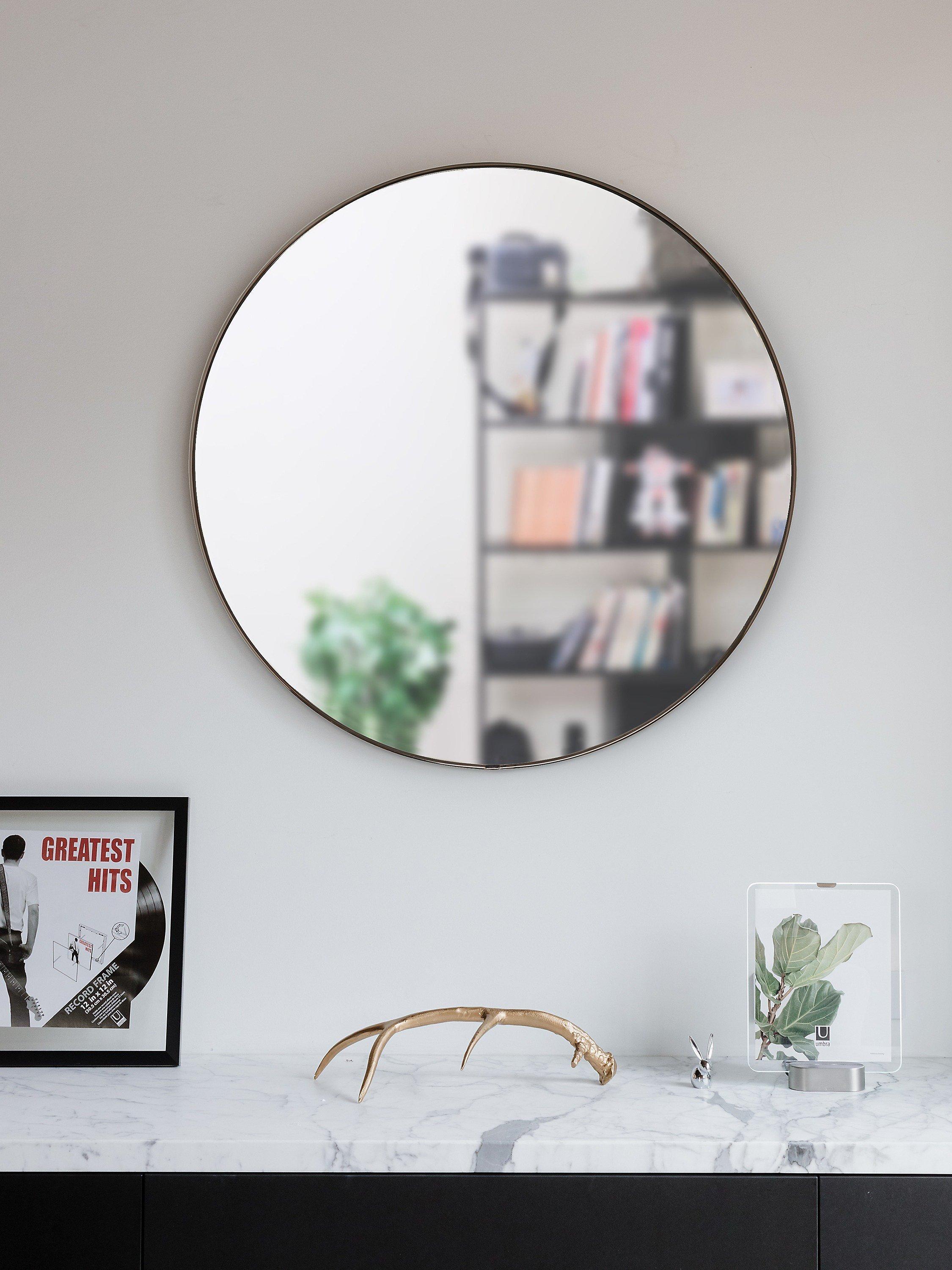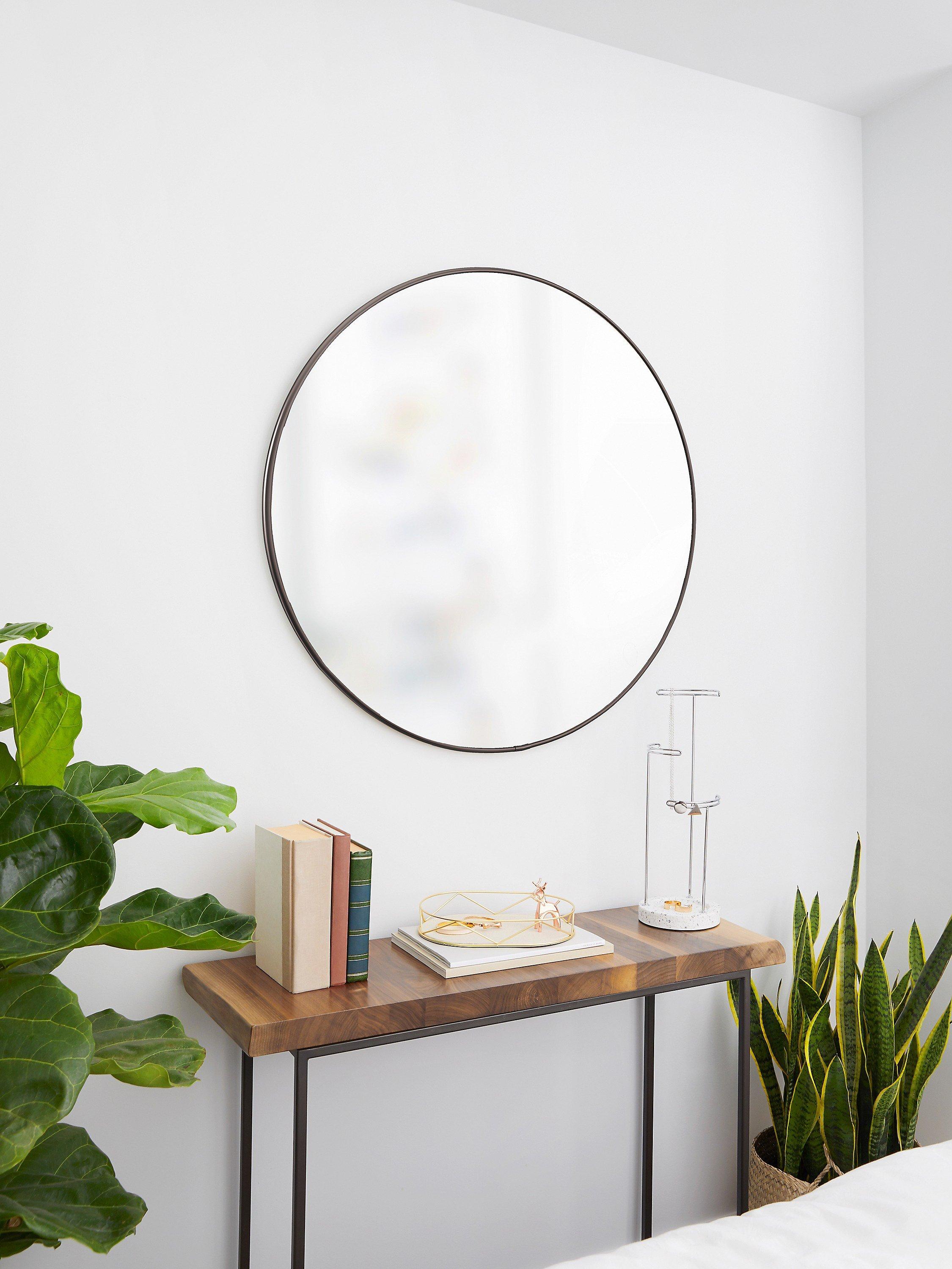 A large round design with a minimalist metal frame, this wall mirror creates a contemporary feel for your room or hallway. It's ready to hang on your wall using the fittings on the back.