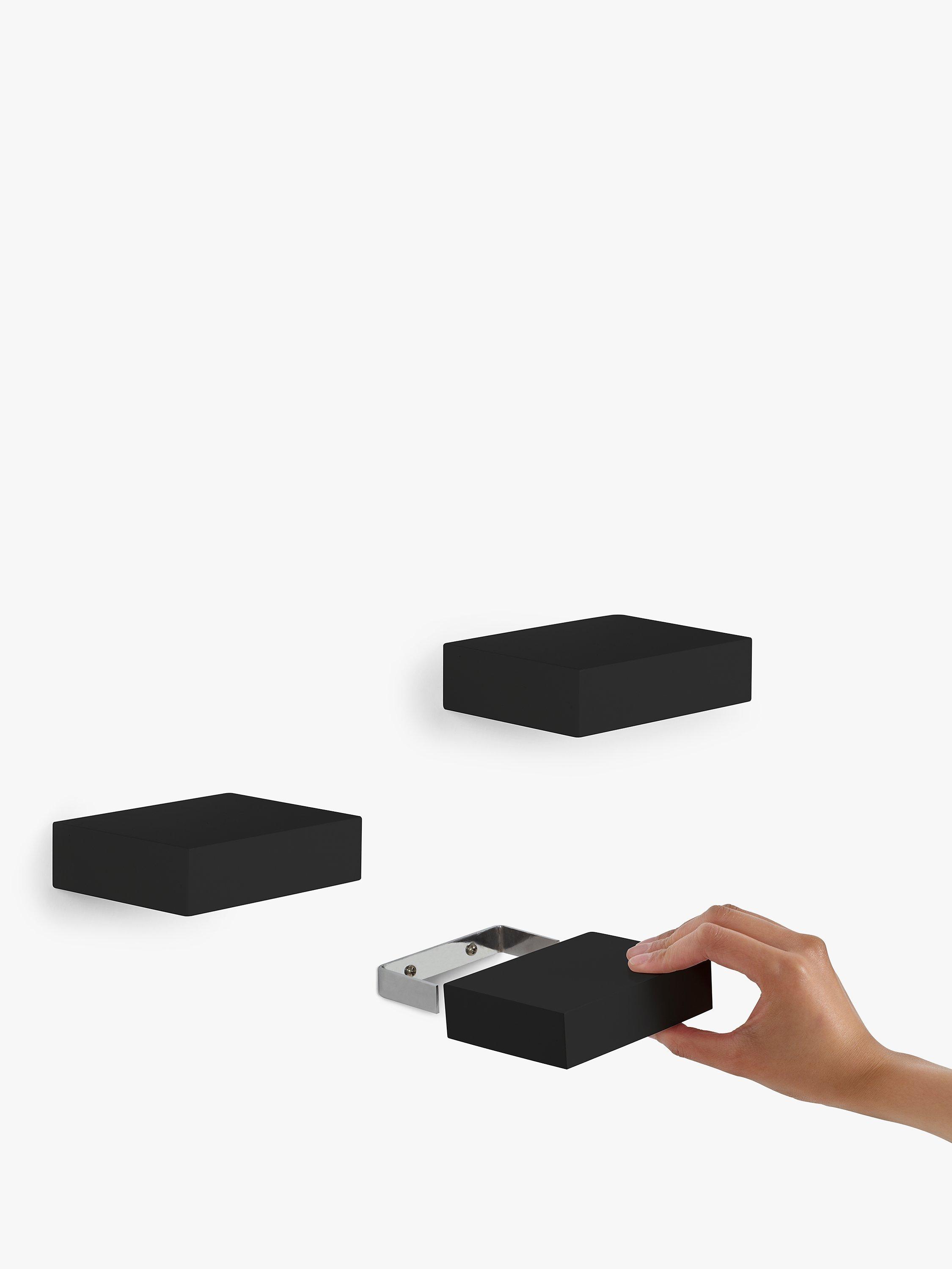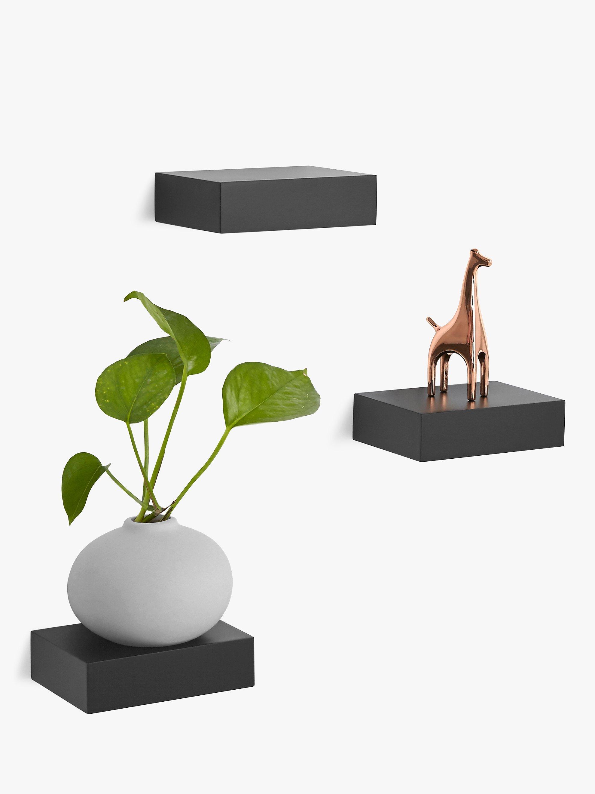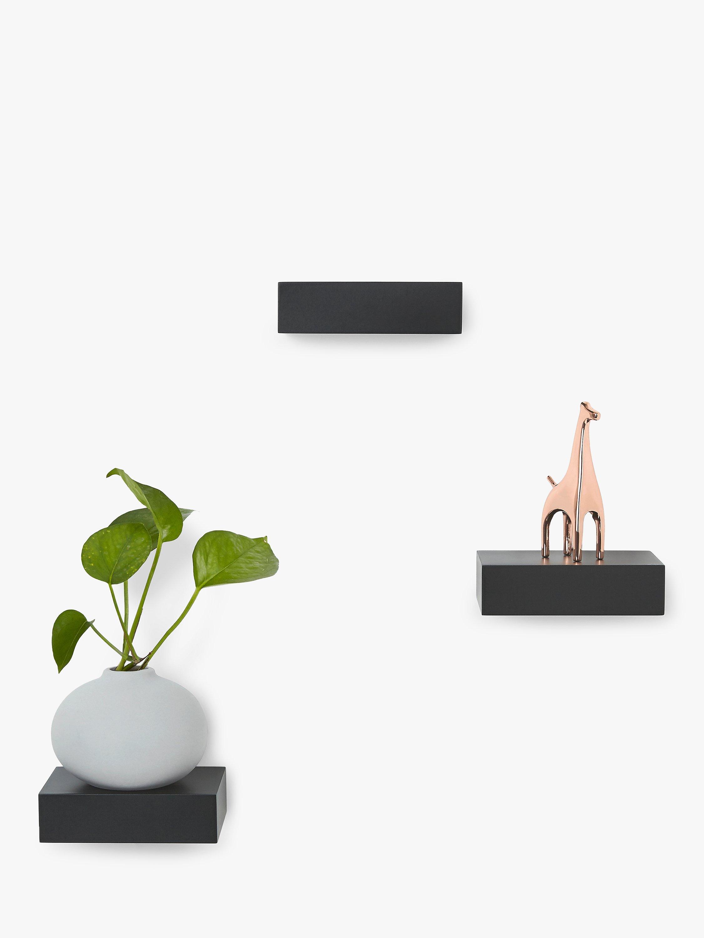 A set of three modern floating Showcase shelves from Umbra. Creating a clean and modern gallery-style appearance, using a simple shelf design, Showcase’s concealed metal hardware can hold up to 1.1kg on each compact shelf.