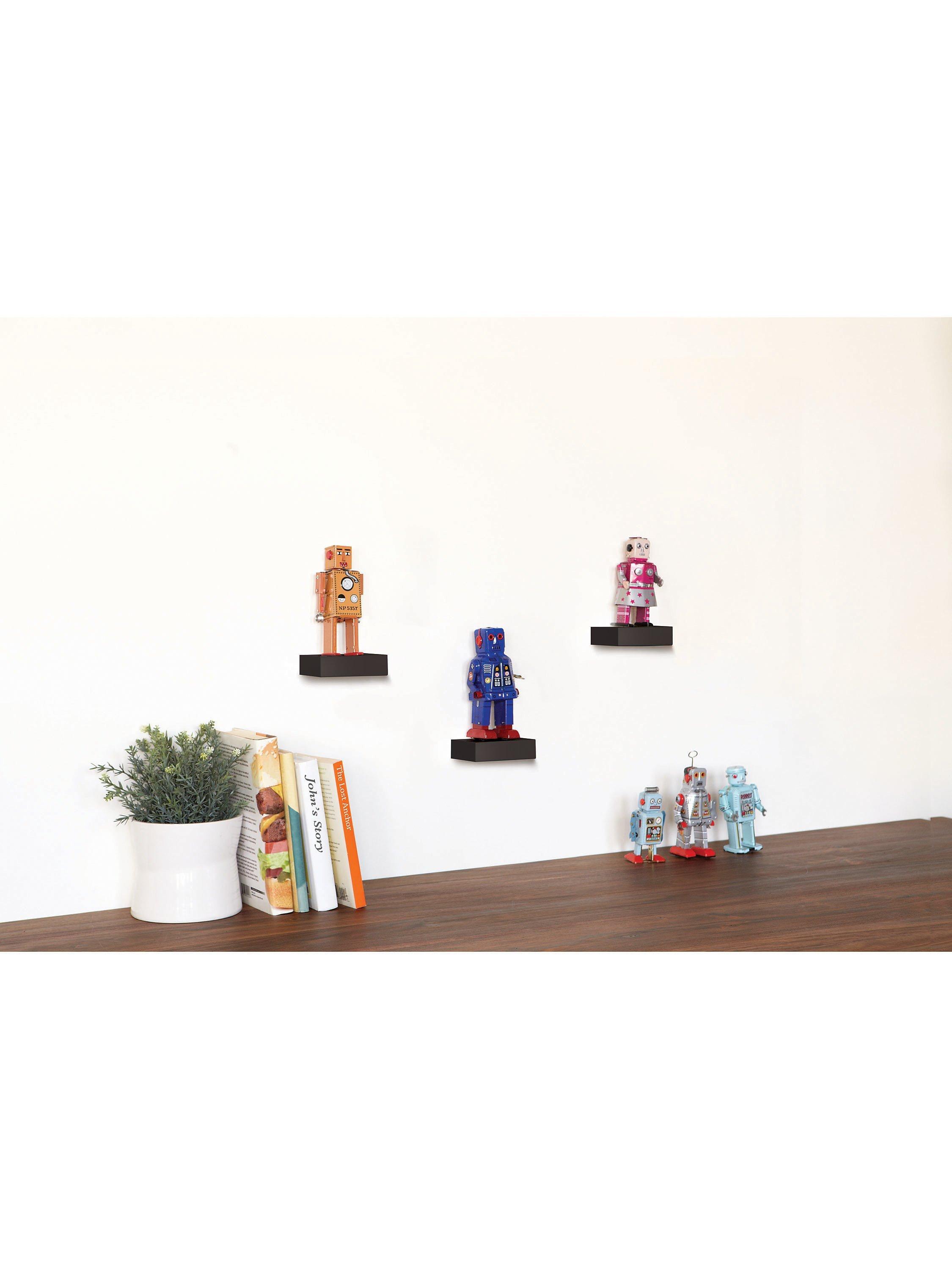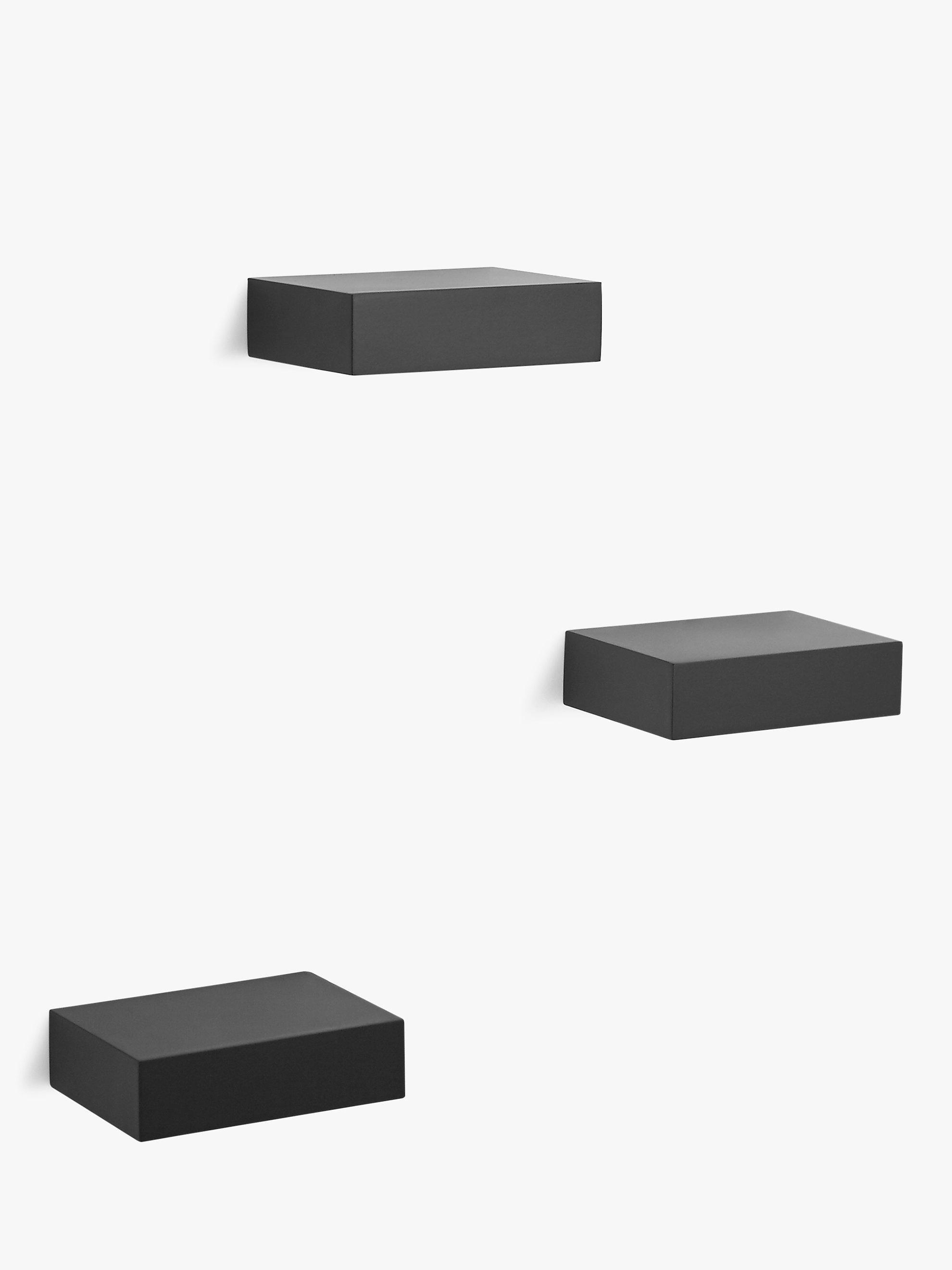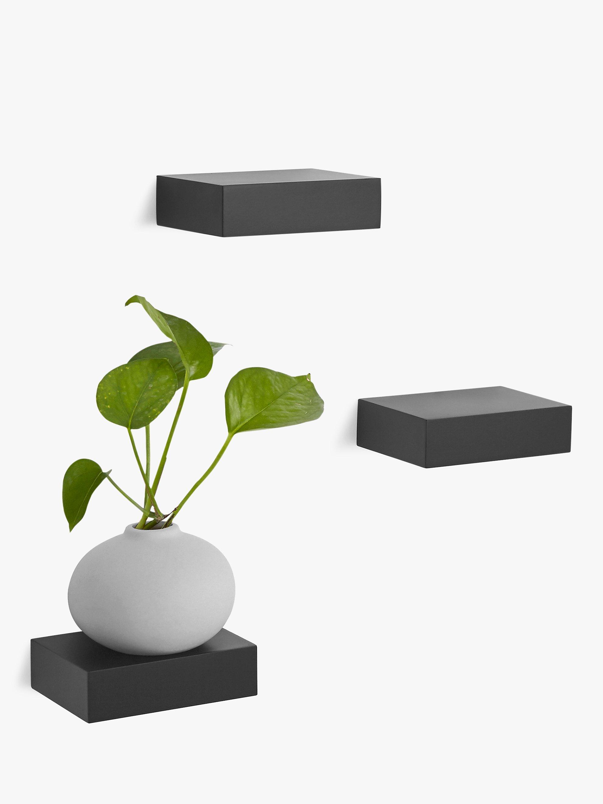 A set of three modern floating Showcase shelves from Umbra. Creating a clean and modern gallery-style appearance, using a simple shelf design, Showcase’s concealed metal hardware can hold up to 1.1kg on each compact shelf.