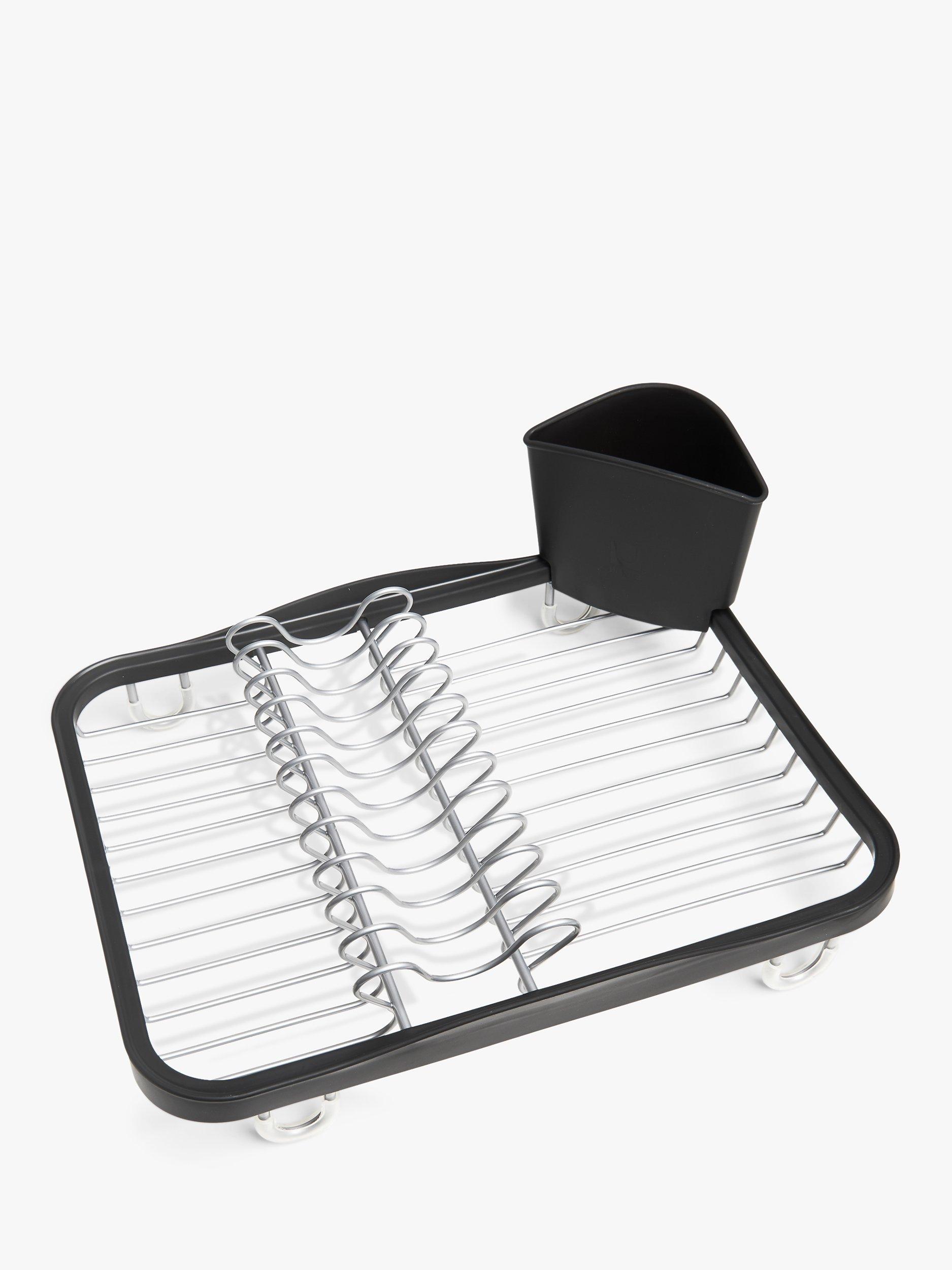 Sinkin is an in-sink dish drying rack that rests in the bottom of your kitchen sink (or on your countertop) and is a tidy and convenient way to air-dry dishes, glasses, and cutlery. Constructed of coated metal wire and durable polypropylene, Sinkin features non-slip rubber feet that won't scratch your sink or countertop. Sinkin Measures 14 x 11 x 5.5"" (36 x 28 x 14 cm) and fits most standard kitchen sinks. This in-sink dish drying rack is made with an eco-friendlier finish. It produces less water and solid waste than traditional electroplating finishes.