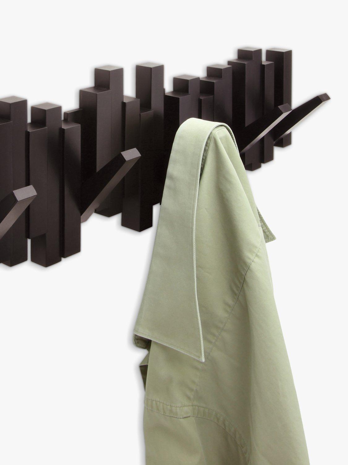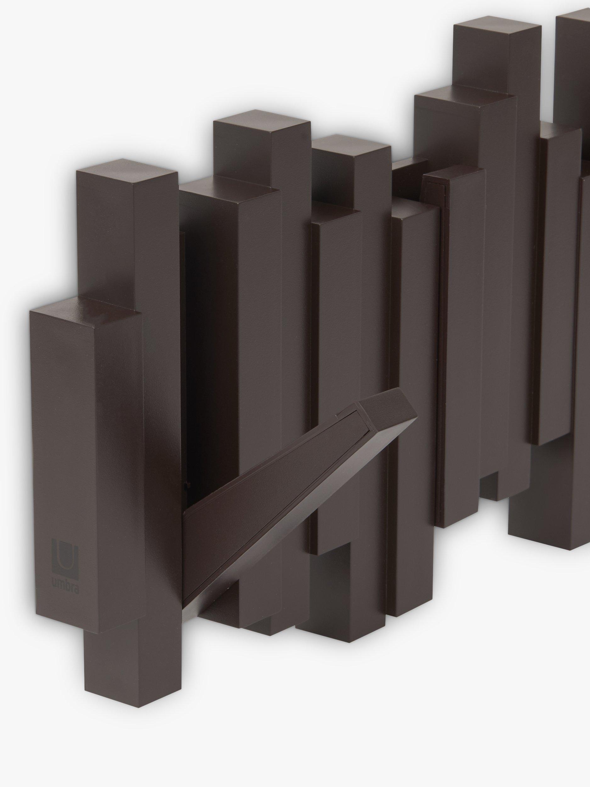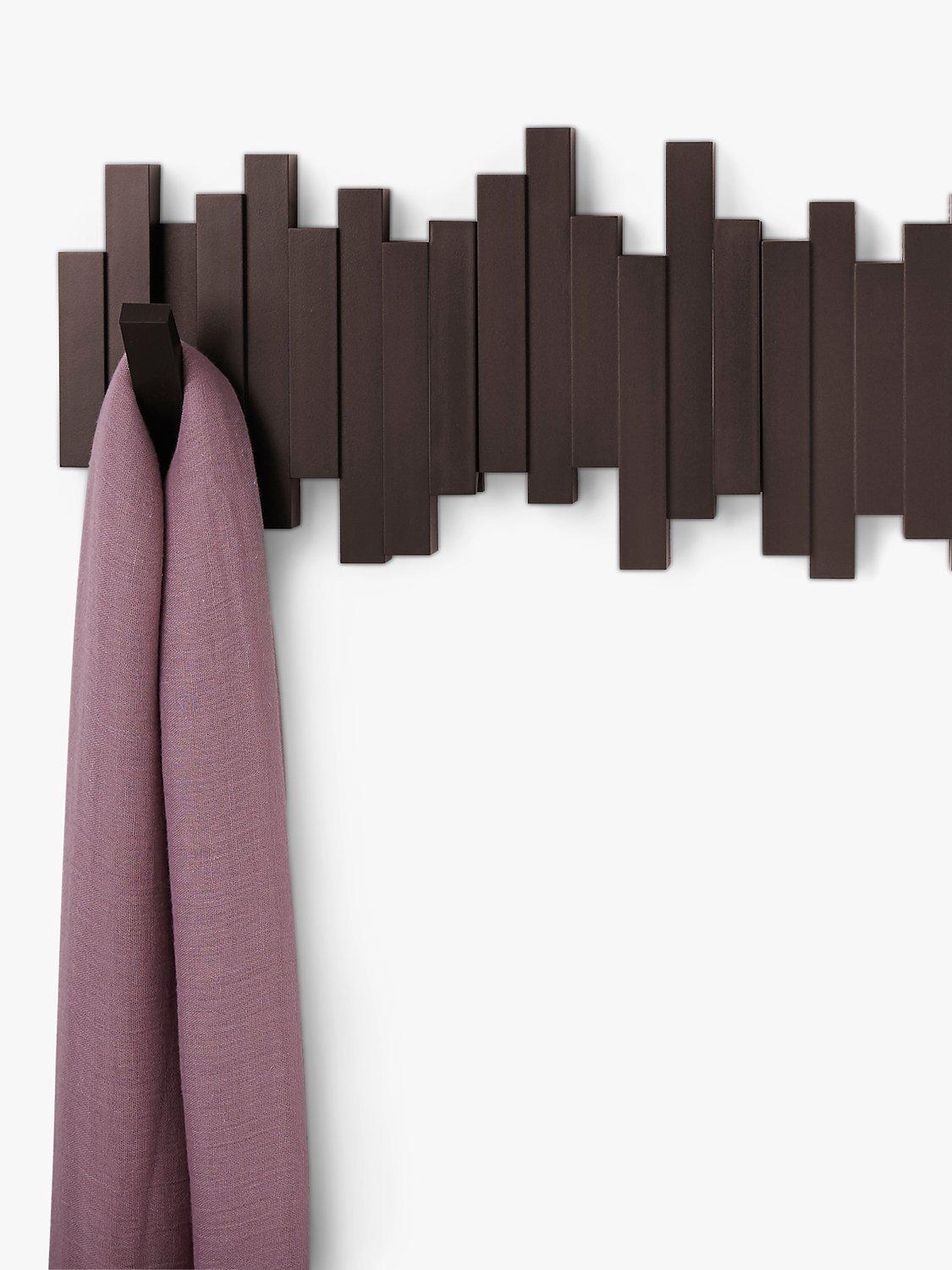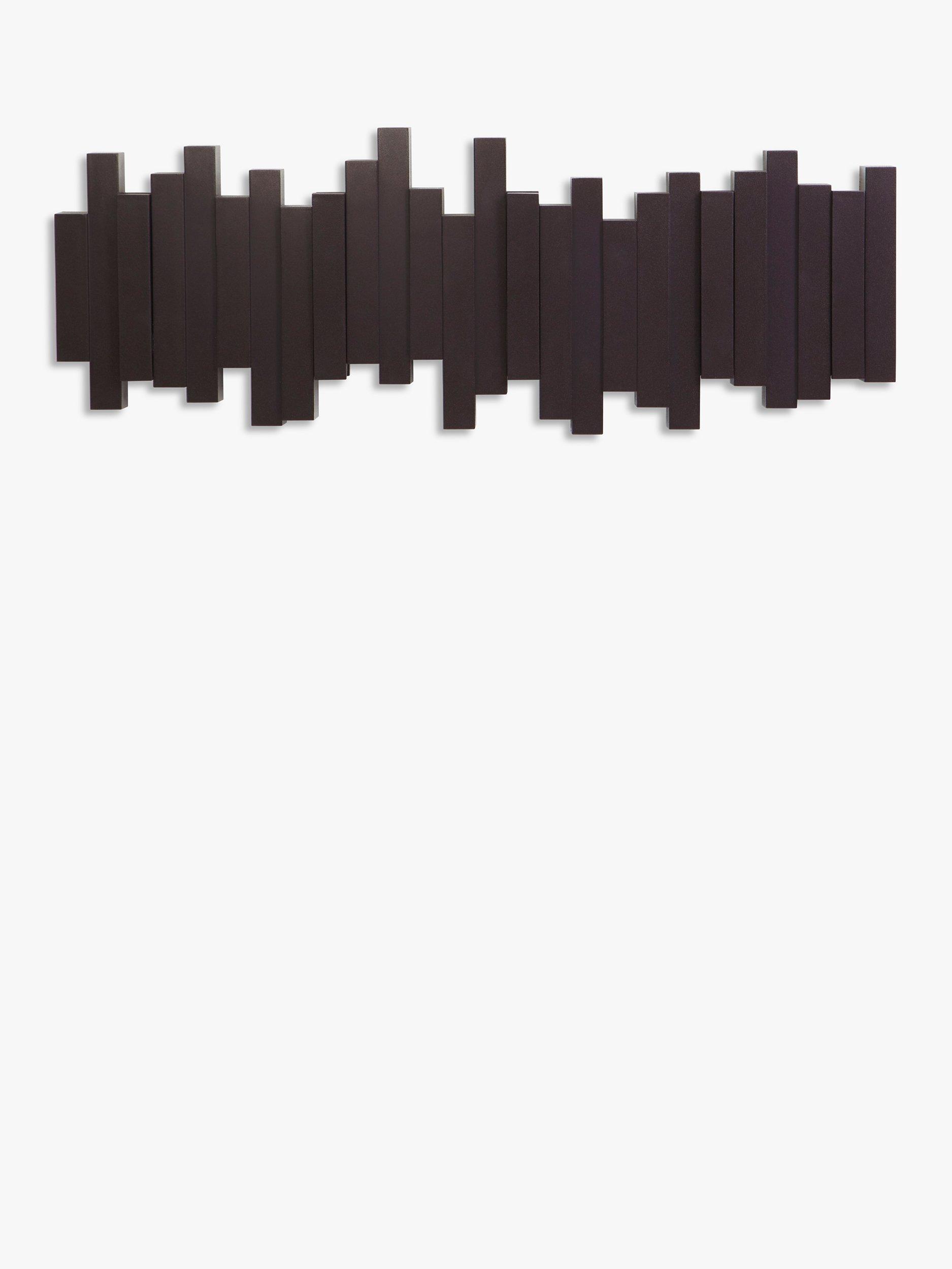 This innovative piece includes five flip down hooks. Each hook holds up to 2.3 kg. Great for small spaces and duels as wall décor when not used for hanging articles. Mounting hardware included.