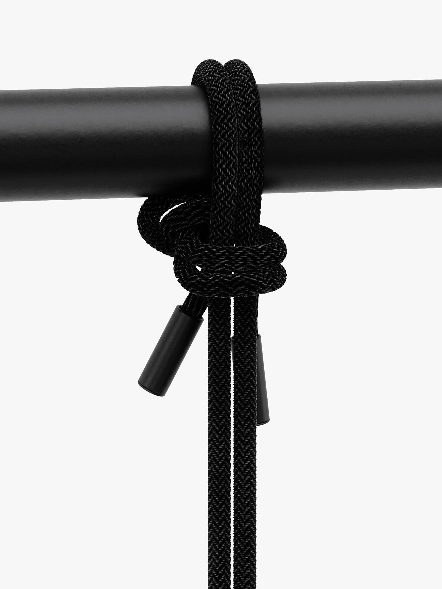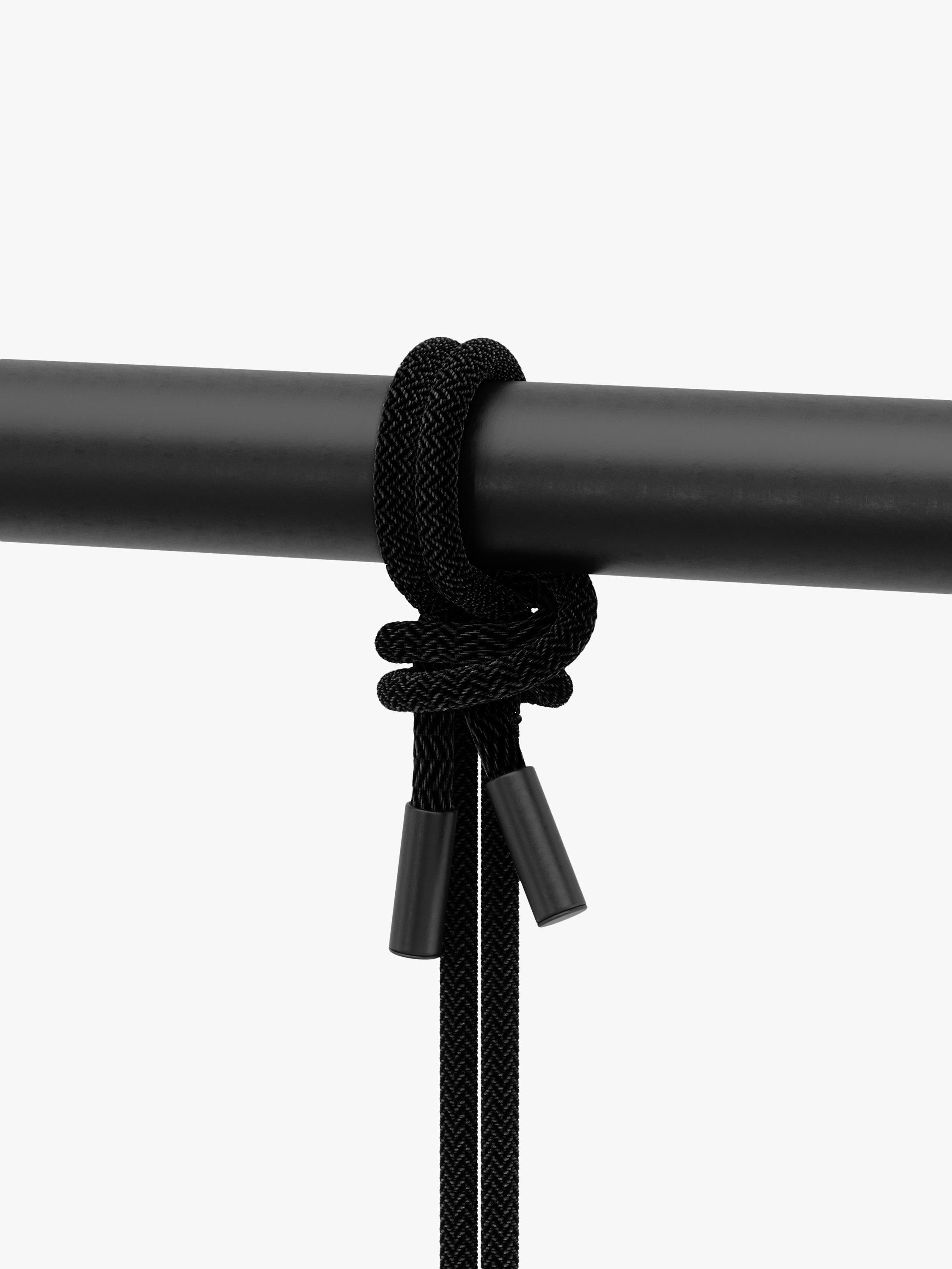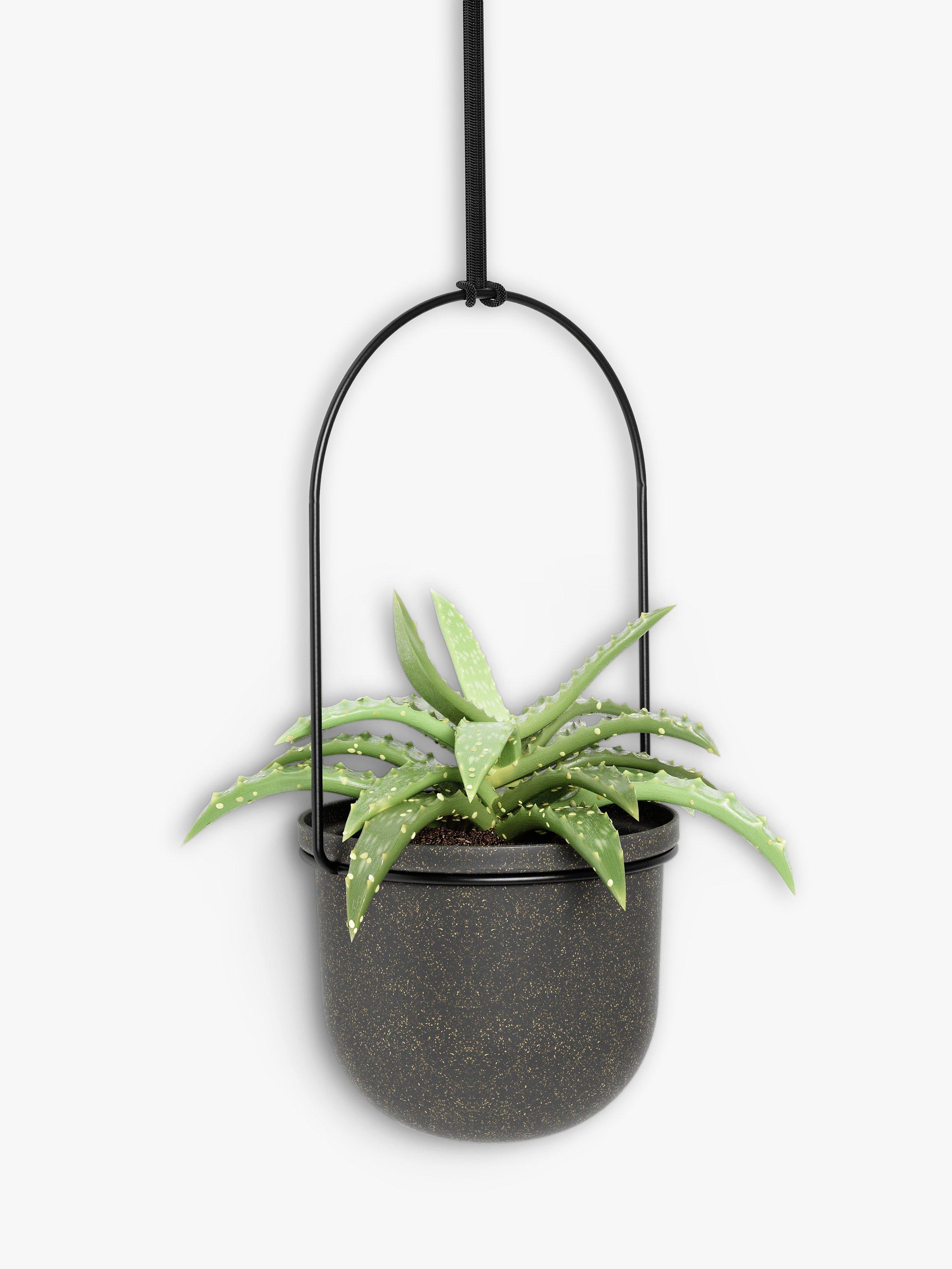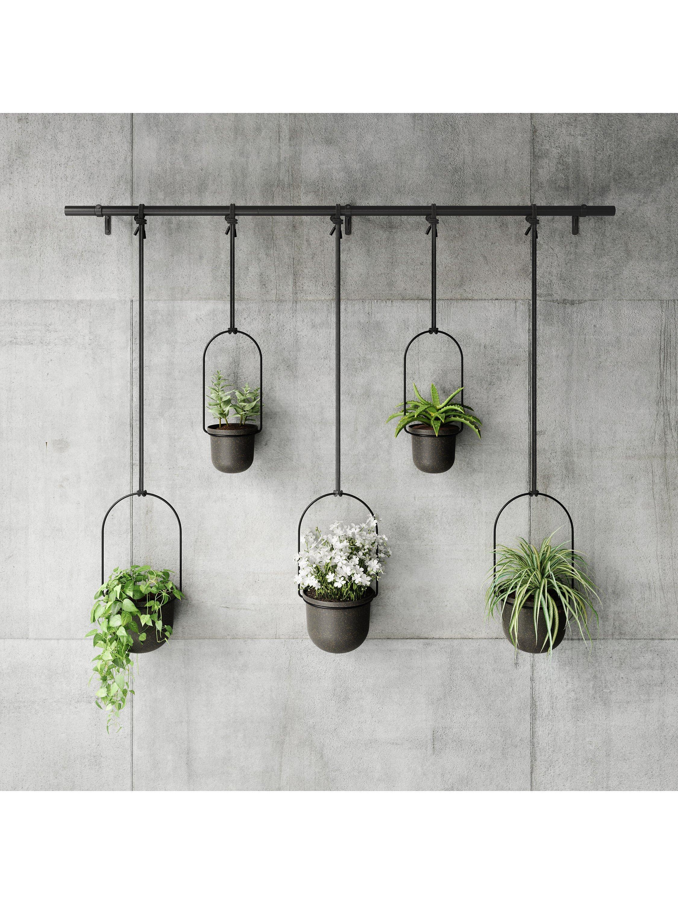 This contemporary space-saving design beautifully combines a functional drapery rod with the greenery of potted plants. Mount on a wall or ceiling, perhaps above a window using the included hardware. The length of the ropes are adjustable in height and also slide along the metal rod to suit your display and space. The durable pots are lightweight and can hold two standard three-inch (7.6cm) diameter pots as well as three six-inch (15cm) diameter pots, so there's no need for re-potting.