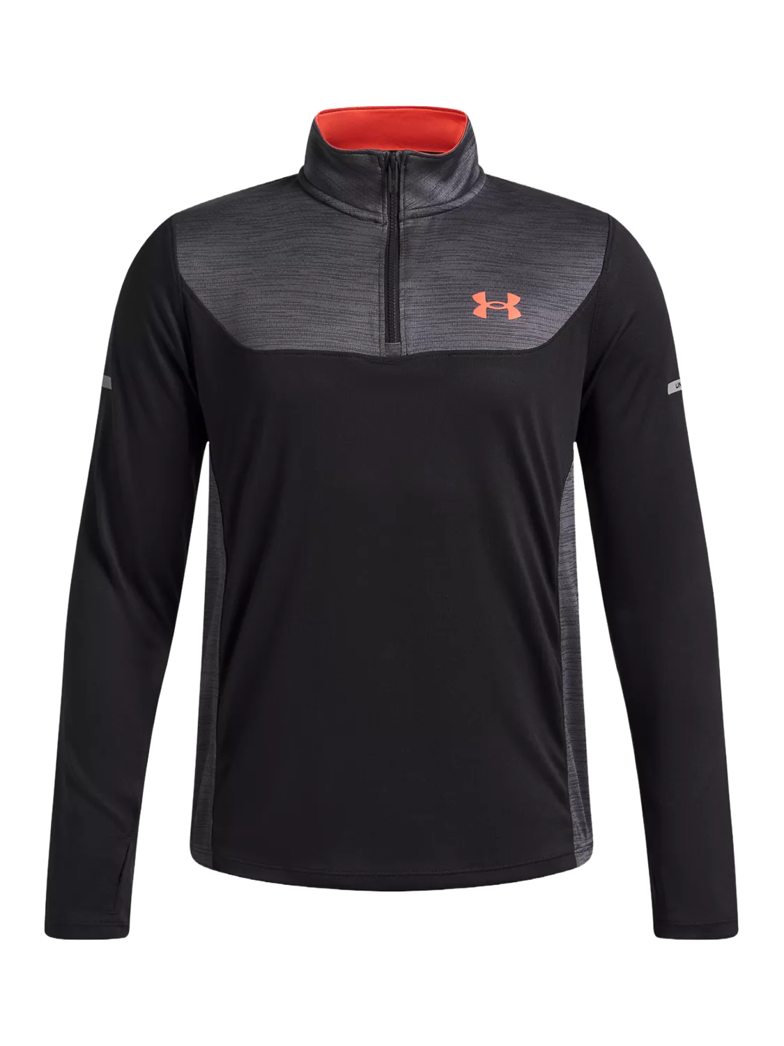 UA Tech fabric is quick-drying, ultra-soft and has a more natural feel. Material wicks sweat and dries really fast. Odour control technology minimises odour and a zip front makes for easy layering. Built-in thumbholes help keep sleeves in place. Reflective details.