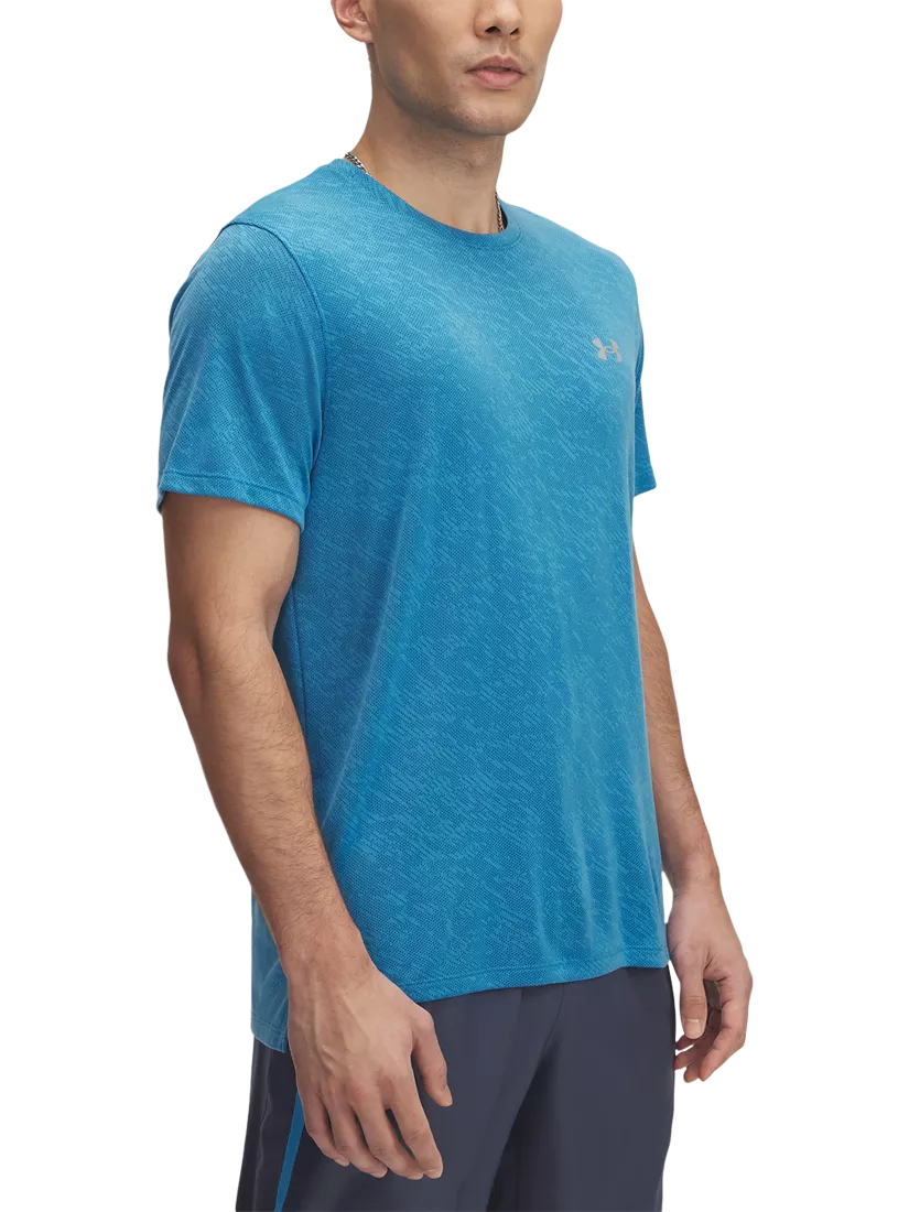 The UA Launch top is made from lightweight, jacquard-knit fabric, which is super-breathable, wicking away sweat & drying really fast. The 4-way stretch material moves better in every direction, plus it has a dropped, side-vent hem and reflective details for low-light runs.