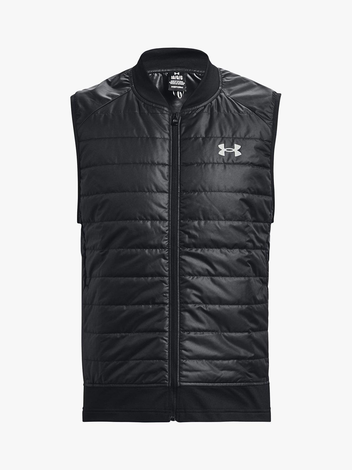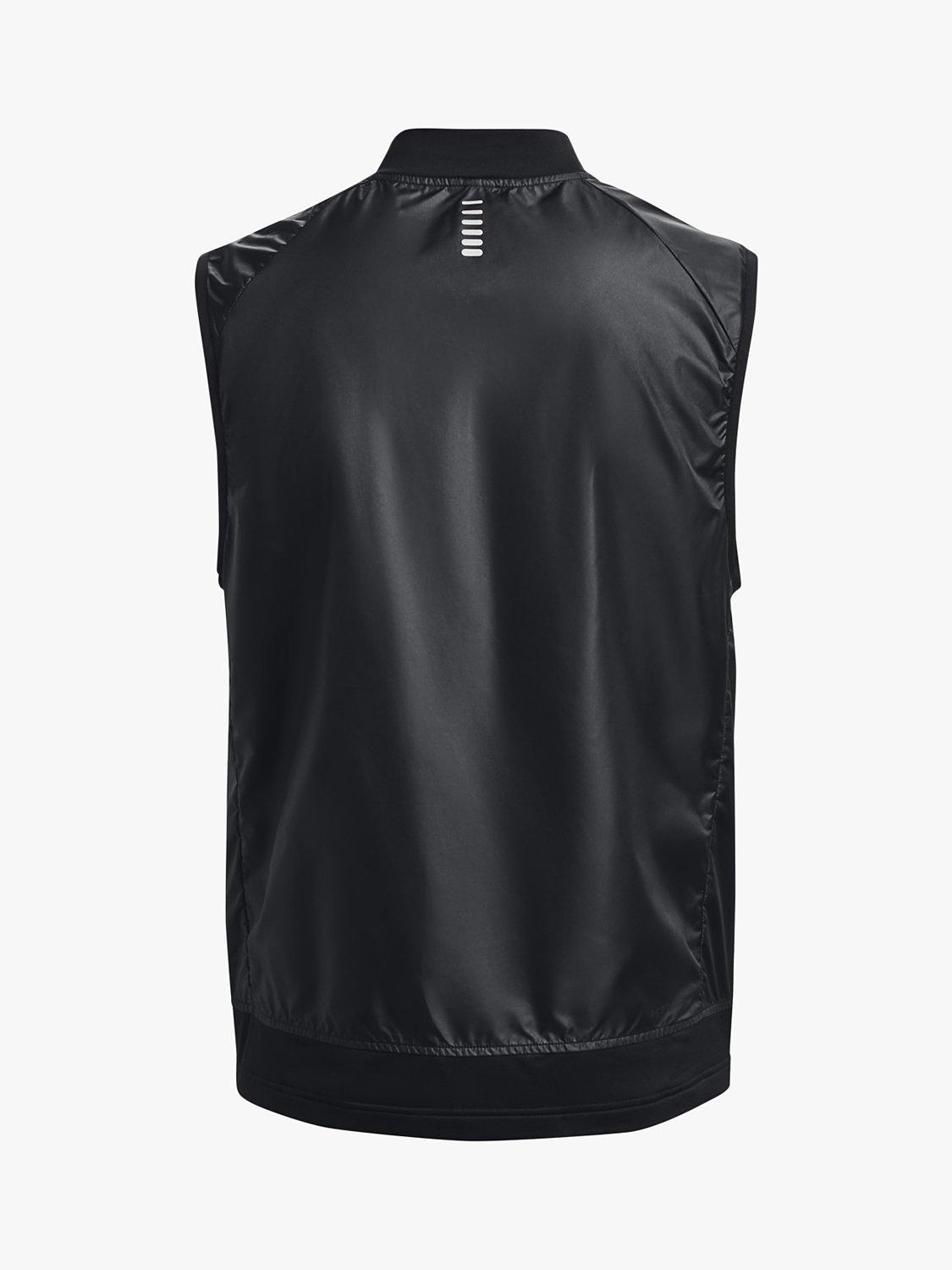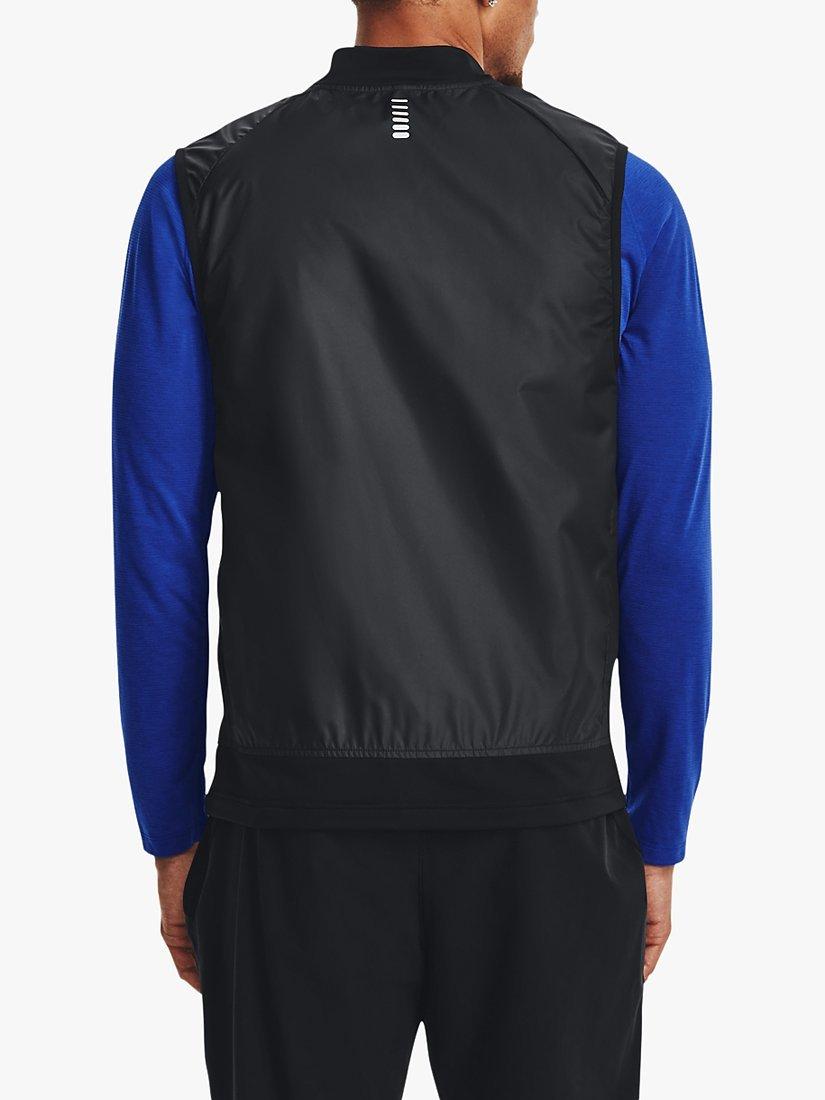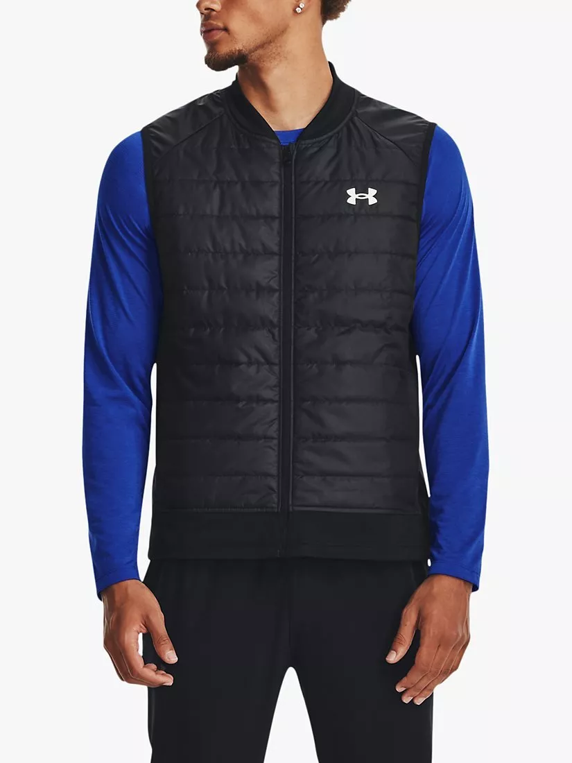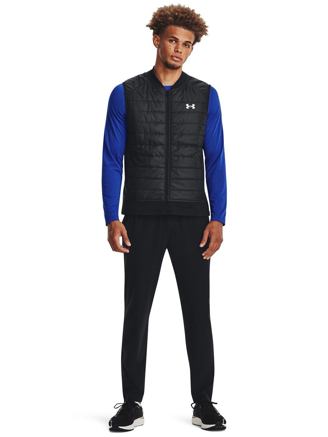 This vest will keep you comfortable all run long. It's insulated in the front to trap warmth when you first go out, but ventilated, so you don't overheat. UA Storm technology repels water without sacrificing breathability whilst the durable woven body fabric paired with soft, stretchy knit bottom hem & collar offer optimum mobility & comfort.