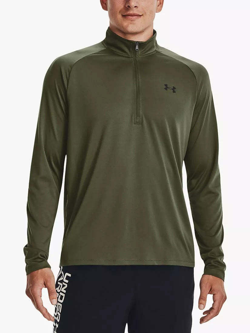 UA Tech is Under Armour's original go-to training gear: loose, light, and it keeps you cool. That means this men's half zip shirt does everything you need it to do. UA Tech fabric is quick-drying, ultra-soft and has a more natural feel; Material wicks sweat & dries really fast; Generous ½ zip front makes for easy layering; New, streamlined fit & shaped hem.