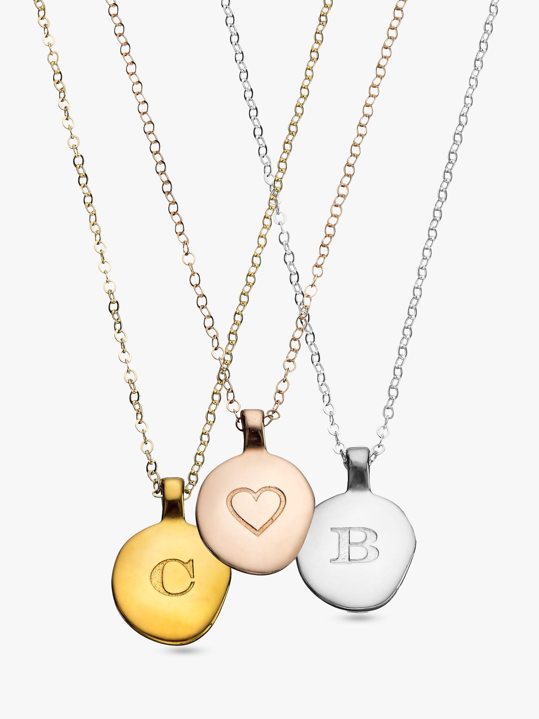 This initial necklace features a beautiful pendant that has been cast out of sterling silver and plated. The shape is organic in look and feel, cast like a natural pebble that has been highly polished to create a tactile finish. Chain length measures 18 inches. Each of these necklaces comes beautifully packaged in a luxury gift box with ribbon.