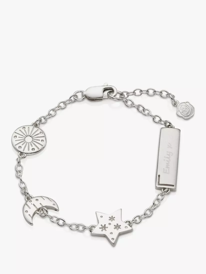 Under the RosePersonalised Sun Moon and Star Chain Bracelet, Silver