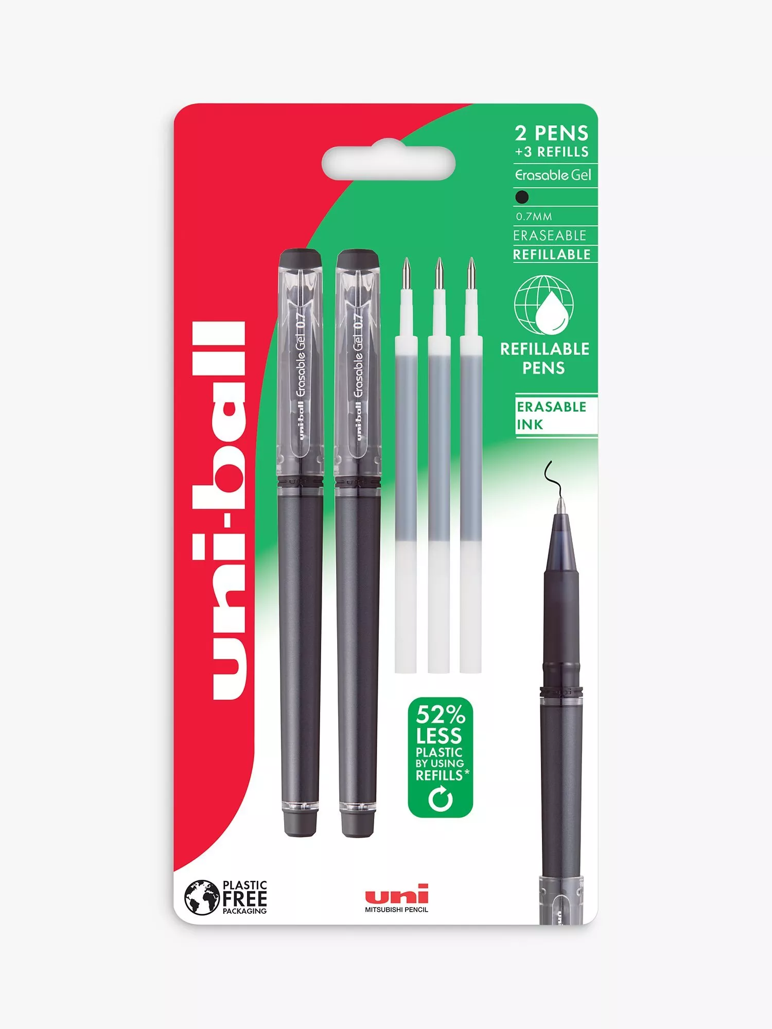 A set of 2 refillable gel pens.