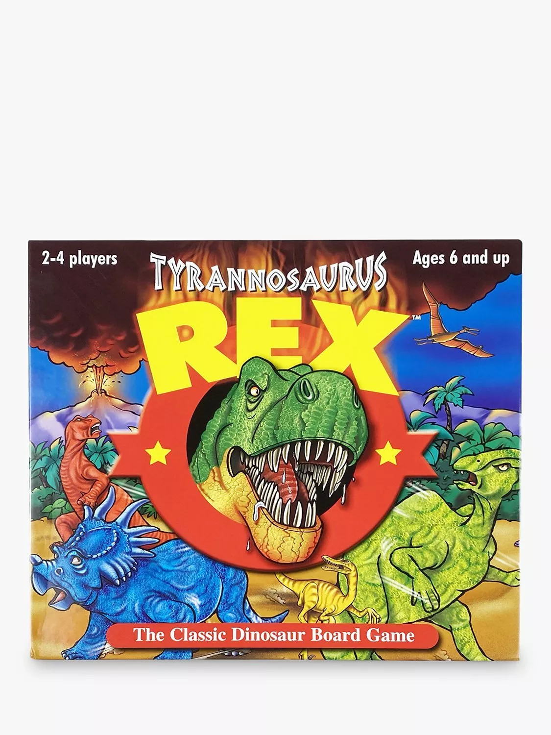 Each player has 4 dinosaurs and your aim is to race your pieces around the board from the desert to home. But beware... there's a T-Rex lurking and waiting for a juicy meal! The winner is the first to get their 4 dinosaurs home.