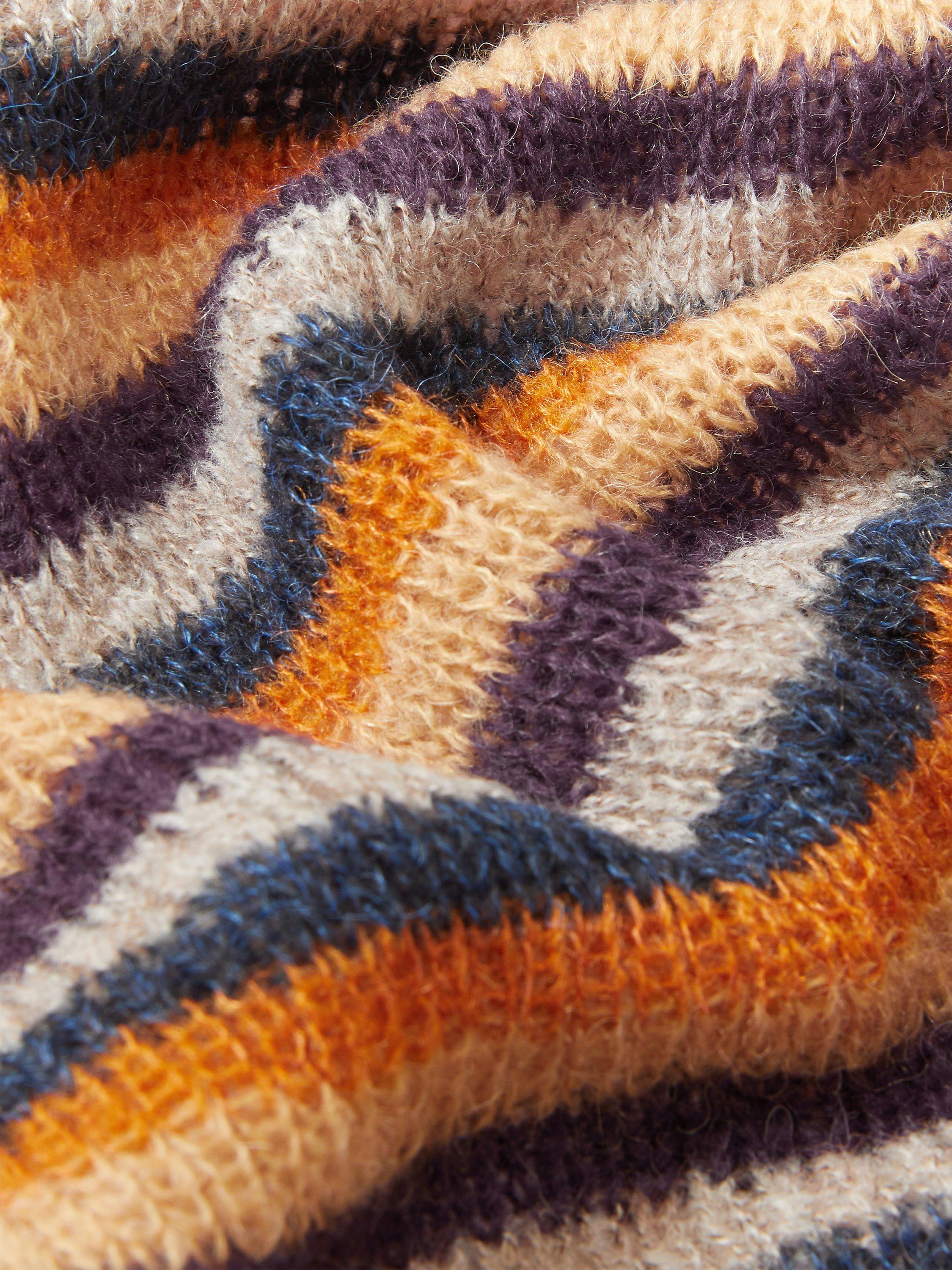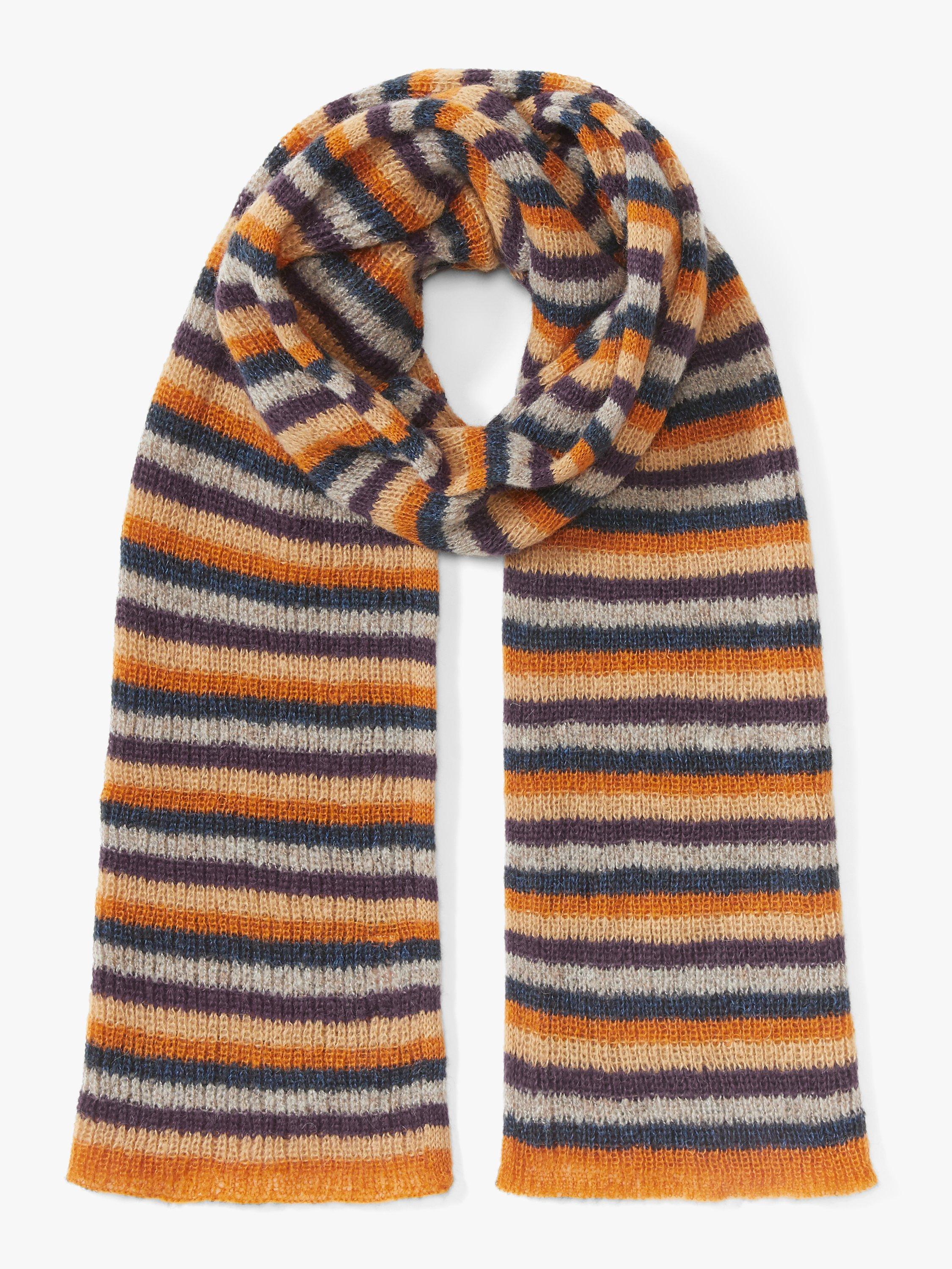 Super-soft and made from alpaca wool mix yarns, this Unmade scarf is produced in a colourful stripe pattern that will go with various outfits. The longer length will help you create effortless layers.