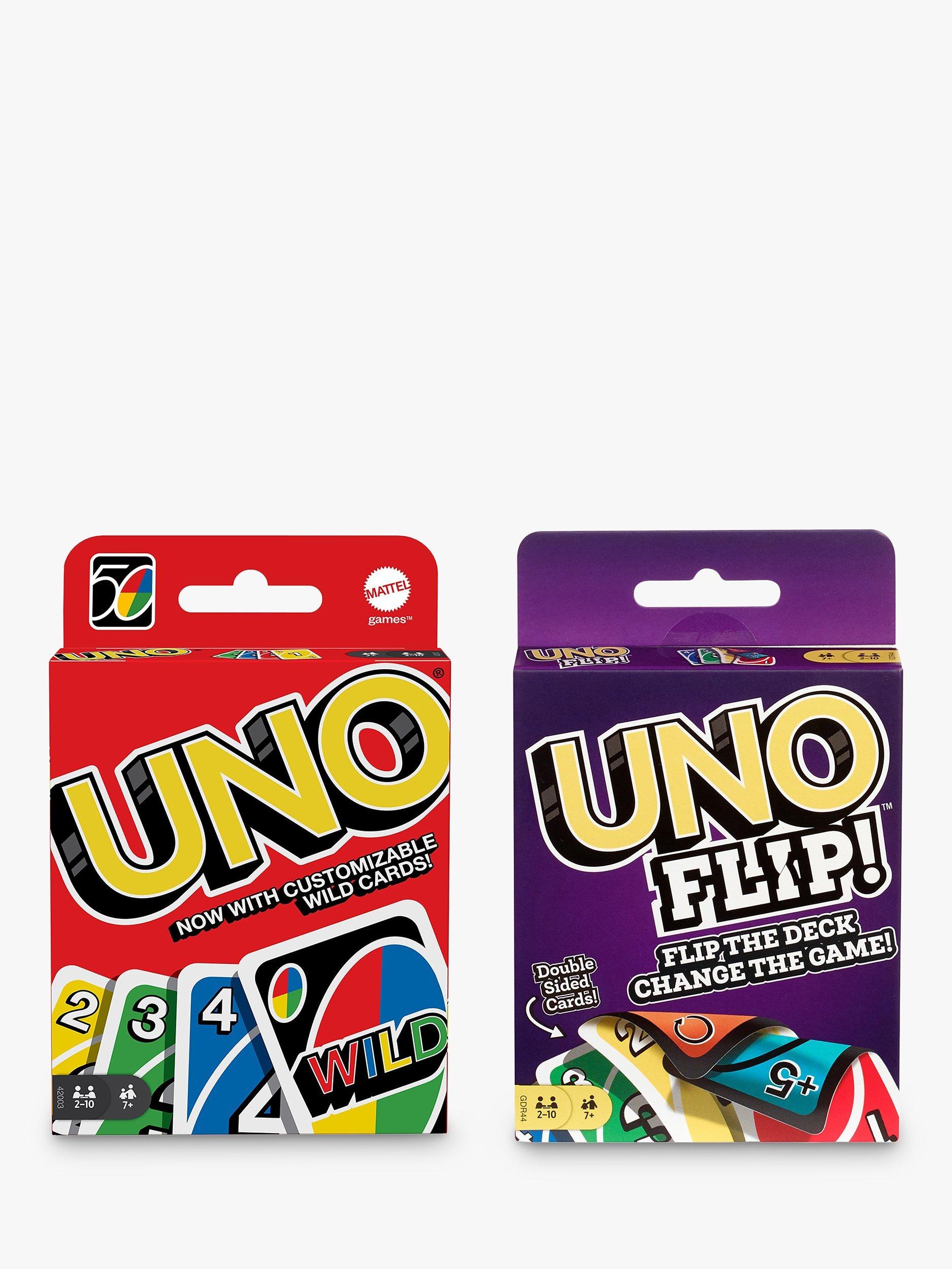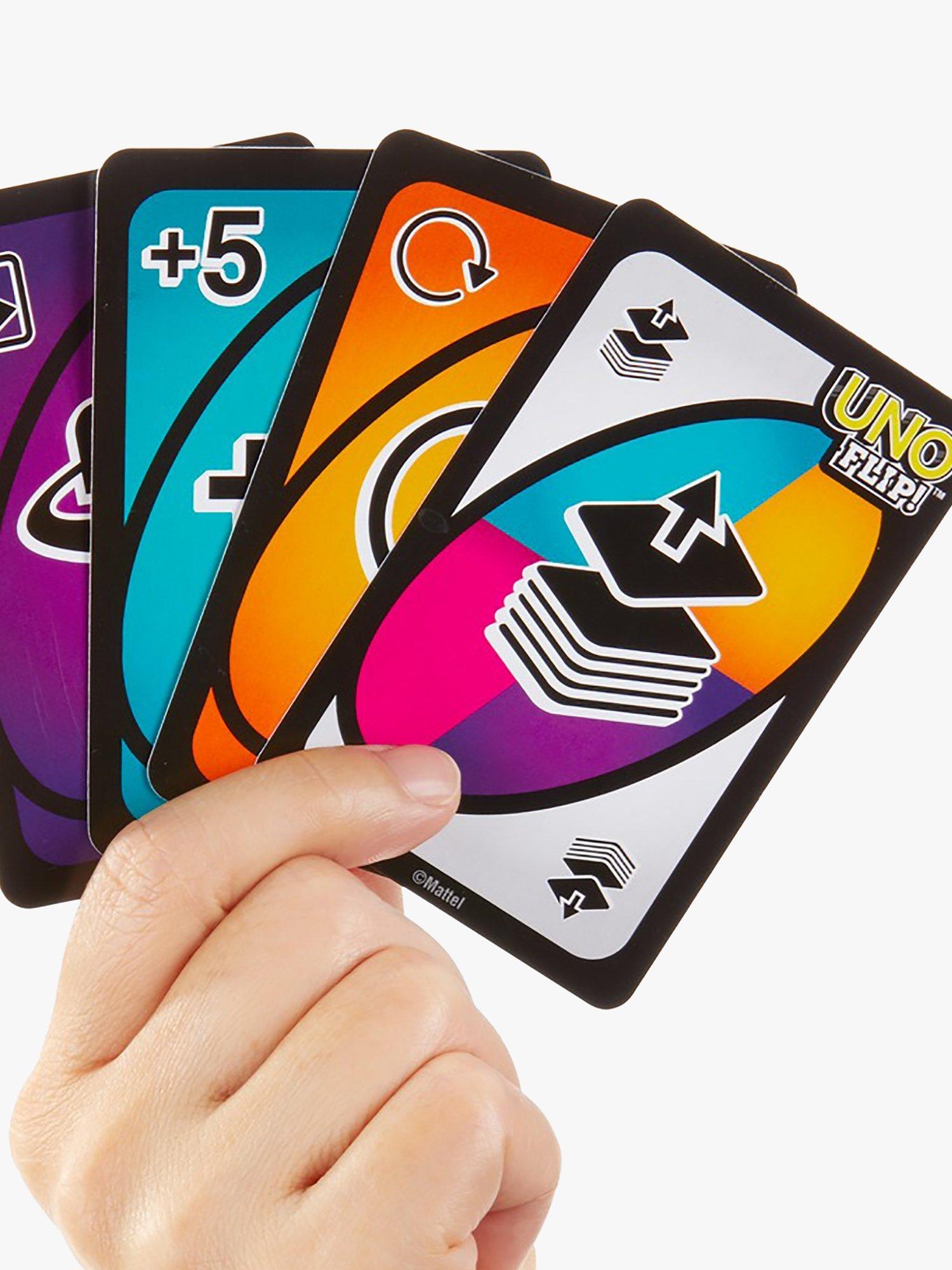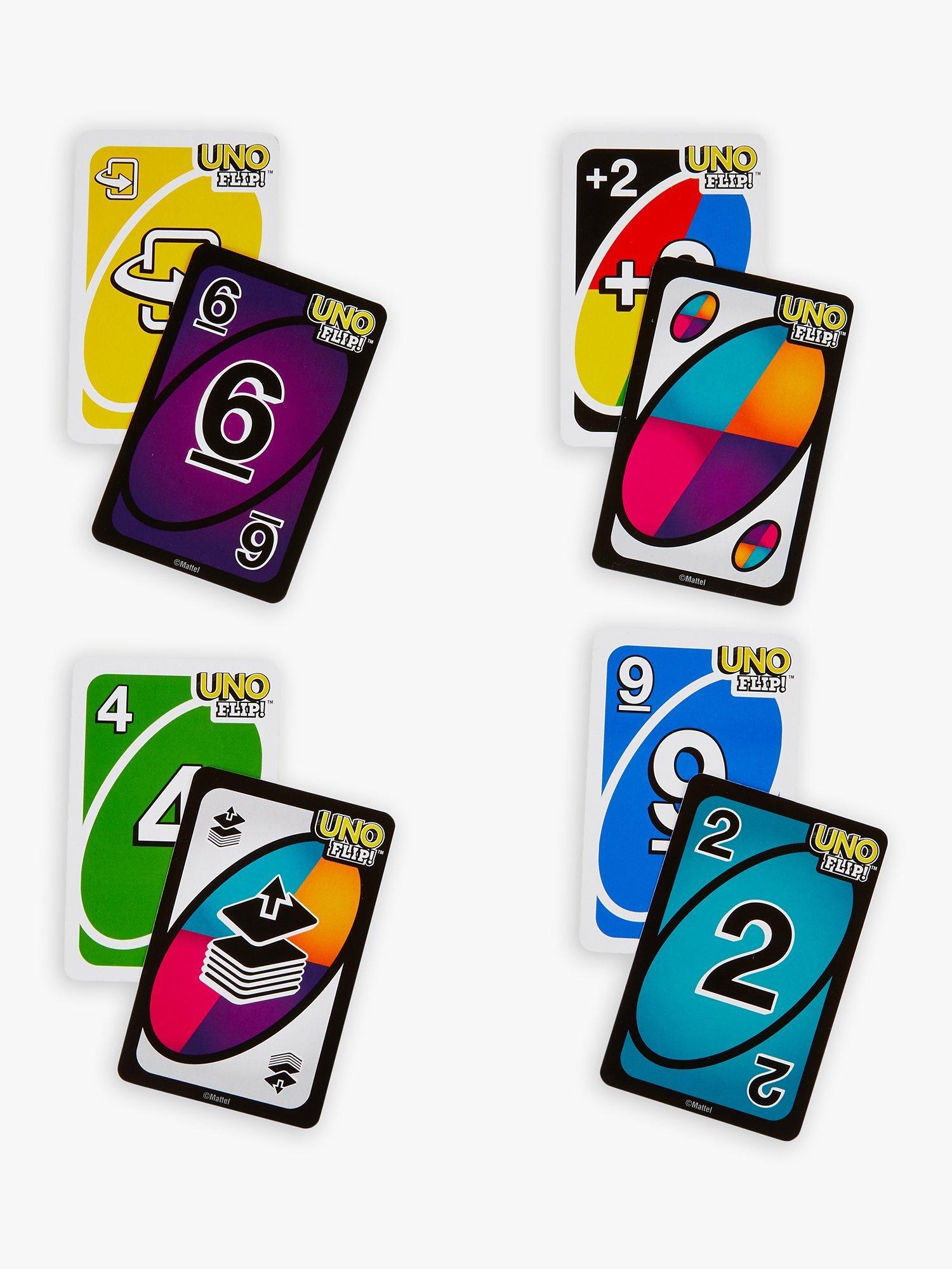 The classic card game you know, now with an exciting new twist! A double-sided deck and special FLIP card give classic gameplay a competitive edge. Play the special FLIP card and all cards are turned over, including the draw pile, to reveal an entirely new set of numbers and colours on the opposite side.