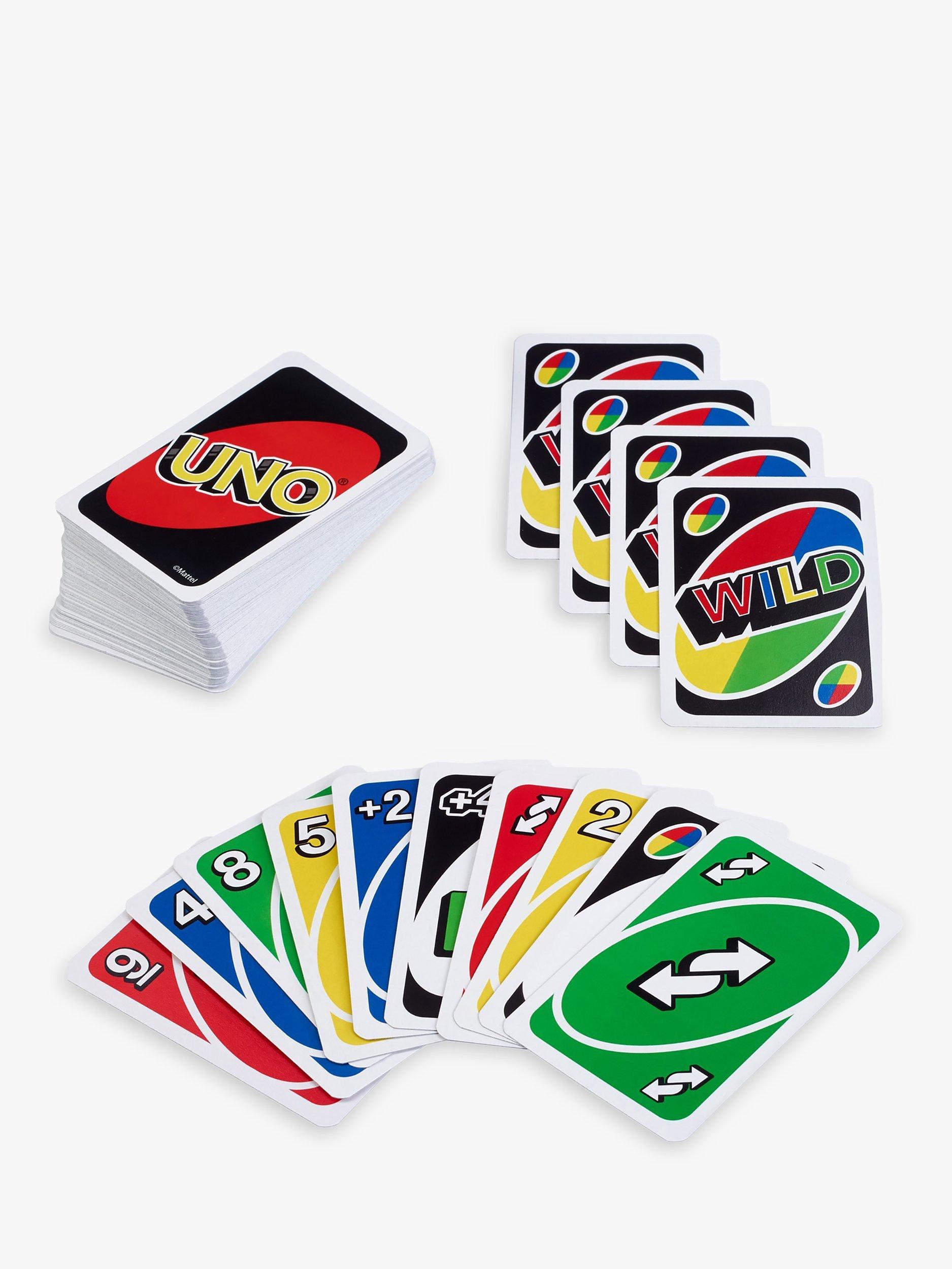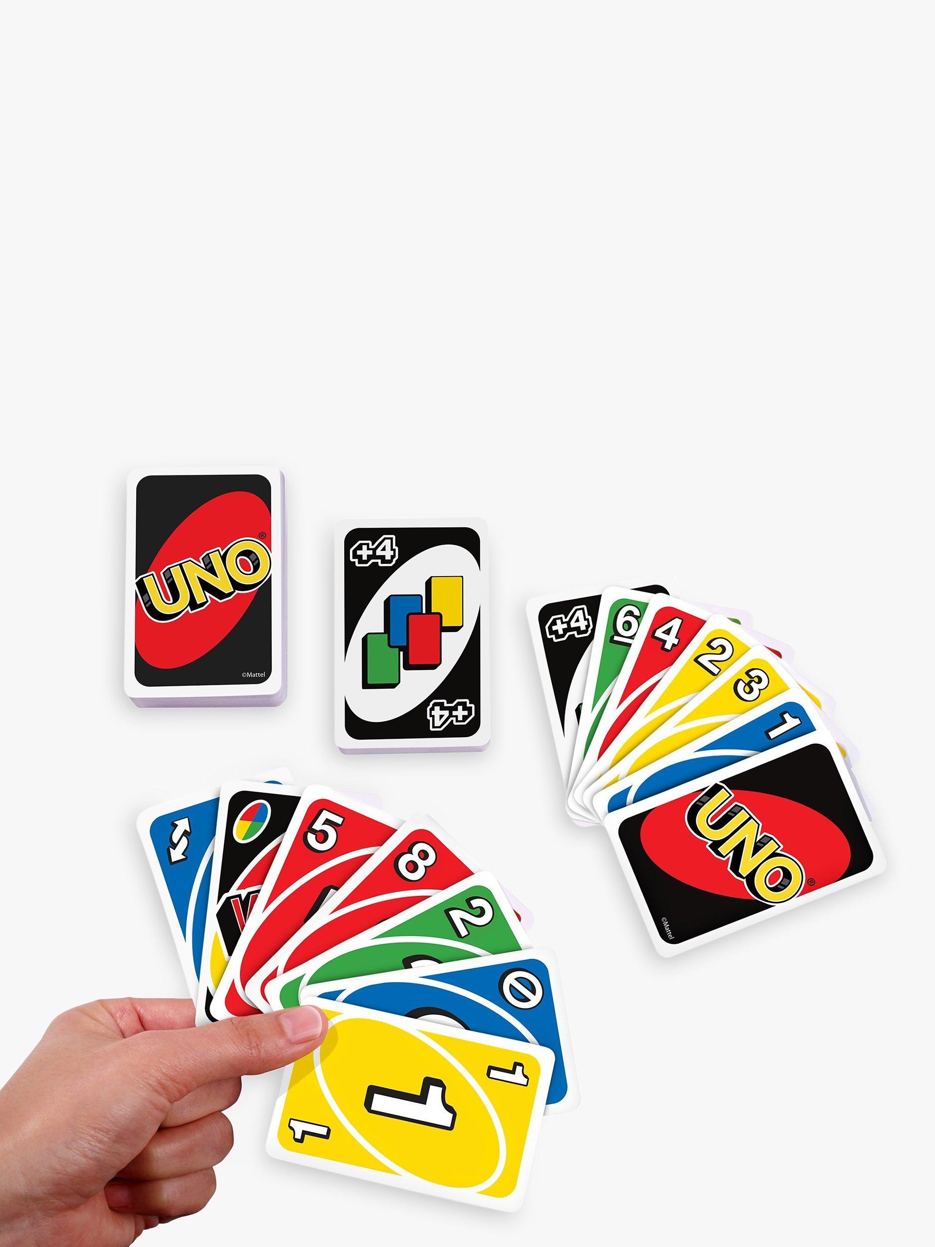 UNO is the classic card game of matching colours and numbers that is easy to pick up but impossible to put down! Players take turns racing to get rid of all their cards by matching a card in their hand with the current card shown on top of the deck either by colour or number.