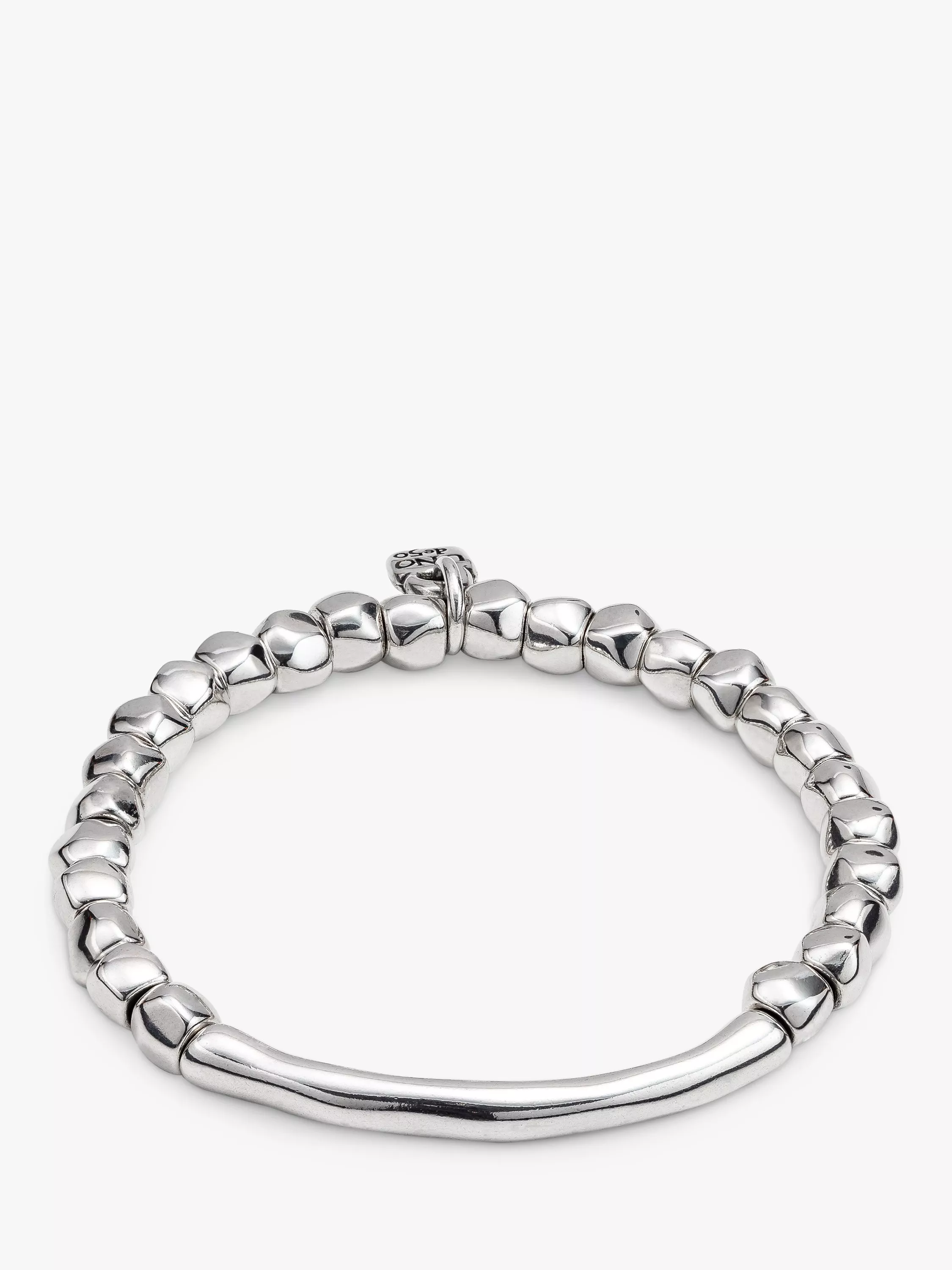 Handmade in Spain, this stretch bracelet features beaded detail complemented by a polished tube for a unique look.