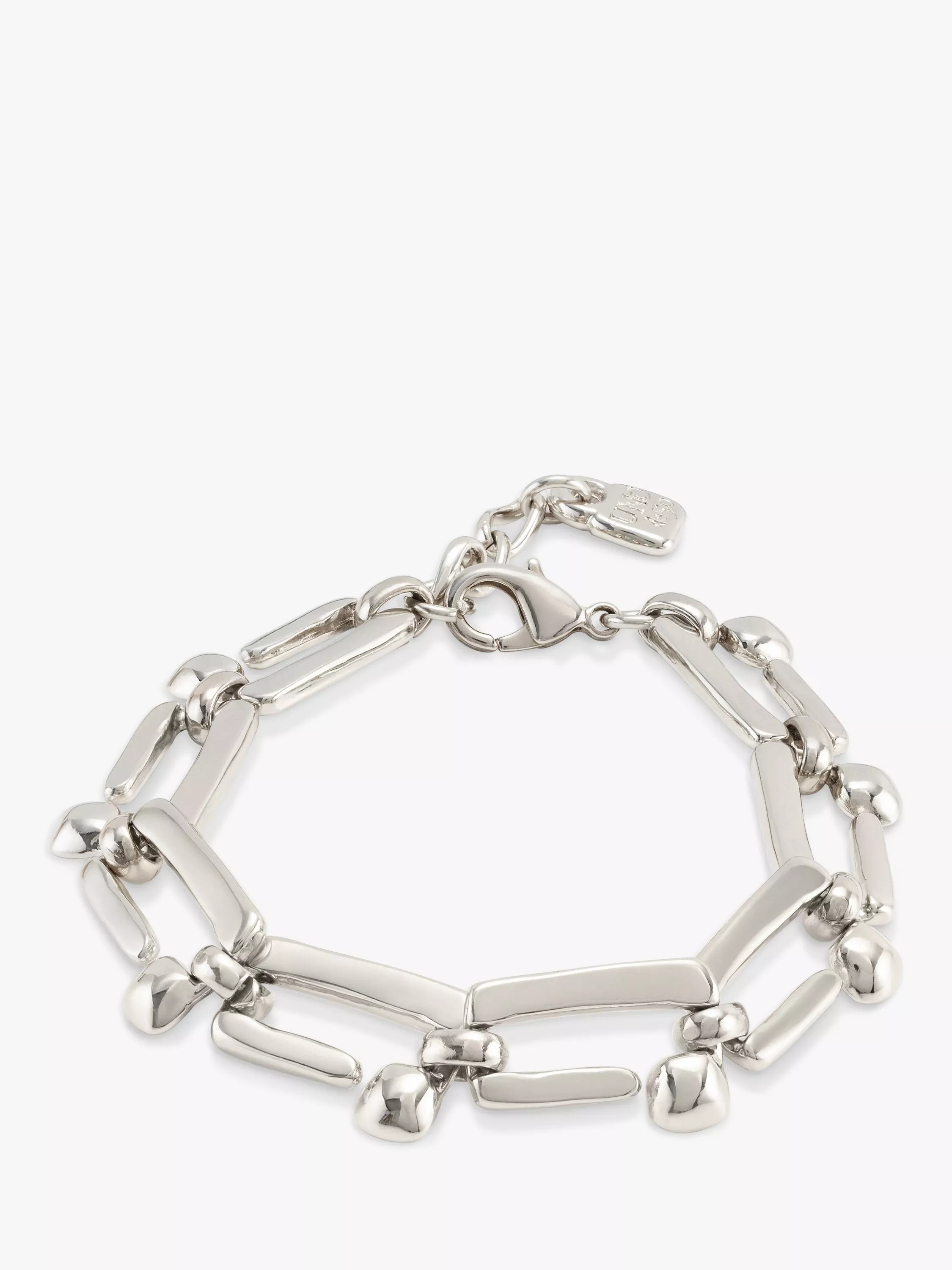 This bracelet is composed of rectangular links and is inspired by the shape of a nail. It has a carabiner clasp that allows the piece to be adjusted to the desired size. Handmade in Spain, it is a unique and firm creation that will become an essential piece in your jewellery box.