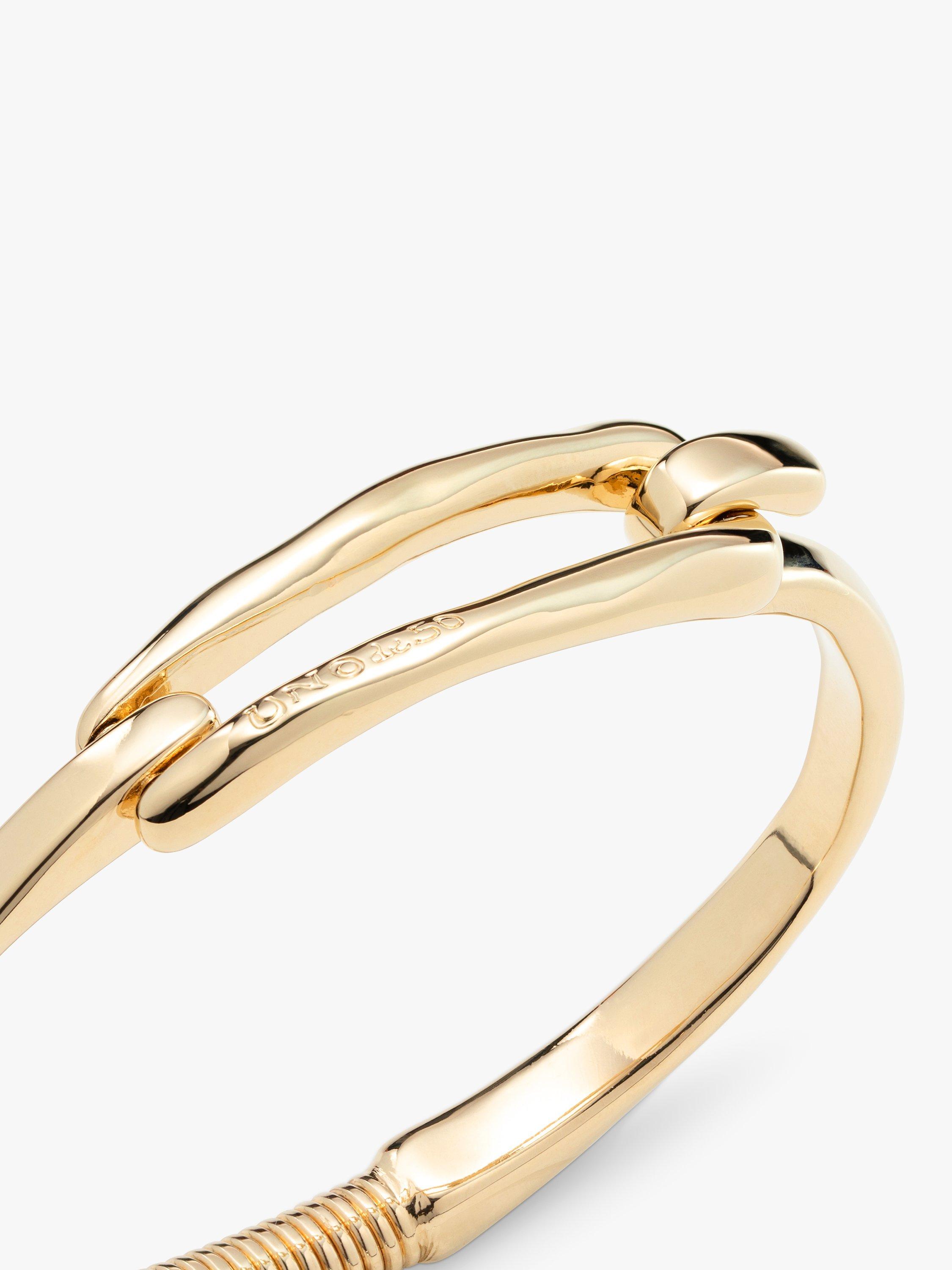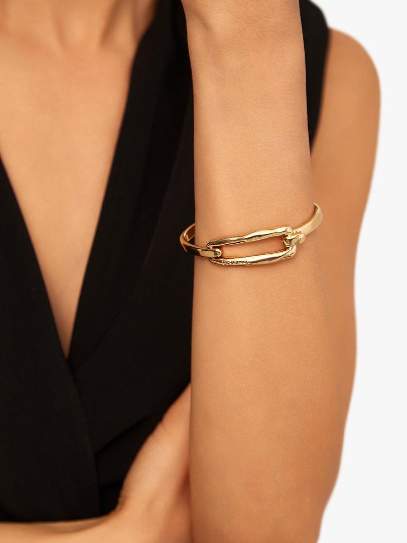 A rigid bracelet featuring a unique link-shaped clasp. This elegant piece of jewellery is perfect for day or night. Expertly designed by UNOde50 and handcrafted in Spain.